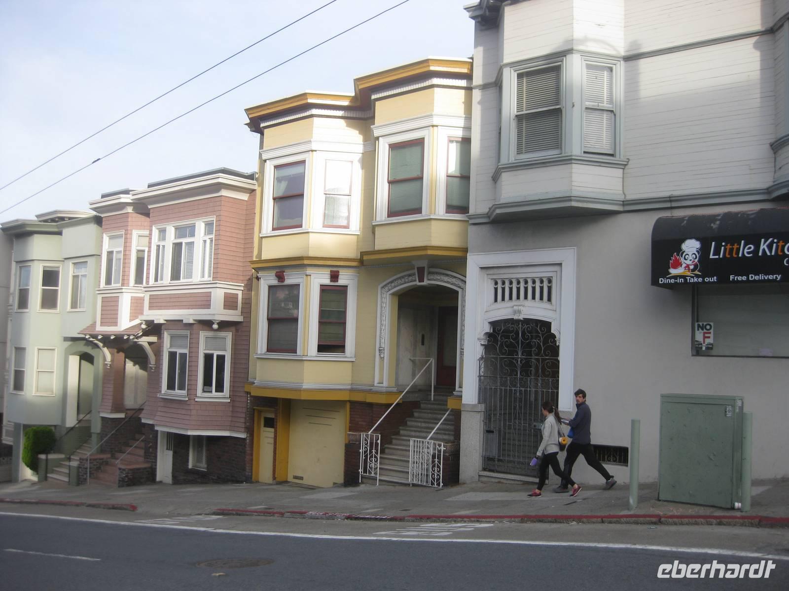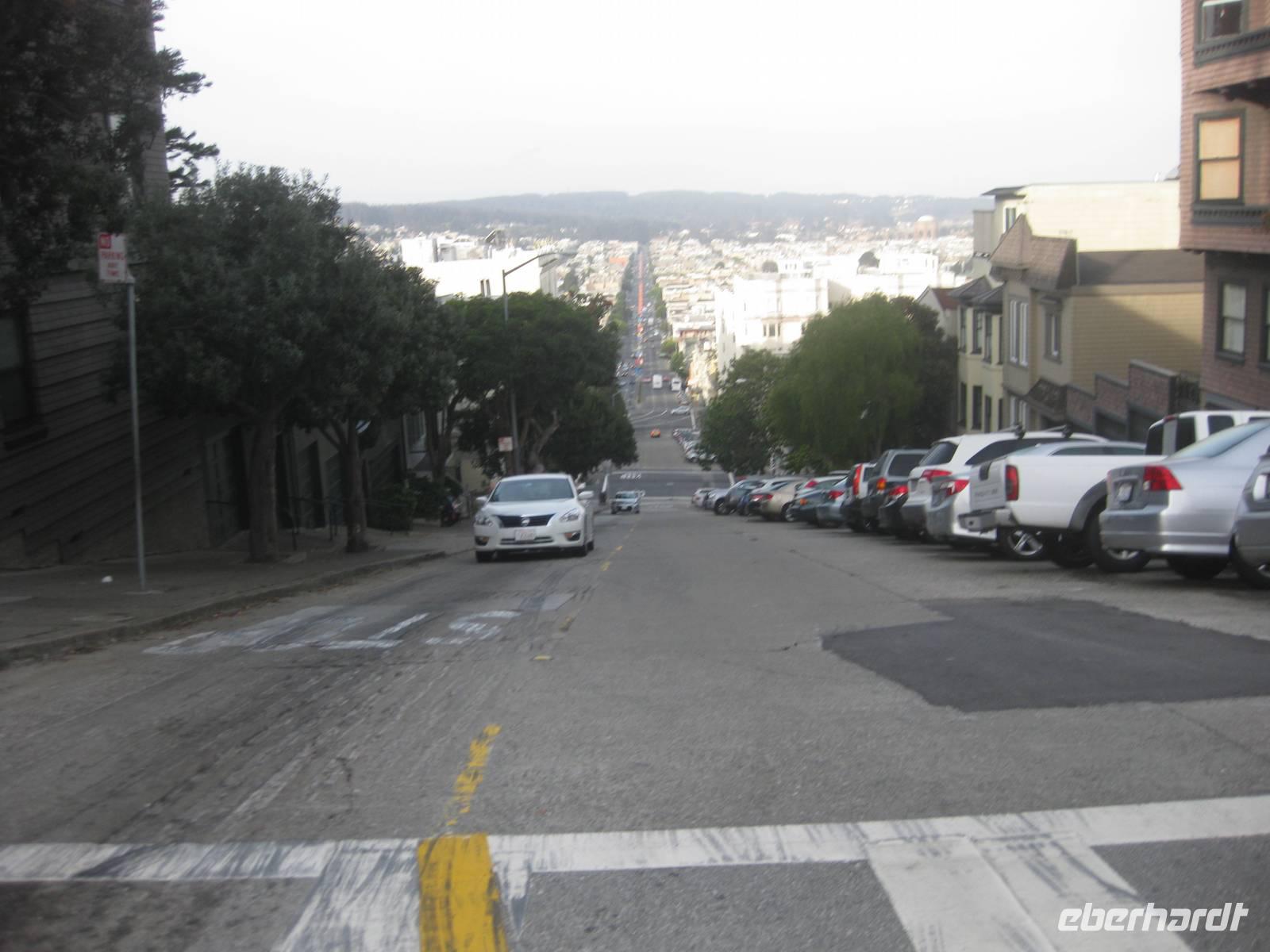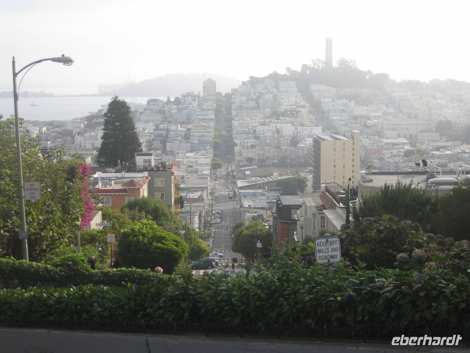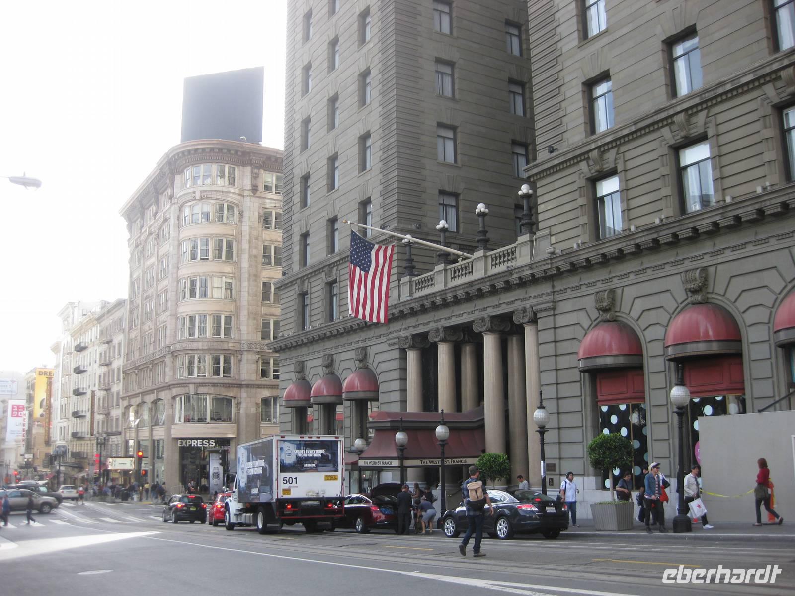 Wir haben noch etwas Zeit am Vormittag. Diese nutzen wir noch für eine Fahrt mit der Cable Car. Wir laufen vom Hotel bis zur Lombard Street, steigen dort in die Cable Car und fahren bis zur Union Square mit. Und von dort laufen wir wieder zum Hotel zurück. Alle kommen mit. Ein schöner Abschluss.