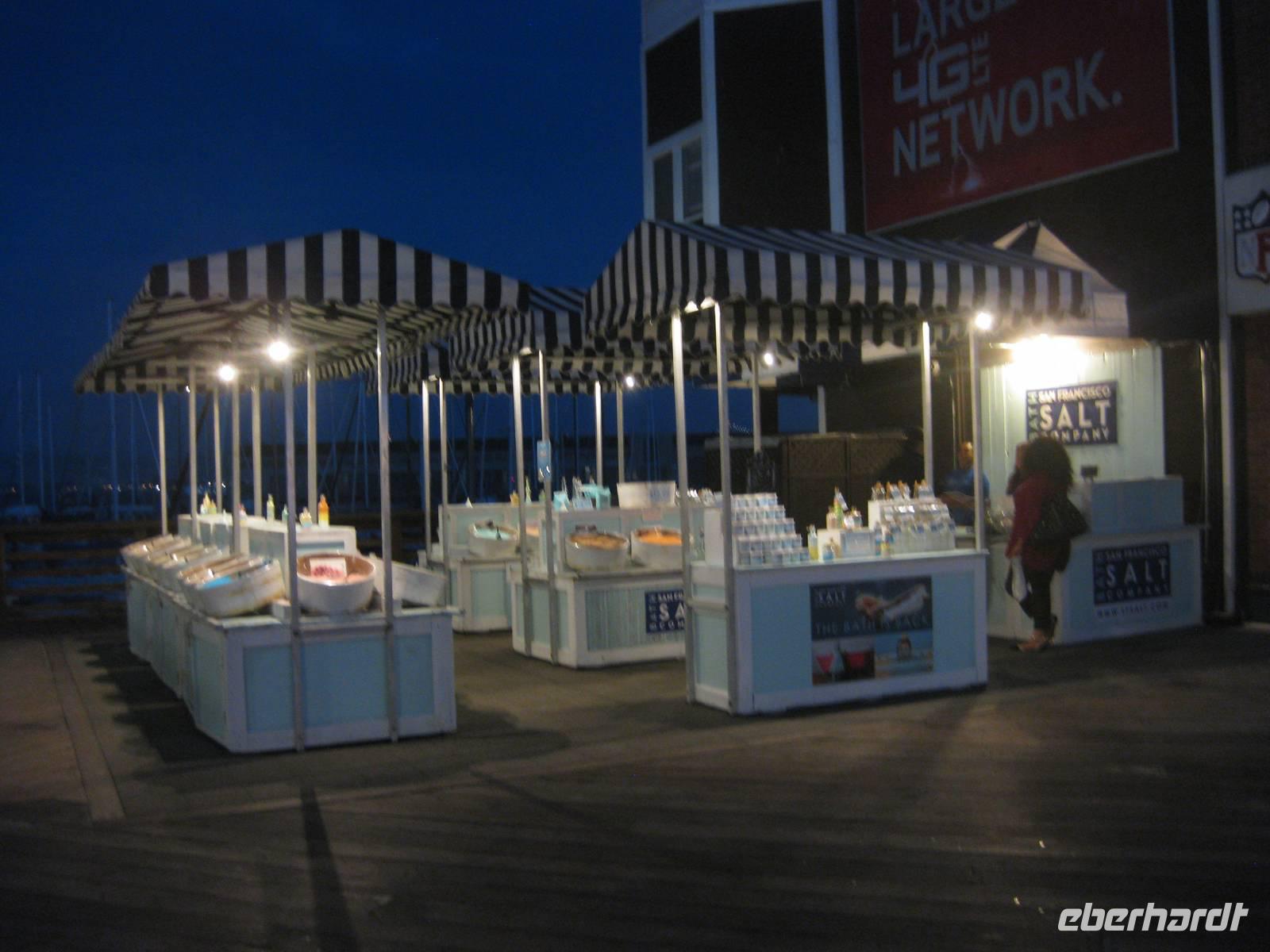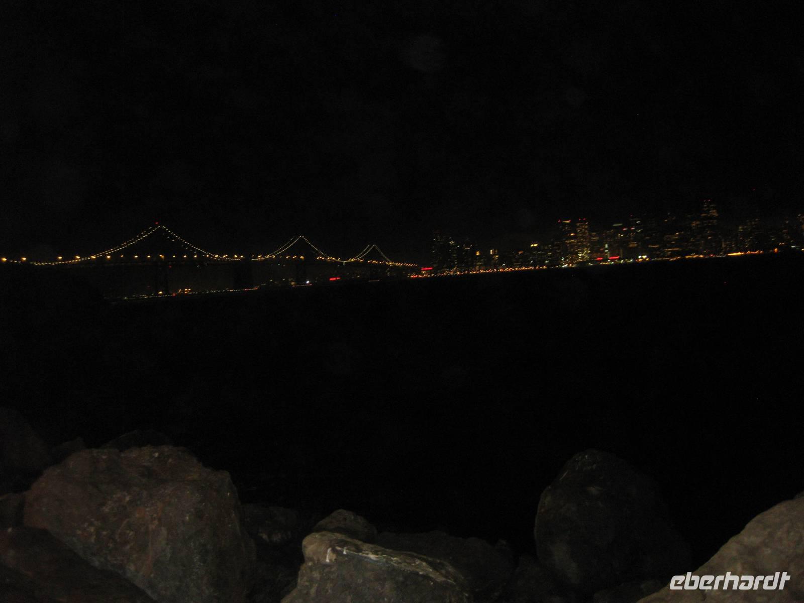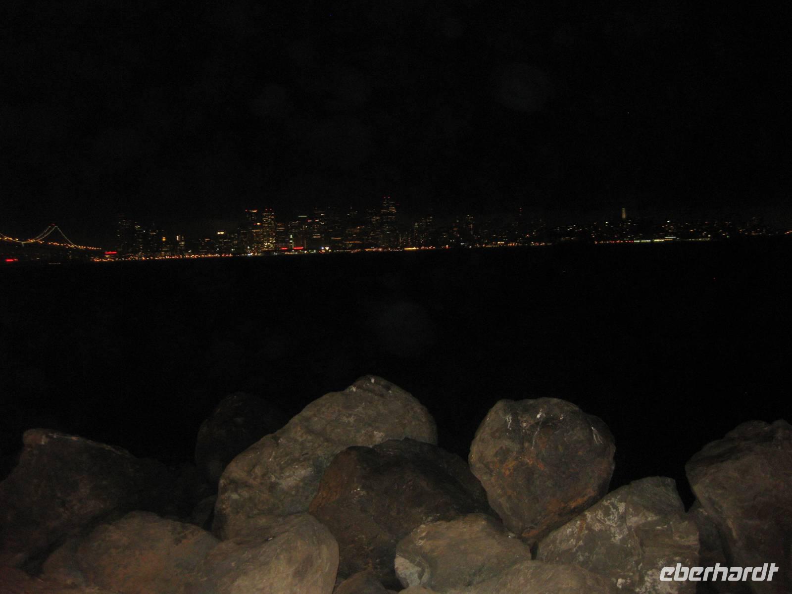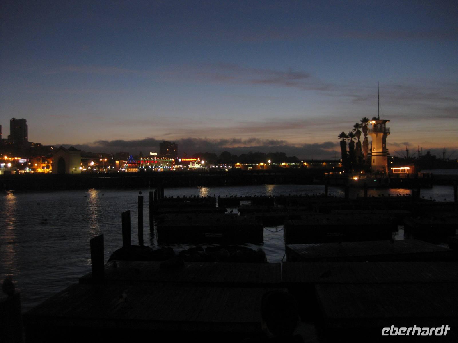 Nach dem Abendessen ist noch etwas Zeit für einen Bummel über Pier 39. Und dann kurz nach 21.00 Uhr holen uns die Stretchlimousinen zur Abendfahrt ab. Vier Gäste kommen nicht mit. Alle anderen haben die Limousinentour gebucht. Wir fahren auf die andere Seite der Bucht und haben von dort einen tollen Blick auf die Skyline von San Francisco. Dazu gibt es ein Glas Sekt und Musik. Ein schöner Abend zum Schluss der Reise.