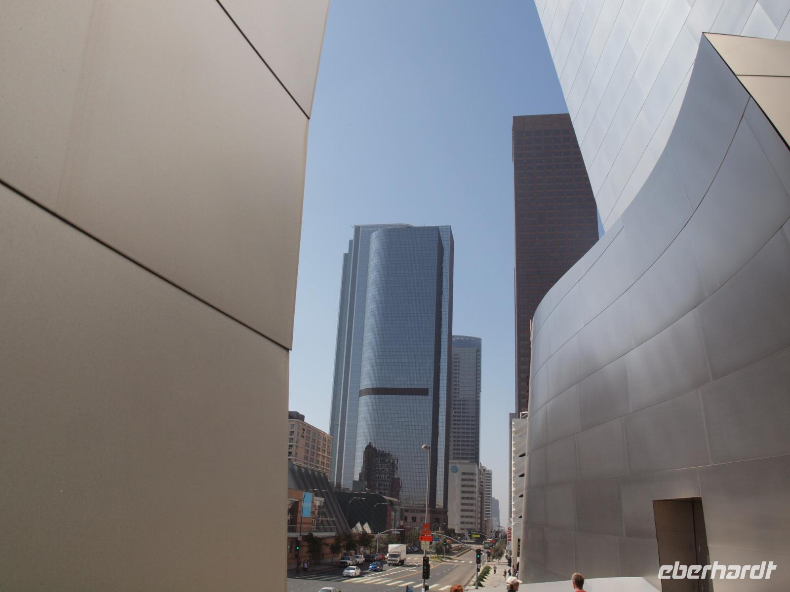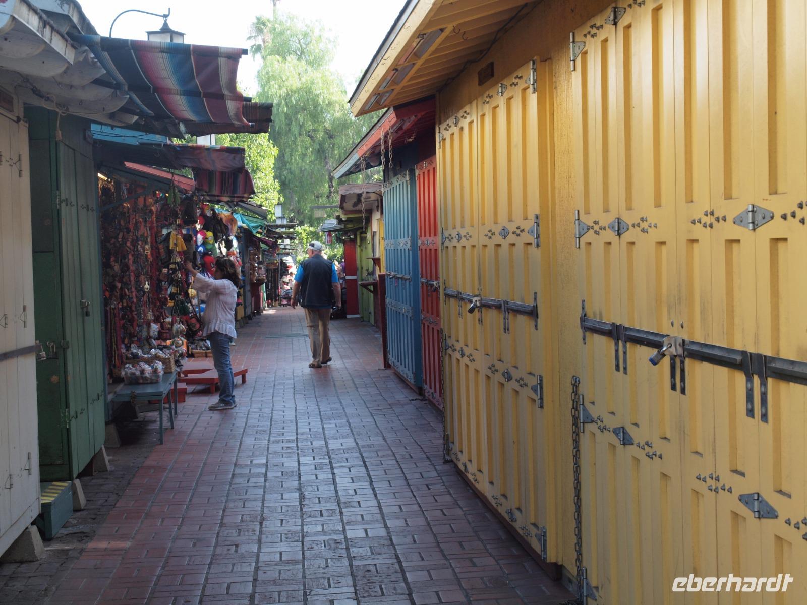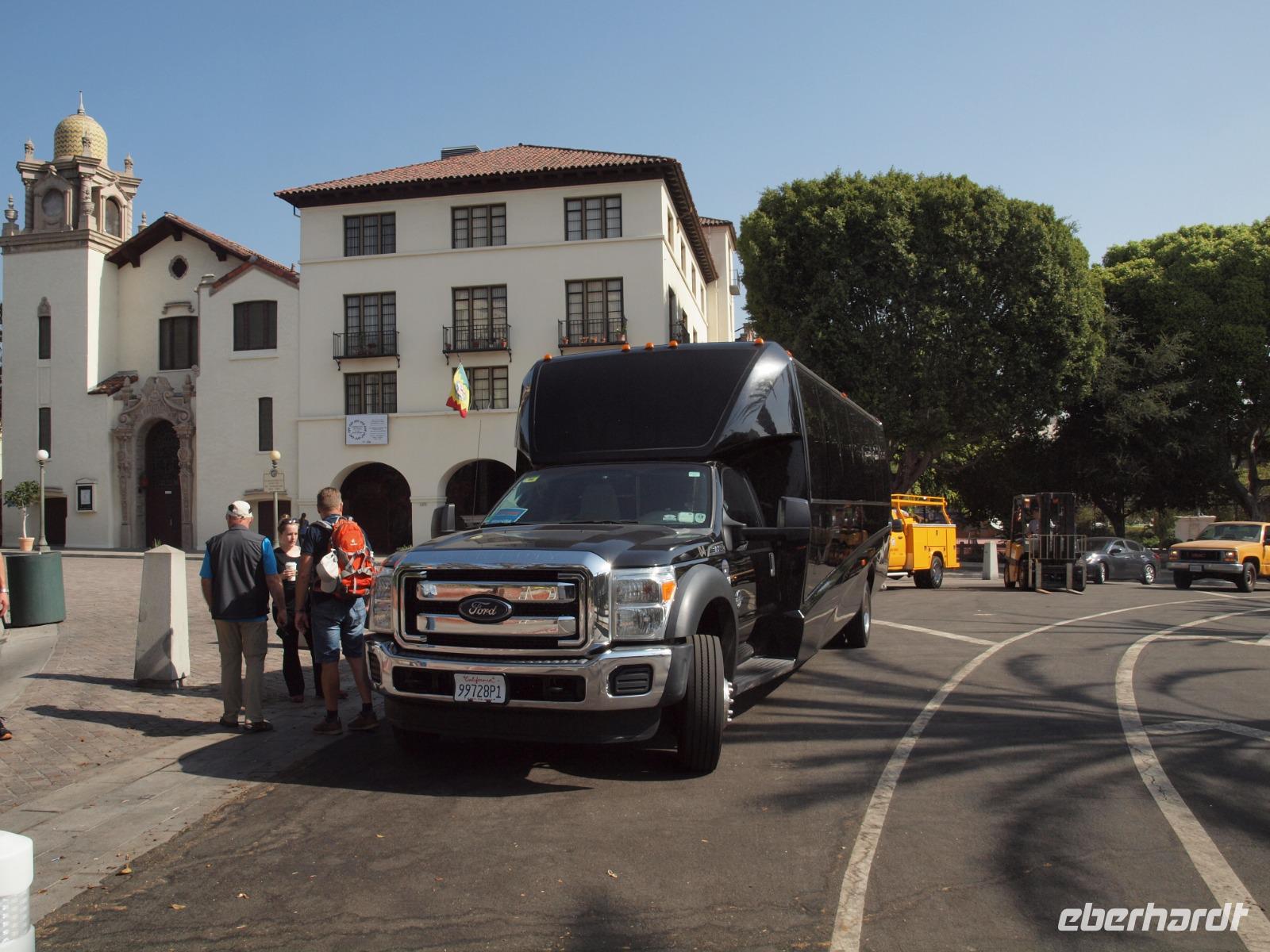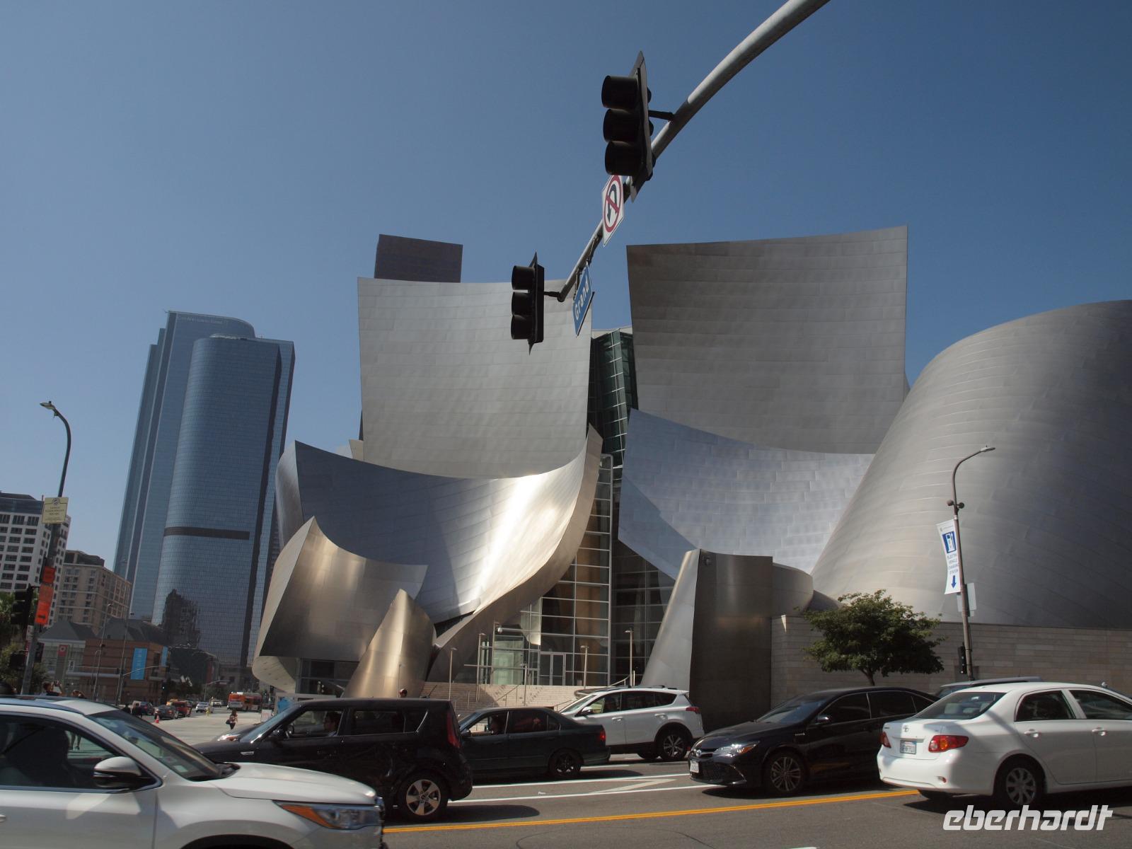 Frisch, munter und gestärkt treffen wir uns am Morgen nach dem Frühstück wieder. Heute erkunden wir Los Angeles und lernen dabei auch unseren Chauffeur für die Reise kennen, den Belgier Serge. Unsere Tour beginnt im ältesten Teil der Stadt. An der Old Plaza, etwas oberhalb vom Bahnhof, befindet sich die Olvera Street. Sie wird als Geburtsstätte von L.A. bezeichnet und würdigt das mexikanische Erbe der Stadt. Den mexikanischen Einfluss erleben wir auch in der kleinen katholischen Kirche, die wir zuerst besuchen. Die Olvera Street selbst ist heute noch etwas verschlafen, die kleinen Läden und Restaurants erwachen erst mit unserer Ankunft zum Leben. Wir schauen uns ein altes Gutshaus an, es wurde liebevoll restauriert und bietet den Besuchern einen einmaligen Einblick ins damalige Leben der Menschen. Langsam schlendern wir entlang der Straße weiter in Richtung Union Station, den Bahnhof. Hier sind wir dann schon wieder mitten im modernen Leben angekommen. Die Menschen warten in den großen Hallen auf die ankommenden Züge oder eilen durch die langen Gänge um den Anschluss nicht zu verpassen - People Watching kann man hier ausgiebig ausüben. Nach einer kleinen Pause zum herum stöbern und schauen treffen wir uns wieder bei Serge am Bus und fahren weiter. Der nächste Stopp ist das Walt Disney Theater. Hier führt uns Martina in den kleinen „Blue Ribbon"-Garten und zur „Rose für Lilly". Diese riesige Rose, welche aus den Bruchstücken von Delfter Porzellan Vasen besteht, ist ein Andenken an Lillian Disney. Hier befindet sich auch eine riesige, problemlösende Spirale auf dem Boden, hat's bei euch schon funktioniert?