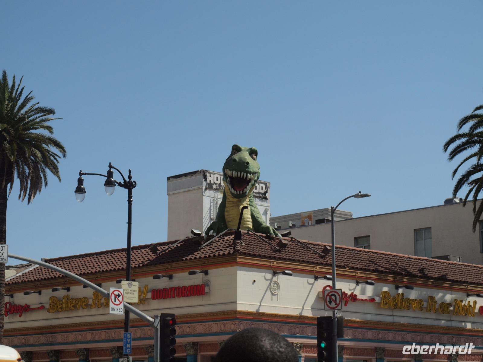 Weiter geht es, nun in die Welt der Reichen und Schönen, nach Beverly Hills auf den Rodeo Drive. Hier reihen sich die Luxusmarken aneinander, jedes Auto hier ist größer oder schneller als das andere. Nach einem kleinen Spaziergang über die Luxusstraße und einem Blick auf das Beverly Wilshire Hotel gehen wir zurück zu unserem Luxus-Bus. Gemeinsam geht's nun nach Hollywood, am Dolby Theater haben wir einen guten Blick zum „Hollywood"-Zeichen und können auch unsere Sternchensuche auf dem Walk of Fame beginnen. Es ist erstaunlich wie viele Besucher zeitgleich auf diesen schmalen Streifen Fußgängerweg passen... Mit einem Snack im Gepäck geht's dann schließlich wieder zurück nach Santa Monica. Hier müssen noch wichtige Dokumente wieder gefunden werden und der ein oder andere Bummel durch die Kaufhäuser und am Strand kommt auch nicht zu kurz. Ausgeruht treffen wir uns dann am Abend alle wieder um gemeinsam zum Restaurant zu fahren. Die Zeitumstellung sitzt uns noch etwas in den Knochen, aber dennoch genießen wir unseren letzten Abend in der Stadt der Engel.