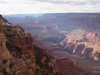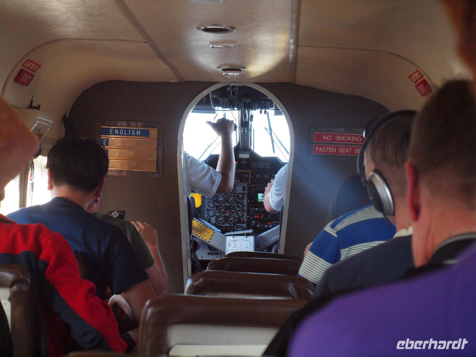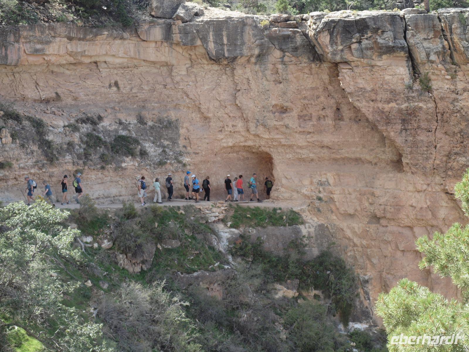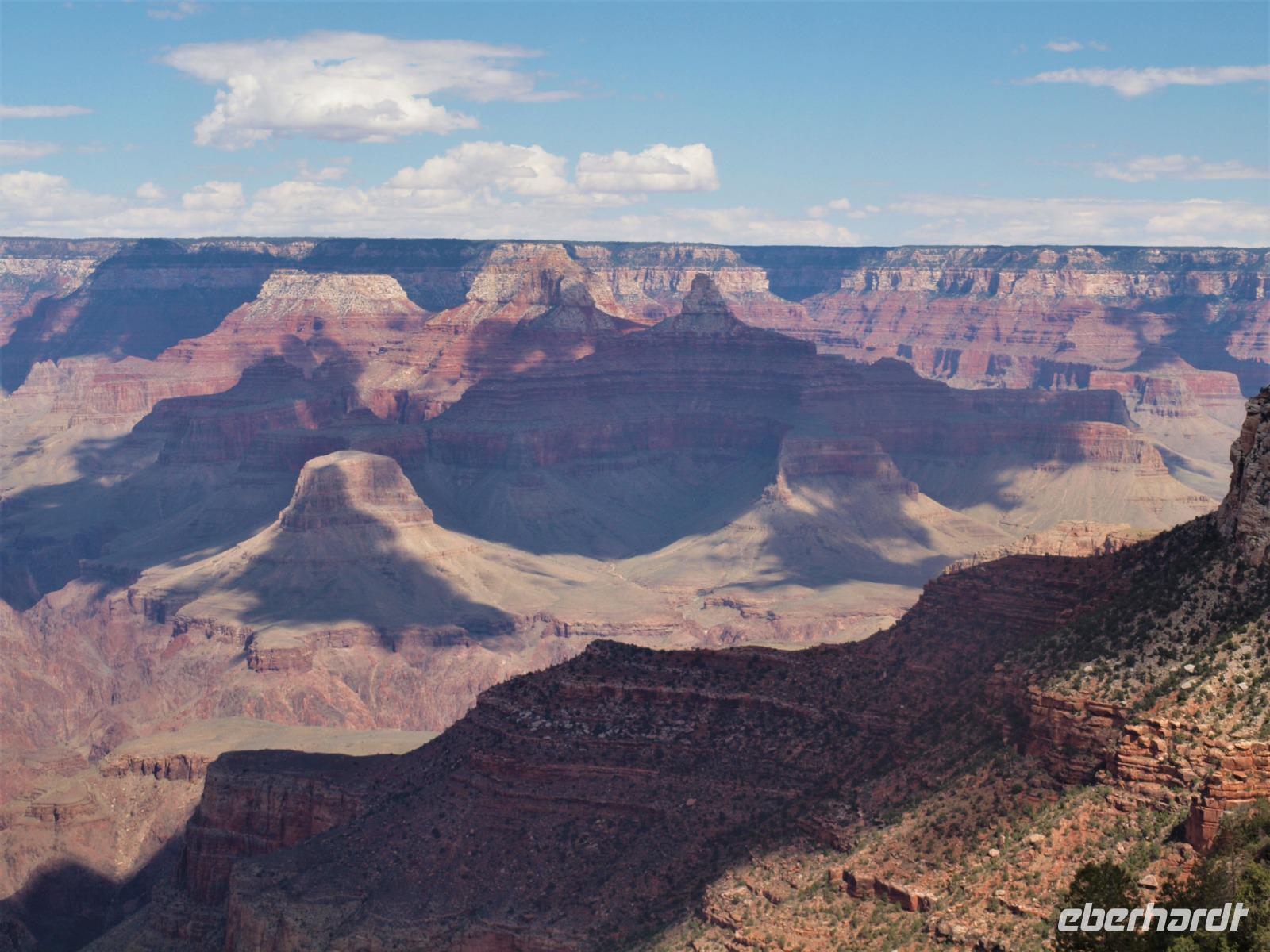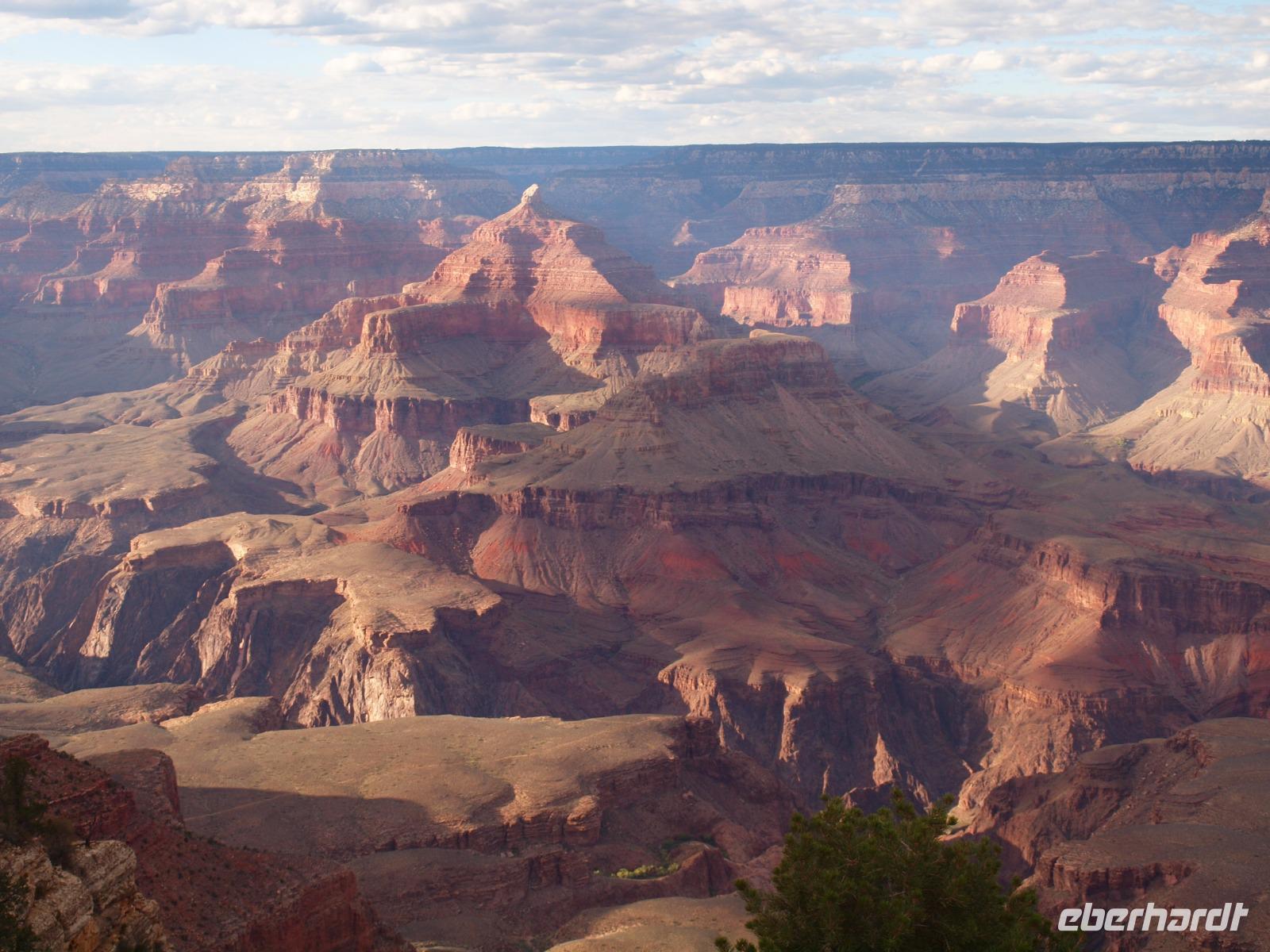 Heute verlassen wir den Bundesstaat Nevada schon wieder und fahren über den Colorado nach Arizona. Es dauert noch ein ganzes Stück, eh wir auf der legendären Route 66 fahren. Im kleinen verrückten Örtchen Seligman haben wir es dann geschafft und machen eine kleine Pause. Hier gibt es einen berühmten, oder besser gesagt DEN berühmten Barber-Shop. Neben Souvenirständen, Kühlschränken, Magneten, anderem Krimskrams und jeder Menge Kleidungsstücke befindet sich auch noch tatsächlich ein kleiner Bereich des Barber-Shops. Heute ist sogar der Besitzer da und bedient höchstpersönlich einen Kunden. Nach unserer Pause und einer Begegnung mit einer Riesenheuschrecke, die erstaunlich schnell in unser Herz gesprungen ist, zieht es uns weiter, immerhin haben wir heute noch ein wundervolles Highlight vor uns. Gegen Mittag erreichen wir die Bright Angel Lodge, das Besucherzentrum am Grand Canyon Nationalpark. Auf direktem Wege hindurch und schon offenbart sich ein einzigartiger Blick in den Canyon hinein. Wir spazieren entlang der Südkante bis zum Bright Angel Trailhead, von hier aus kann man nach Belieben so weit wie man möchte in den Canyon hinunter laufen. Einige unserer Weggefährten machen sich auf den Weg nach ganz unten. Einige von uns aber wollen eher in die andere Richtung, nämlich ganz nach oben. Wir treffen uns alle am Bus wieder und fahren erst einmal zurück nach Tusayan, gleich vor den Toren des Grand Canyon. Hier werden wir heute auch übernachten, aber zuerst lassen wir die Nicht-Flieger am IMAX Kino raus und fahren dann weiter zum Flugplatz. Hier startet unser Kleinflugzeug-Ausflug. Nach einer kurzen Sicherheitseinweisung setzen wir die Kopfhörer auf und werden von stimmungsvoller Musik und interessanten Fakten über den Grand Canyon während des Fluges begleitet. Eine wirklich einzigartige Perspektive, unbeschreiblich. Der Rundflug dauert etwa 40 Minuten und noch völlig beflügelt von den Eindrücken aus der Luft holen wir die anderen wieder ab. Serge und Martina bringen uns zum Abschluss noch zum Mather Point, einem weiteren Aussichtspunkt. So langsam steht die Sonne auch schon etwas tiefer und die Farben wirken noch intensiver als am Mittag. An jeder Ecke sieht es wieder anders fantastisch aus und man könnte ununterbrochen fotografieren. Dennoch wird es langsam Zeit den Nationalpark zu verlassen, auf dem Rückweg begegnen wir aber noch den Wildtieren, wir sehen Elchkühe mit ihren Jungen und das ein oder andere niedliche puschelige Eichhörnchen. Nach der Ankunft in der Lodge machen wir uns fürs Abendessen im Steakhouse fertig, es ist ein ruhiger Abend, der mit dem Besuch der Spätvorstellung im Kino endet, für die, die den Film nicht gesehen haben. Danach heißt es dann aber schnell ins Bett und Kraft tanken für den nächsten Tag.