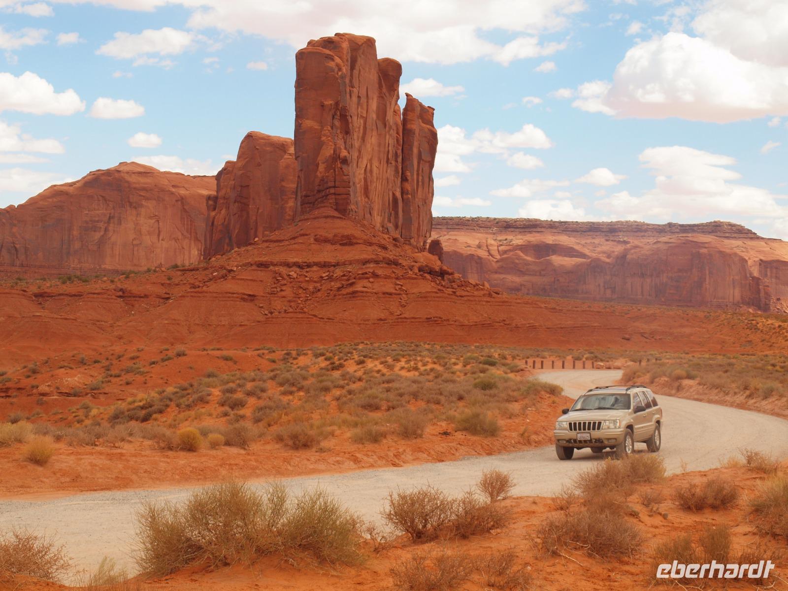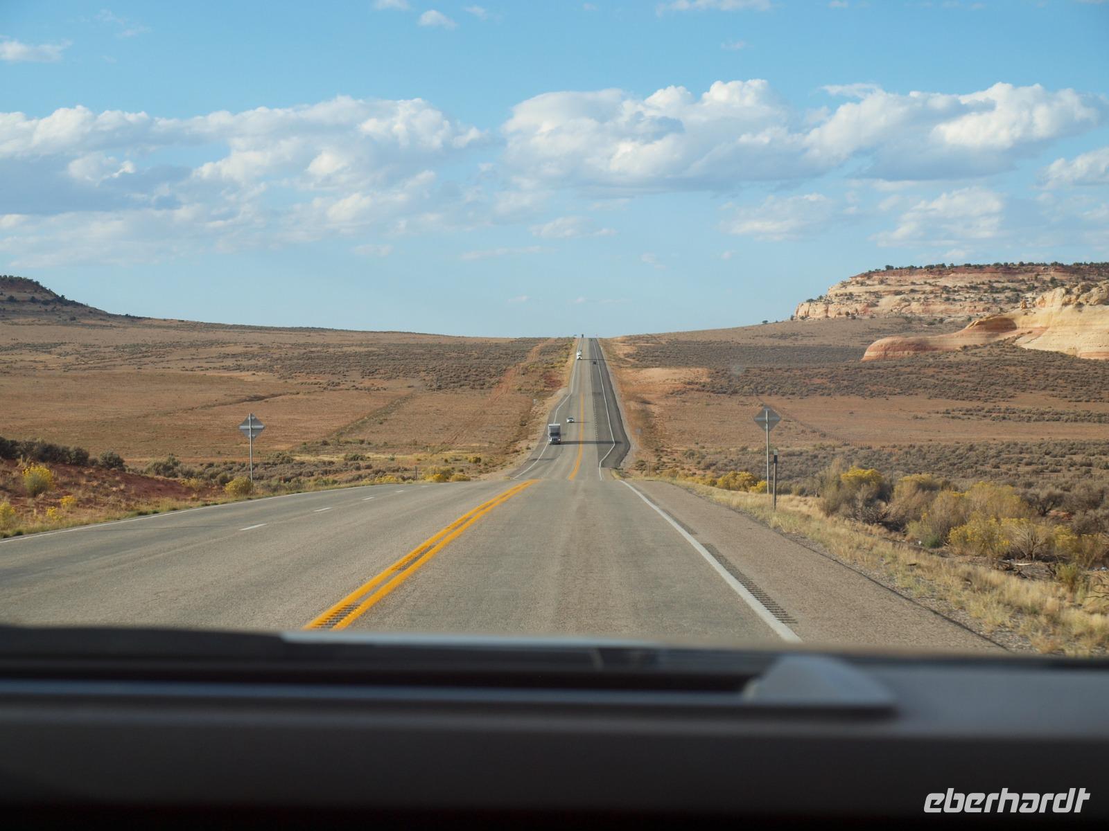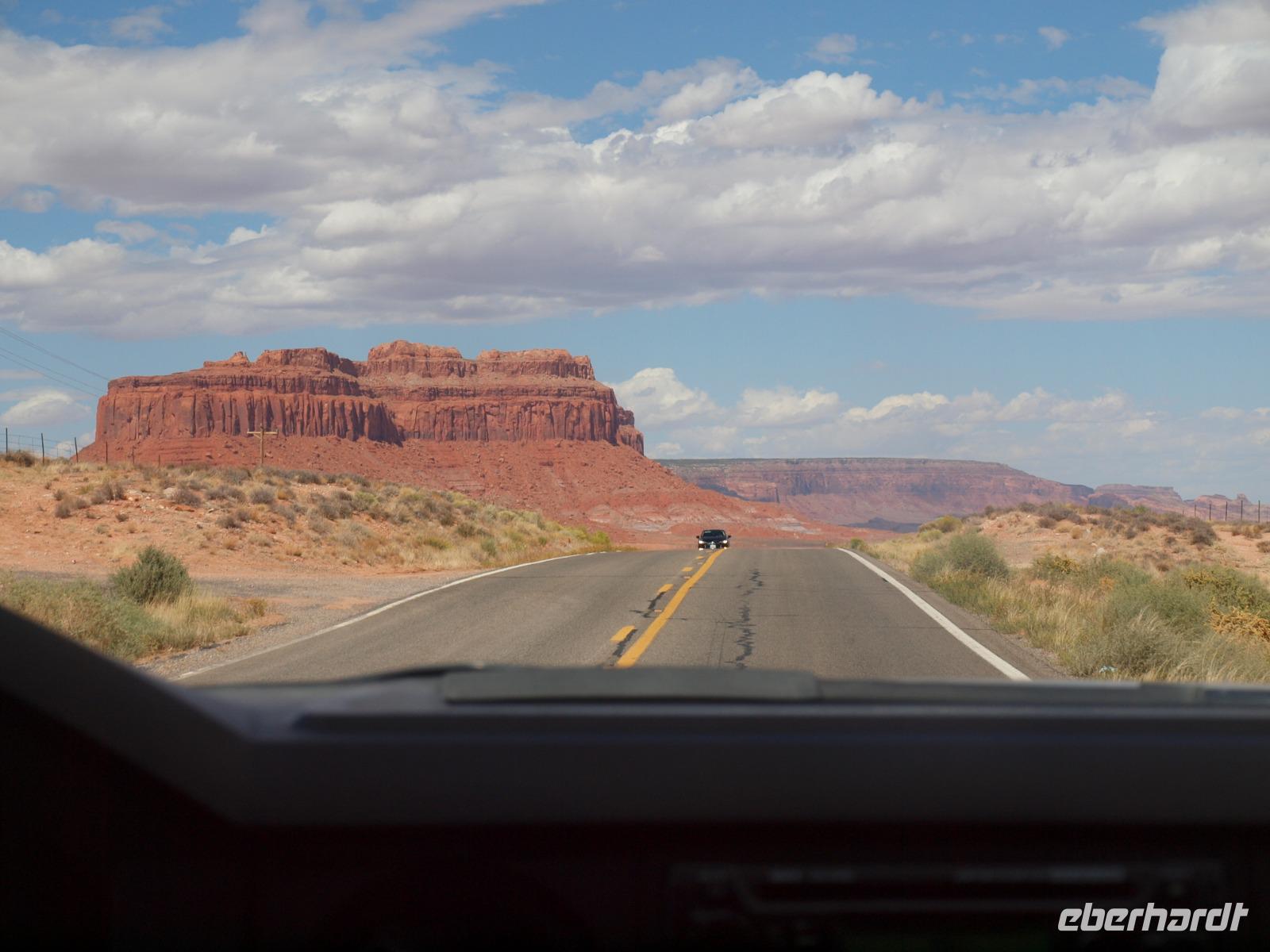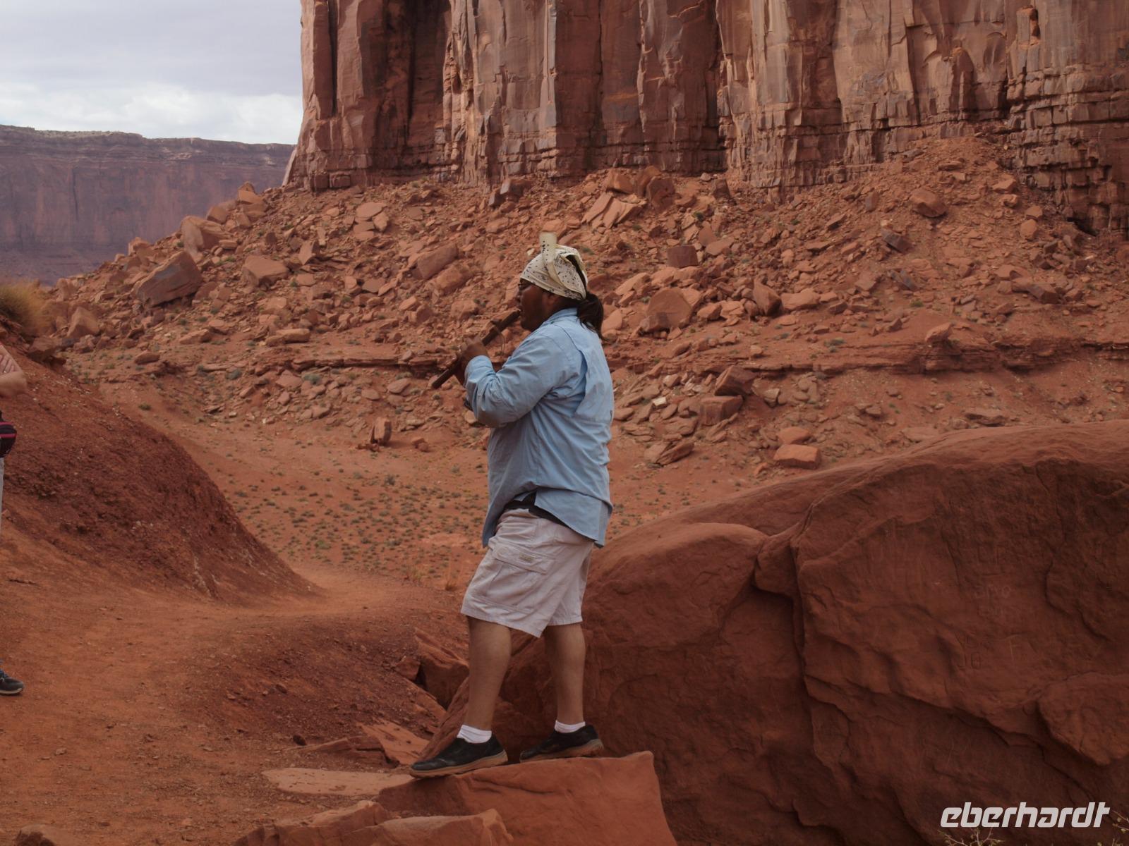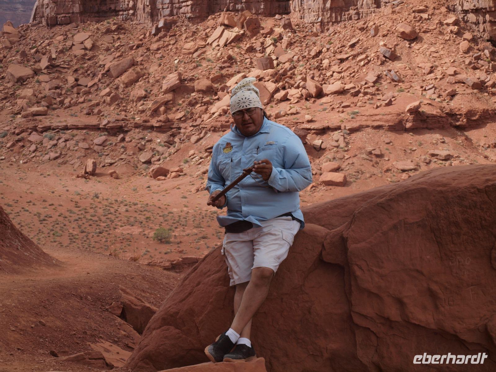 Neuer Tag, neuer Bundesstaat, neue Zeitzone - Unsere Reise setzt sich nach Utah fort. Wir fahren noch ein Stückchen entlang der Kante des Grand Canyon und können so auch immer wieder einen Blick auf ihn im frühen Tageslicht werfen. Auf dem Weg zum Monument Valley durchfahren wir immer wieder kleine Siedlungen der Indianer. An einer geeigneten Stelle machen wir eine Pause um auch Snacks für die Fahrt und den folgenden Tag zu holen. Nach dem Mittag erreichen wir dann das Besucherzentrum im Monument Valley und können schon die markanten Tafelberge sehen. Das Monument Valley liegt auf dem Colorado Plateau an der Grenze zu Utah und wird von den Navajo-Indianern verwaltet, es ist kein Nationalpark oder Schutzgebiet. Mit einem offenen Jeep und Jamie, einem waschechten Navajo, machen wir uns auf den Weg. Über Stock und über Stein geht die holprige Fahrt bis zum John Ford Point. Dieser Punkt ist einer der Kamerastandorte, der mehrmals bei Dreharbeiten von dem Regisseur verwendet wurde. Wir verweilen hier etwas länger als ursprünglich geplant, denn irgendwie ist unser Jeep etwas schief, wir haben einen platten Reifen und der Ersatz ist auch nicht wirklich hilfreich. Zum Glück verständigen sich auch die Indianer heutzutage nicht mehr ausschließlich durch Rauchzeichen. Irgendwann kommt dann auch das Ersatzfahrzeug und unsere Tour durchs Tal geht weiter. Jamie bringt uns an einen Aussichtspunkt wo wir schier die einzigen sind. Dieser einmalige Moment wird perfekt als er beginnt uns vorzusingen und die Flöte zu spielen. Gänsehautmoment. Nach zwei weiteren Fotostopps sind wir dann auch wieder zurück am Ausgangspunkt und bei Serge und fahren weiter. Nach etwa drei weiteren Stunden erreichen wir dann am Abend die Kleinstadt Moab, am Rande des Arches Nationalparks. Wir ziehen uns schnell zum Essen um und gehen dann auch schon los um pünktlich am Restaurant anzukommen. Nach dem Essen statten wir dem örtlichen Supermarkt noch einen Besuch ab um uns für die morgige Wanderung einzudecken.