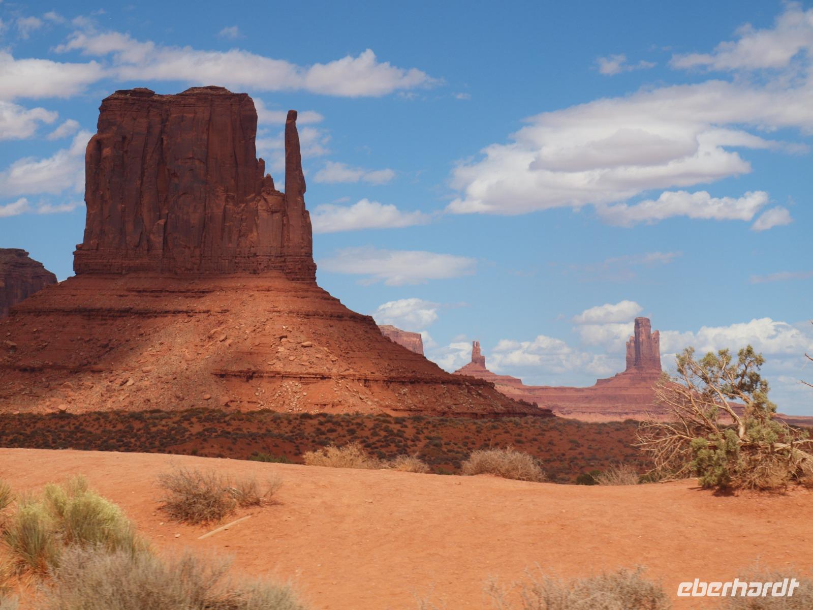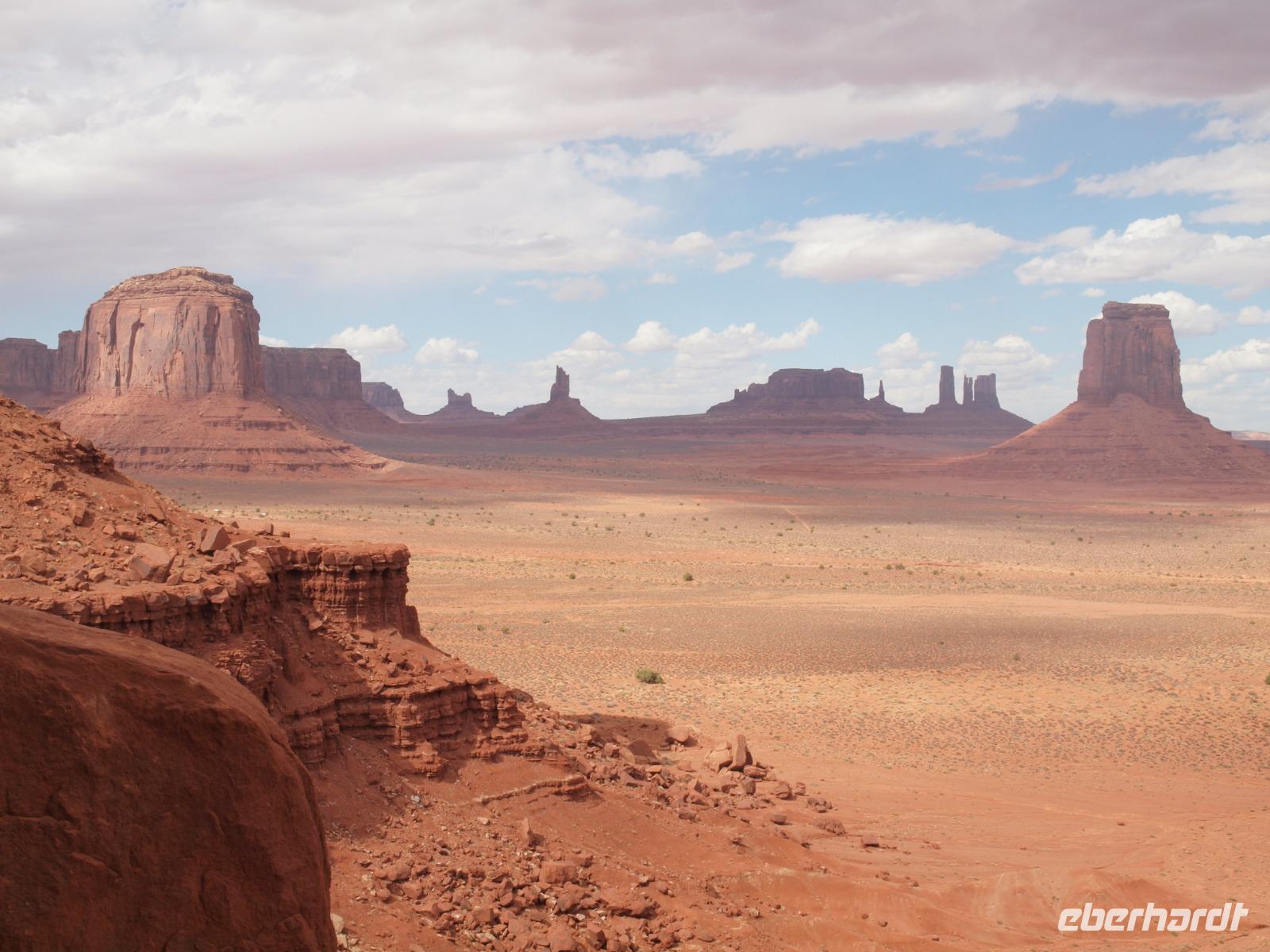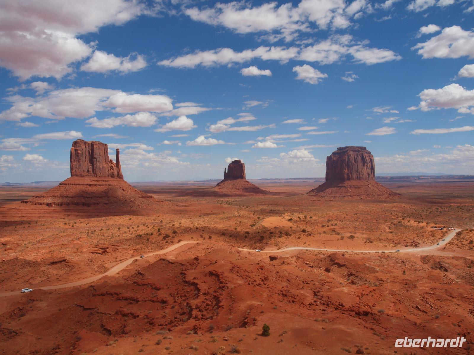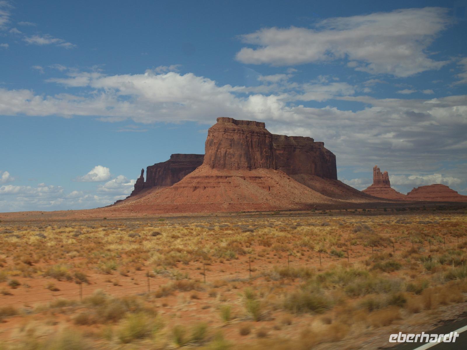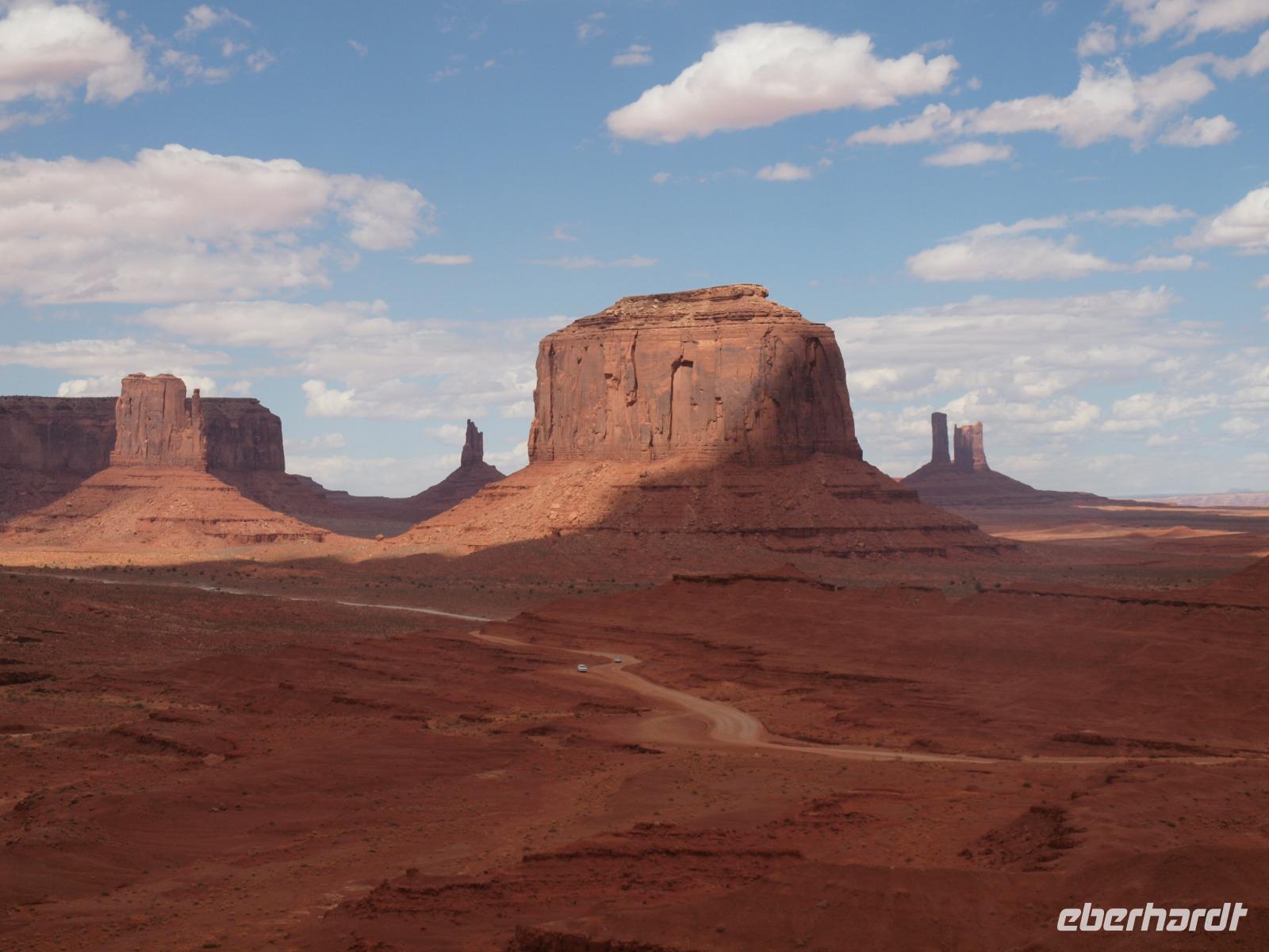 Neuer Tag, neuer Bundesstaat, neue Zeitzone - Unsere Reise setzt sich nach Utah fort. Wir fahren noch ein Stückchen entlang der Kante des Grand Canyon und können so auch immer wieder einen Blick auf ihn im frühen Tageslicht werfen. Auf dem Weg zum Monument Valley durchfahren wir immer wieder kleine Siedlungen der Indianer. An einer geeigneten Stelle machen wir eine Pause um auch Snacks für die Fahrt und den folgenden Tag zu holen. Nach dem Mittag erreichen wir dann das Besucherzentrum im Monument Valley und können schon die markanten Tafelberge sehen. Das Monument Valley liegt auf dem Colorado Plateau an der Grenze zu Utah und wird von den Navajo-Indianern verwaltet, es ist kein Nationalpark oder Schutzgebiet. Mit einem offenen Jeep und Jamie, einem waschechten Navajo, machen wir uns auf den Weg. Über Stock und über Stein geht die holprige Fahrt bis zum John Ford Point. Dieser Punkt ist einer der Kamerastandorte, der mehrmals bei Dreharbeiten von dem Regisseur verwendet wurde. Wir verweilen hier etwas länger als ursprünglich geplant, denn irgendwie ist unser Jeep etwas schief, wir haben einen platten Reifen und der Ersatz ist auch nicht wirklich hilfreich. Zum Glück verständigen sich auch die Indianer heutzutage nicht mehr ausschließlich durch Rauchzeichen. Irgendwann kommt dann auch das Ersatzfahrzeug und unsere Tour durchs Tal geht weiter. Jamie bringt uns an einen Aussichtspunkt wo wir schier die einzigen sind. Dieser einmalige Moment wird perfekt als er beginnt uns vorzusingen und die Flöte zu spielen. Gänsehautmoment. Nach zwei weiteren Fotostopps sind wir dann auch wieder zurück am Ausgangspunkt und bei Serge und fahren weiter. Nach etwa drei weiteren Stunden erreichen wir dann am Abend die Kleinstadt Moab, am Rande des Arches Nationalparks. Wir ziehen uns schnell zum Essen um und gehen dann auch schon los um pünktlich am Restaurant anzukommen. Nach dem Essen statten wir dem örtlichen Supermarkt noch einen Besuch ab um uns für die morgige Wanderung einzudecken.