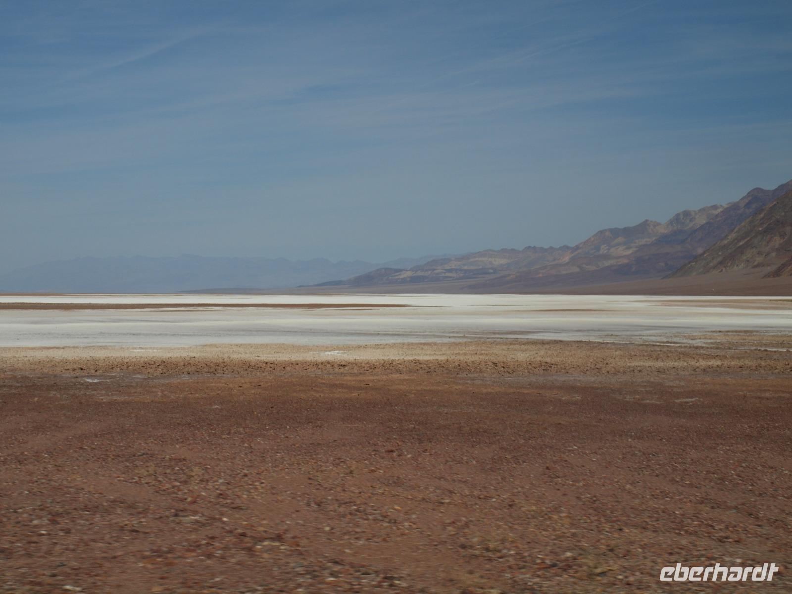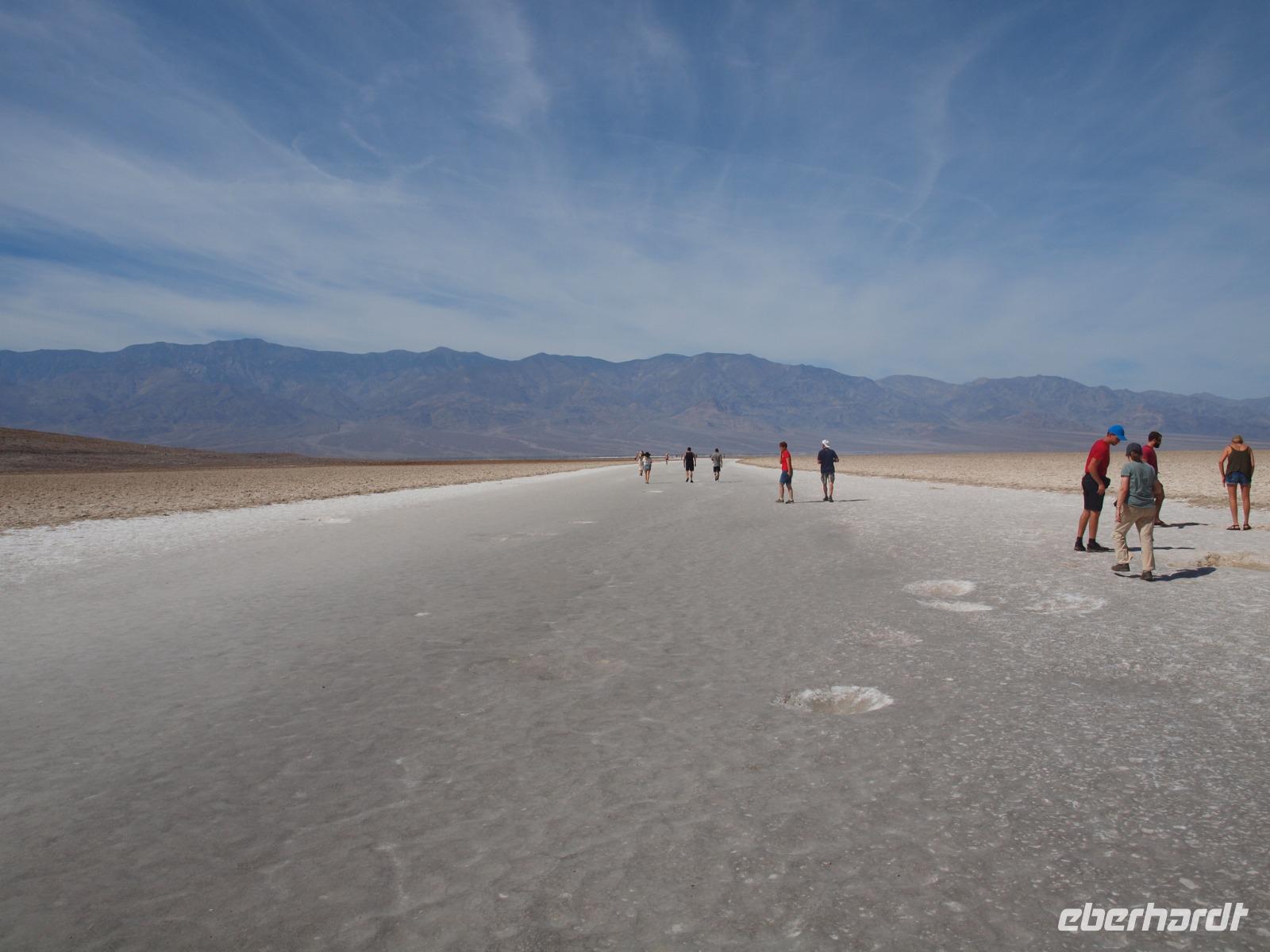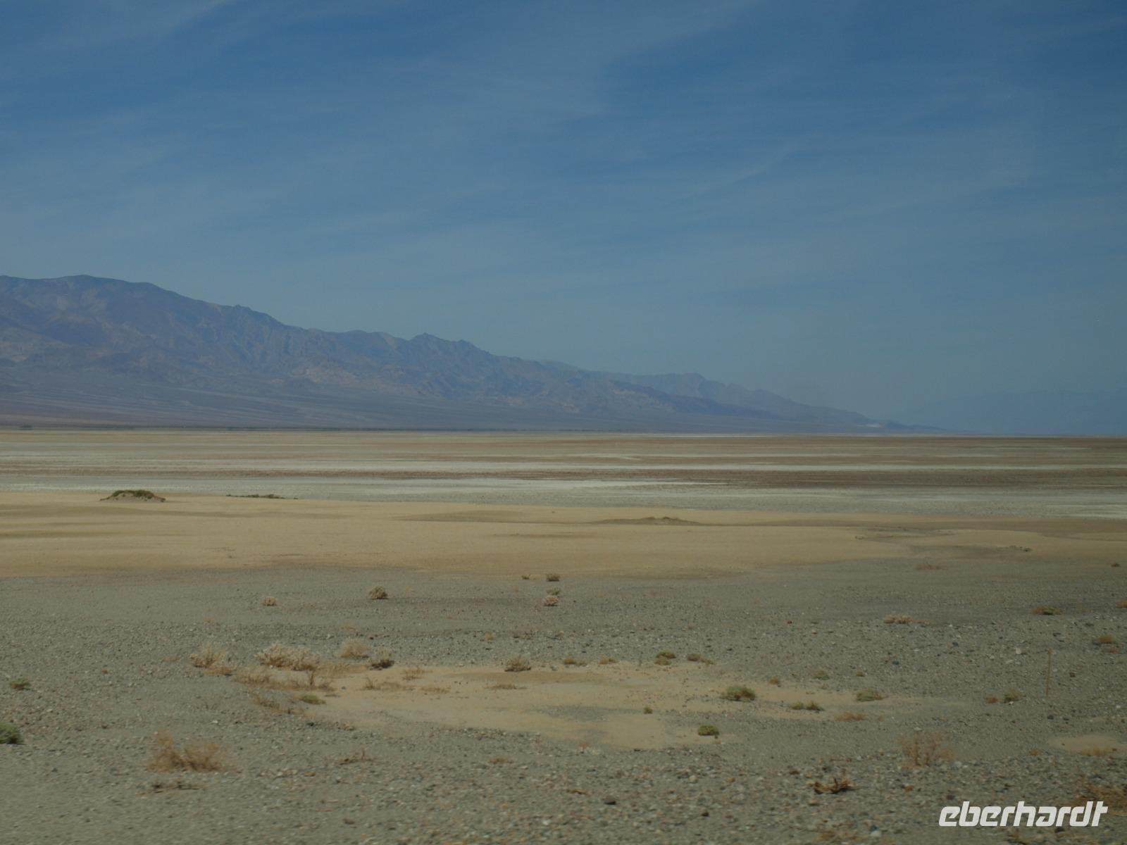 Nach einem ausgiebigen Frühstück geht unsere Reise weiter, heutiges Highlight ist das Tal des Todes. Viele Kilometer liegen heute wieder einmal vor uns... Doch zum Glück weiß Martina immer, wie sie uns die Zeit vertreiben kann. Mit den Siedlungsgeschichten und über den langen strapaziösen Weg durch das Tal vergeht die Zeit wie im Schlaf. Um die Mittagszeit erreichen wir den Bad Water Point. An diesem Punkt befinden wir uns am tiefsten Punkt Nordamerikas, 85,5 Meter unter dem Meeresspiegel, um genau zu sein. Vor Badwater, zu Deutsch: schlechtes Wasser, gab es hier einst einen See, in der Senke gibt es eine Quelle, doch das umgebene Salz macht das Wasser leider ungenießbar. Nach einer kurzen Steppvisite, denn sehr lange hält man es nicht in dieser Hitze außerhalb des Busses aus, fahren wir zum Besucherzentrum des Death Valley für eine kleine Pause. Nächster Halt sind dann noch die Sanddünen, bevor wir uns auf den Weg nach Bakersfield machen. Nach einigen Stunden Fahrt, natürlich mit einigen Pausen unterbrochen, erreichen wir pünktlich zum Abendessen die Stadt. Zum Abschluss des Tages treffen wir uns dann noch im „Bull Shed" auf einen Drink, bevor wir dann zurück auf die Zimmer gehen.