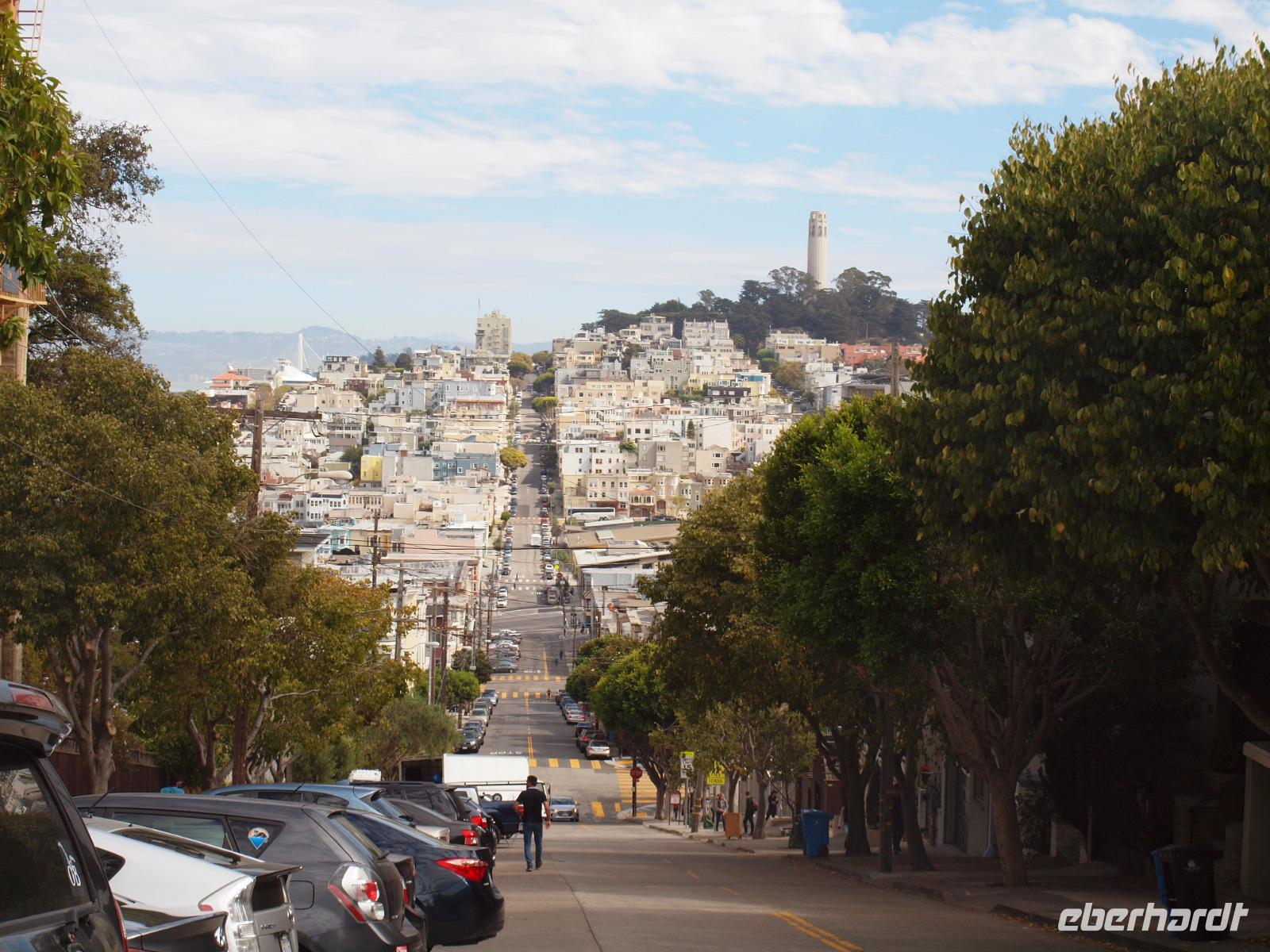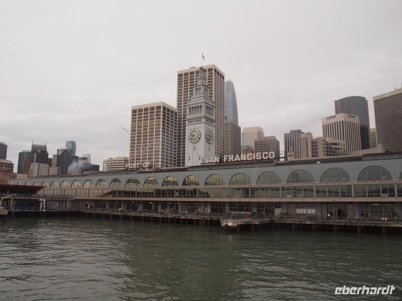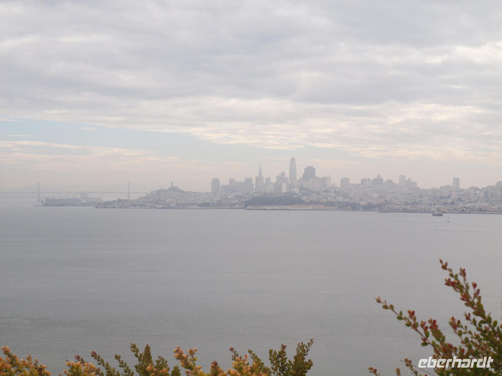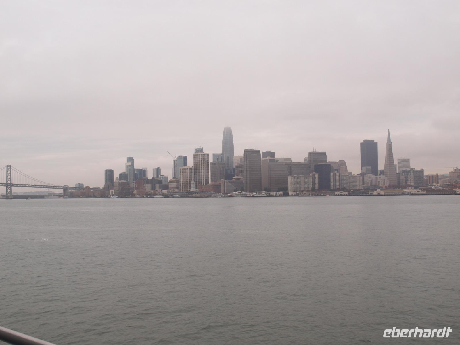 Nach dem Frühstück fahren wir nach Vallejo zur Fähre. Und da wir ganz flott sind, schaffen wir sogar noch eine Verbindung früher, als ursprünglich geplant. Dadurch sind wir natürlich auch wesentlich eher in San Francisco, was uns sehr entgegen kommt. Wir beginnen mit einer kleinen Pause im Hafengebäude, in der Zwischenzeit hat Serge die Stadt auch bereits erreicht und holt uns ab, um uns dann wieder am Pier 39, an der Fisherman's Wharf abzusetzen. Hier statten wir zuerst den Seehunden einen Besuch ab und treffen uns nach einem kurzen Bummel durch die Geschäfte wieder. Nächster Stopp ist die Golden Gate Brücke. Am Lime Point angekommen und nach einem Fotostopp begeben wir uns auf den Weg, die Brücke zu überqueren. Die knapp 2,7km sind zwar sehr laut und auch nicht unbedingt ungefährlich aufgrund der Radfahrer, dennoch aber ein Erlebnis. Und das vor allem, da wir die Brücke ohne Nebelschwaden sehen können. Unser nächster Stopp ist die Lombard Straße, die angeblich kurvenreichste Straße der Welt, aber nicht steilste Straße der Welt... denn die ist wo? Ja, richtig, in Neuseeland ;-)