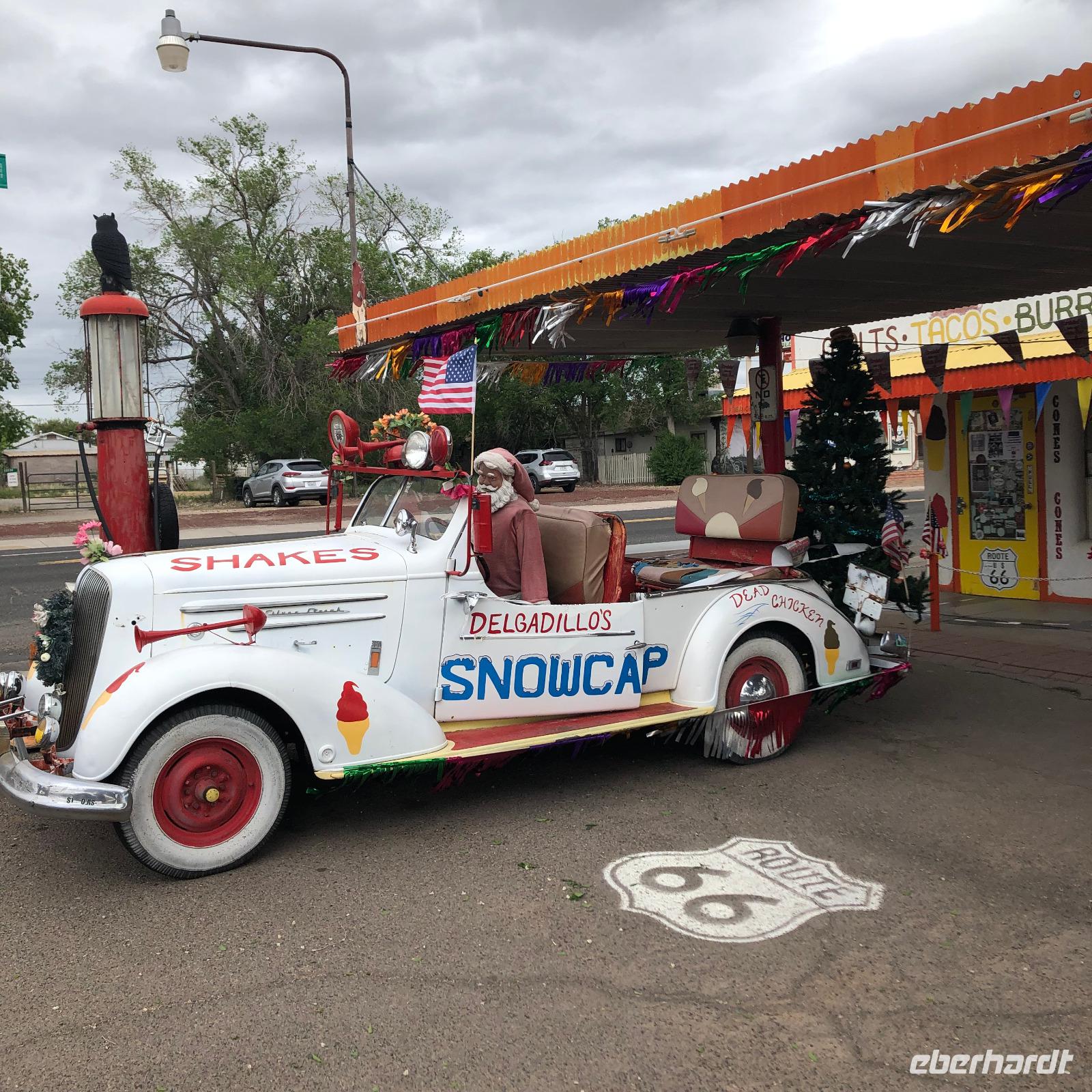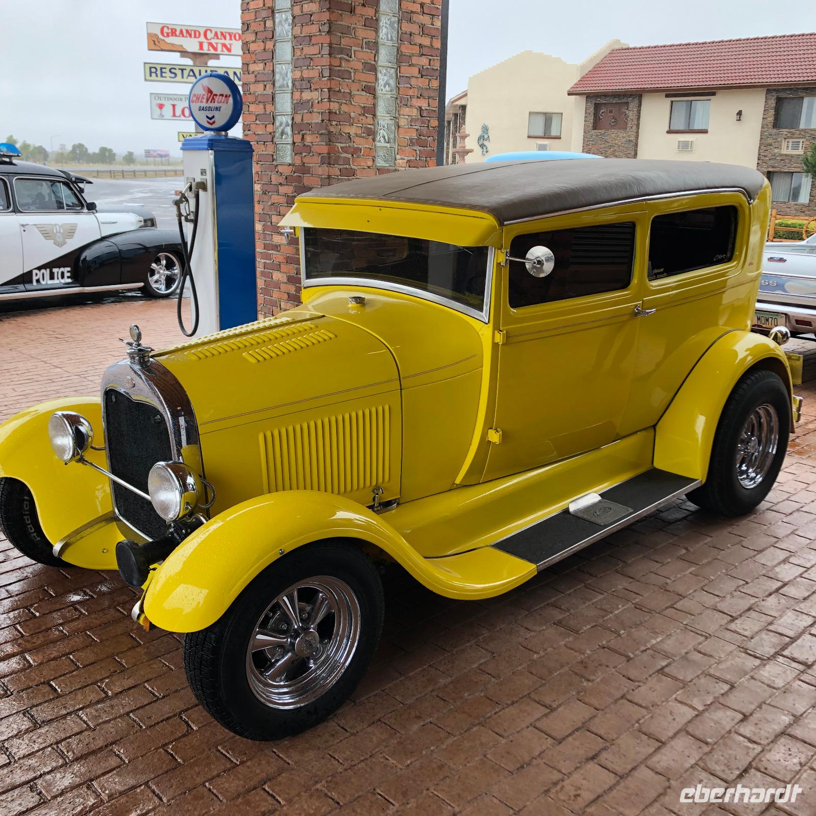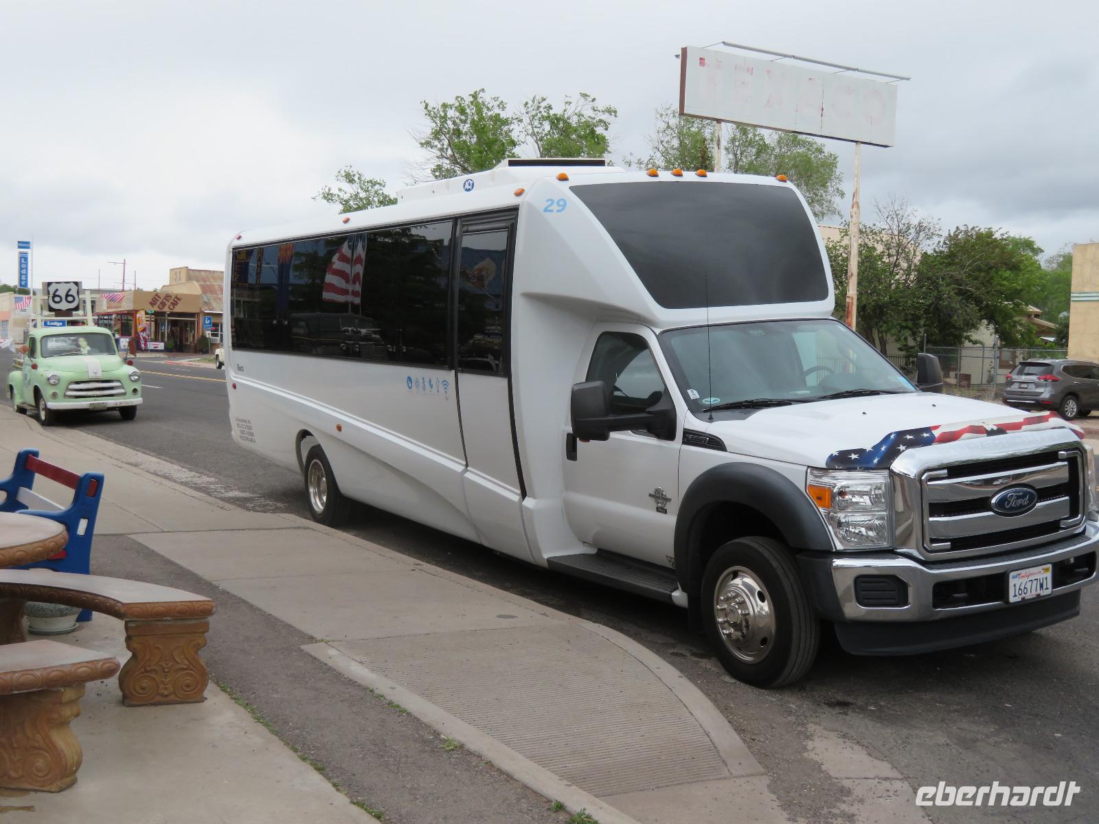 Nachdem wir unsere erste kleine Casinoerfahrung machen durften und die Nacht in Laughlin verbrachten, starteten wir heute zu einem der vielen Highlights dieser Rundreise durch den Westen der USA. Das heutige Ziel: der Grand Canyon Nationalpark. Der wohl bekannteste Nationalpark der USA wartete auf unseren Besuch am Nachmittag. Wir starteten bereits kurz nach 8 Uhr vom Hotel, da wir eine ganze Weile unterwegs sein werden. Zunächst hielten wir aber für einen interessanten Fotostopp in der Stadt Seligman. Seligman ist bekannt durch seine direkte Lage an der berühmten Route 66. Es wurden viele Fotos gemacht und Andenken eingekauft, um eine Erinnerung an diese weltweit bekannte Straße zu haben. Als alle wieder am Bus eintrafen, setzten wir unsere Reise in Richtung Grand Canyon fort. Am Nachmittag erreichten wir dann auch den Nationalpark und fuhren zu einer Lodge mit Zugang zum Canyonrand. Doch leider machte uns das Wetter und der damit verbundene Nebel einen Strich durch die Rechnung. Die Sicht war sehr eingeschränkt. So versuchten wir uns in der Lodge etwas aufzuhalten, um zum einen etwas über die ersten Entdecker des Grand Canyon zu erfahren und zum anderen zu hoffen, dass der Nebel sich lichtet. Da das Wetter uns diesen Gefallen leider nicht erfüllen wollte, entschieden wir gemeinsam mit der Reiseleiterin am nächsten Morgen nochmal einen Stopp am Grand Canyon zu machen. Damit wir an diesem Tag nicht ganz auf das Ambiente verzichten mussten, hielten wir auf dem Weg zu unserem Hotel an einem IMAX-Kino, welches einen wunderschönen Film zum Grand Canyon Nationalpark angeboten hat. Unser Abendessen haben wir heute in einem Steakhouse unweit des Hotels. Die Ausstattung und Gestaltung der Lokalität bieten ein schönes Westerngefühl.