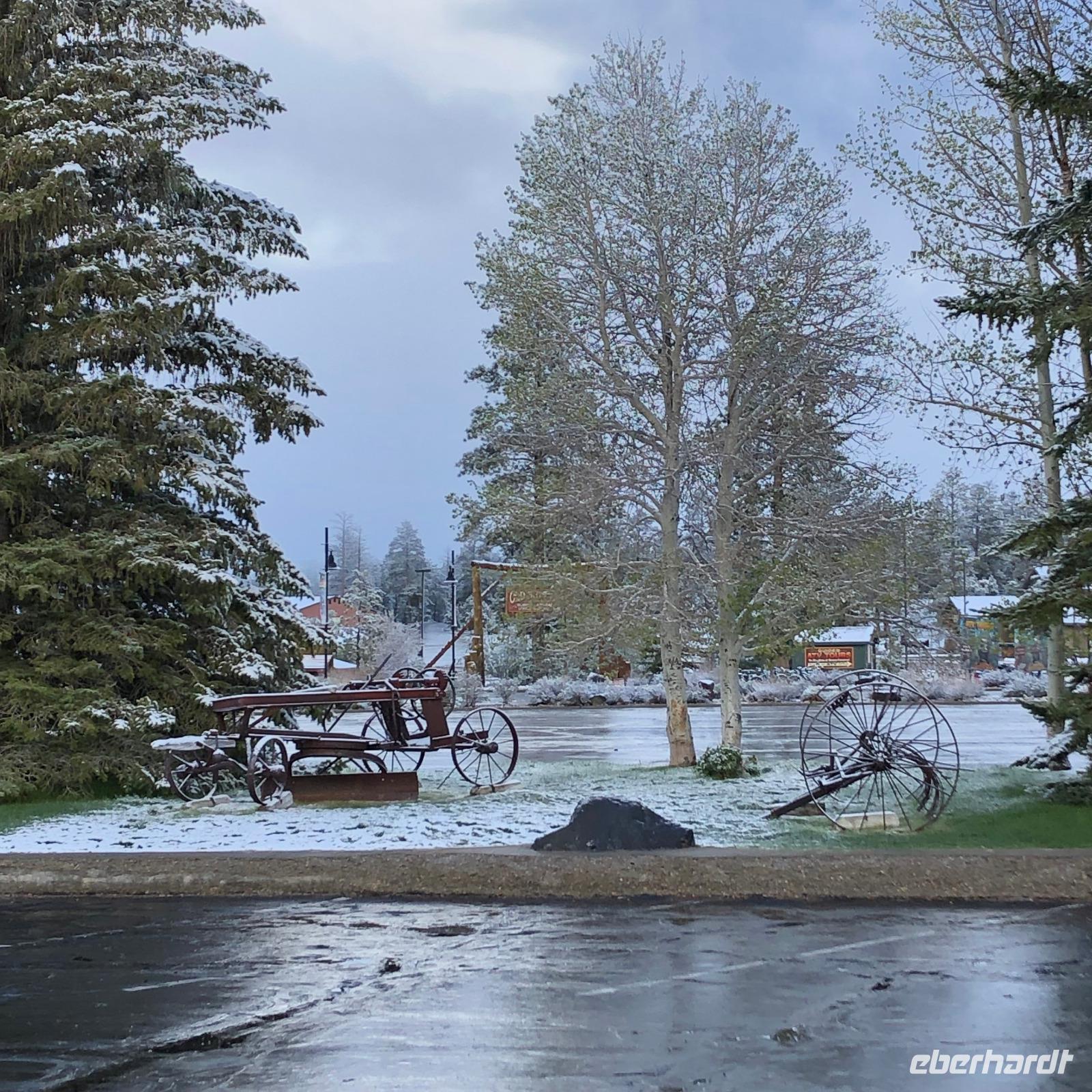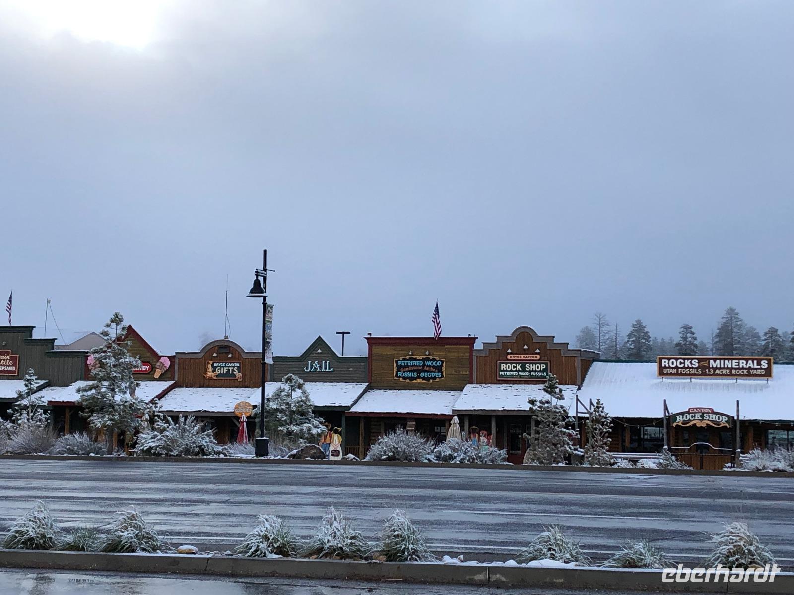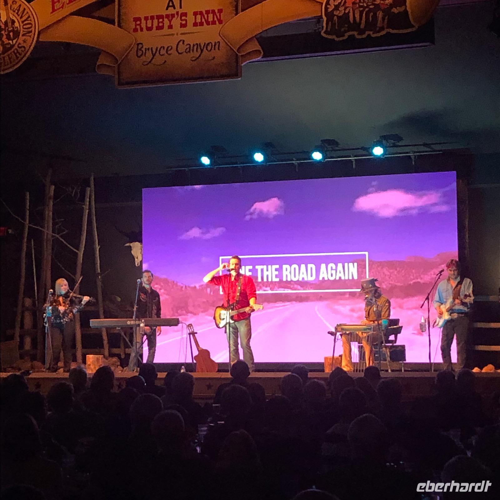 Da wir heute wieder eine sehr weite Strecke vor uns hatten, fuhren wir bereits um halb 8 los. Das Ziel unserer heutigen Fahrt soll der Bryce Canyon Nationalpark sein. Da wir nicht viel Zeit für das Mittagessen verlieren wollten, einigten wir uns an einem Supermarkt zu halten. So konnten wir uns für den Tag ausstatten und unterwegs etwas essen. Nach einem kurzen Zwischenstopp am Red Canyon erreichten wir kurz nach dem Mittag den Bryce Canyon Nationalpark. Auf der Strecke erlebten wir wieder einmal die verschiedensten Wetterkonditionen. Unsere Sorgen, dass wir am Bryce Canyon ähnlich schlechte Sicht wie am ersten Tag des Grand Canyons haben könnten, bestätigten sich glücklicherweise nicht. Mit Ankunft am Amphitheater des Bryce Canyon ergab sich uns ein wundervoller Weitblick in den Kessel. Die für den Bryce Canyon typischen Felsnadeln, welche teilweise noch einen kleinen Schneemantel hatten, zeigten sich in all ihren Farbfacetten. Einen weiteren Aussichtspunkt hatten wir am Sunset- und Sunrise-Point. In deutsche Sprache übersetzt würde man vom Sonnenuntergangs- und Sonnenaufgangspunkt sprechen. Von hier aus könnte man auch einen Spaziergang in den Canyon hinein unternehmen. Leider war dies aufgrund der Wetterverhältnisse nicht möglich, da viele Wege gesperrt waren. Dennoch konnten wir entlang der Kante einen Spaziergang machen und hatten somit verschiedene Blickwinkel auf einen anderen Teil des Bryce Canyons. Am Abend wartete eine einzigartige Wild-West-Show mit Live Country Musik auf uns. Wir erreichten in nur wenigen Gehminuten „Ebenezer´s Bar & Grill". Eine ehemalige Scheune, welche eine großartige Kulisse für diesen Abend bildete. Nach einem schmackhaften Abendessen wurde für eine gute Stunde Musik von einer örtlichen Country Band gespielt.