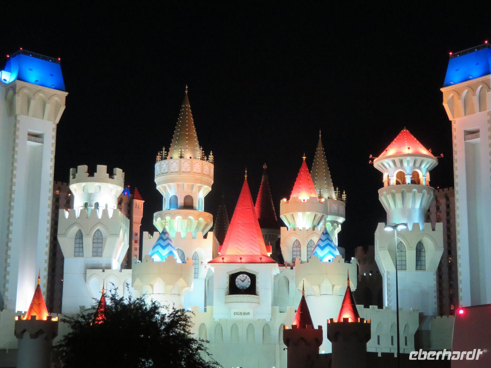 Unser nächster Tag begann erneut mit einem sehr schönen und reichhaltigen Frühstück. Nachdem unsere Reisebegleitung in Zusammenarbeit mit dem Busfahrer alle Koffer verstaut hatte und alle ihren Platz im Bus eingenommen hatten, führte uns der heutige Weg zunächst zur Geisterstadt Calico. Calico ist eine ehemalige Western- und Silberminenstadt. Noch heute stehen einige der Gebäude in ihrer Urform, also genau so wie sie im 19. Jahrhundert erbaut wurden. Hierzu gehören zum Beispiel die Schule sowie das Rathaus der Stadt. Aber auch die sehr authentisch nachgebildeten oder wieder aufgebauten Gebäude machten einen sehr guten Eindruck. So dass man sich wirklich die Zeit des Wilden Westens zurückversetzt fühlte. Man hatte auch die Möglichkeit sich beim Goldschöpfen zu versuchen oder mit einer Art Minenbahn zu fahren. Während unseres Aufenthaltes wurde auch ein kleines Szenenspiel vor dem Saloon aufgeführt. Im Saloon selbst hatte man die Möglichkeit selbst einmal in einem echten Westernsaloon ein Bier oder Softdrink zu sich nehmen. Selbstverständlich durfte auch das ein oder andere Andenken an Calico nicht fehlen. Viele sehr schön angelegte Souvenirshops luden zum Schauen und Verweilen ein. Im Anschluss führte uns der Weg in einen neuen Bundesstaat. Auf der Strecke verließen wir zunächst Kalifornien, welches wir am Ende der Reise wiedersehen werden, und fuhren in den Wüsten- und Spielerstaat Nevada. Unser Ziel des heutigen Tages war das Aquarius Hotel in Laughlin, NV. Hier bekamen wir einen ersten Eindruck von dem, was uns in Las Vegas erwarten wird. Natürlich dann in ganz anderen Dimensionen.