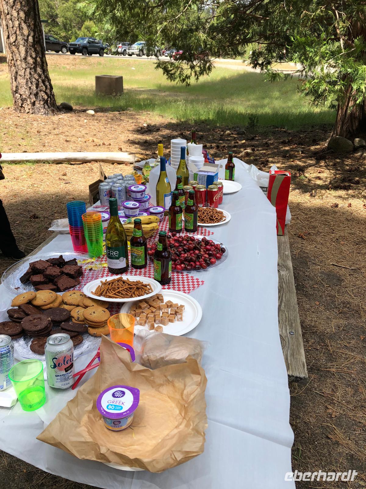 Der beliebteste Nationalpark der Amerikaner, der Yosemite Nationalpark ist das heutige Ziel unserer Reise. Wir setzen die Fahrt von Bakersfield in Richtung Norden fort und sehen so noch viele weitere landwirtschaftliche Produkte, welche in Hülle und Fülle auf vielen Feldern angebaut werden. Kurz bevor wir am Yosemite Nationalpark ankamen, hielten wir an einem großen Supermarkt. Hier besorgten die Reisebegleitung und die Reiseleiterin alles Notwendige für unser geplantes Picknick. Sandwiches, Obst, Nachtisch und diverse Getränke standen unter anderen auf der Einkaufsliste. Als wir den Parkeingang passierten, fuhren wir zunächst zum Pioneer Point. Wir hatten Glück und fanden ein paar freie Tische und Bänke für unser Picknick vor. Alle gemeinsam bereiteten wir ein kleines Buffet und verteilten die vorher bestellten Sandwiches. Diese waren super lecker. Auch die gesamte Auswahl an Speisen und Getränken sorgten für Freude unter den Gästen, da für jeden etwas dabei war. Nach dieser ausgiebigen Mittagspause starteten wir zu einem Spaziergang rund um den Pioneer Point. Wir sahen alte Pferdekutschen und niedliche Holzhäuser. Um weitere Eindrücke vom Yosemite NP zu erhalten fuhren wir weiter. In größerer Höhe am Tunnel View hatten wir die Möglichkeit sowohl den Half Dome als auch den El Capitan, die beiden für den Park markanten Berge zu betrachten. Auch ein erster der vielen Wasserfälle war für uns sichtbar. Natürlich durfte ein weiterer Stopp an den bekannten Wasserfällen des Yosemite Nationalparks nicht fehlen. Dank des regnerischen Wetters der letzten Wochen führten diese für den Monat Mai sehr viel Wasser, so dass ein imposantes Naturschauspiel von uns beobachtet und fotografiert werden konnte. Anschließend verließen wir den Nationalpark und fuhren zu unserem Hotel, welches zum einen in direkt Nähe zum Nationalpark und zum anderen in sehr schöner Umgebung lag.