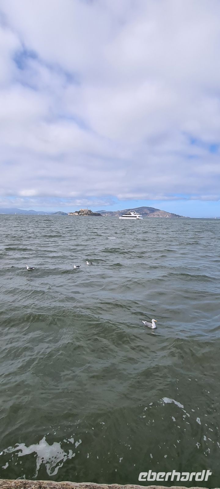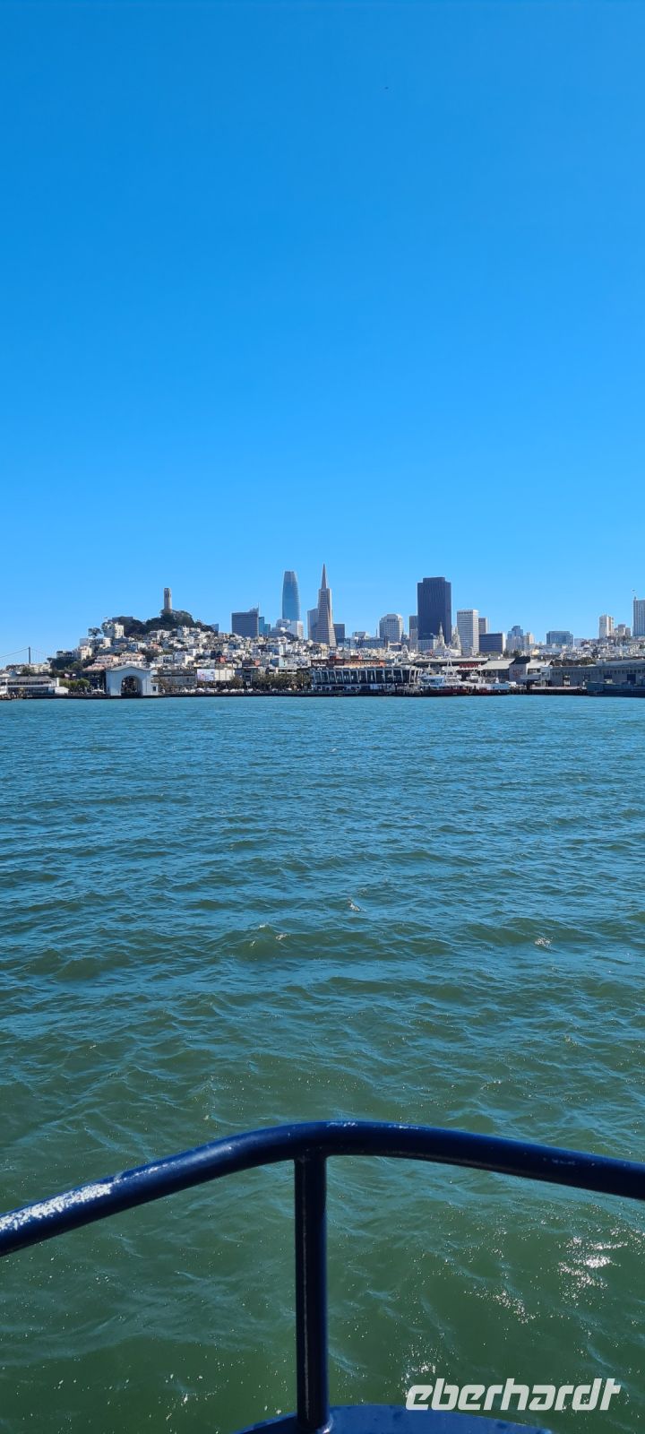 Alles läuft reibungslos und wir sichern uns die allerbesten Plätze an Deck. Freie Sicht auf „San Francisco“. Woohoo.