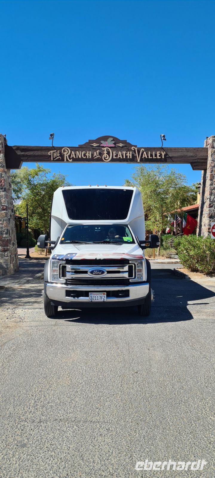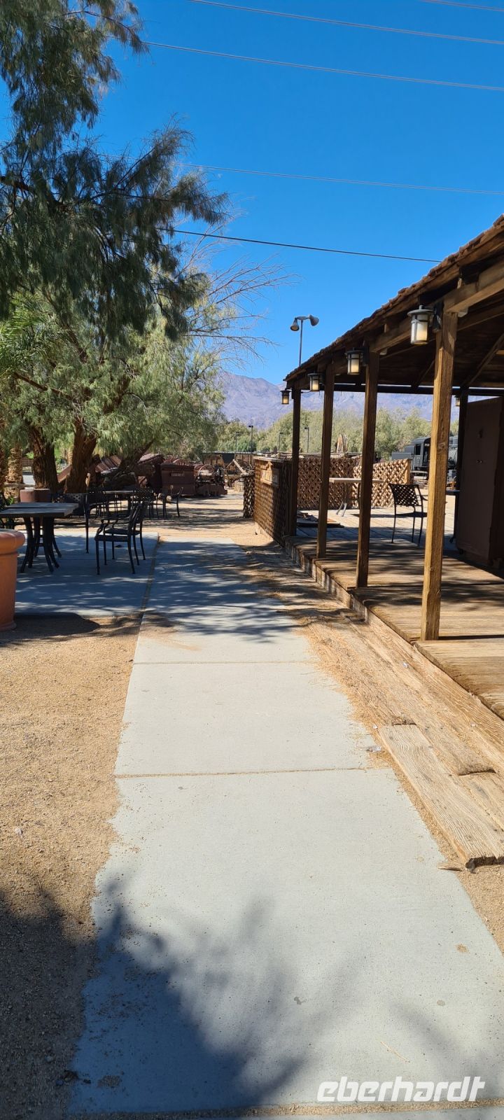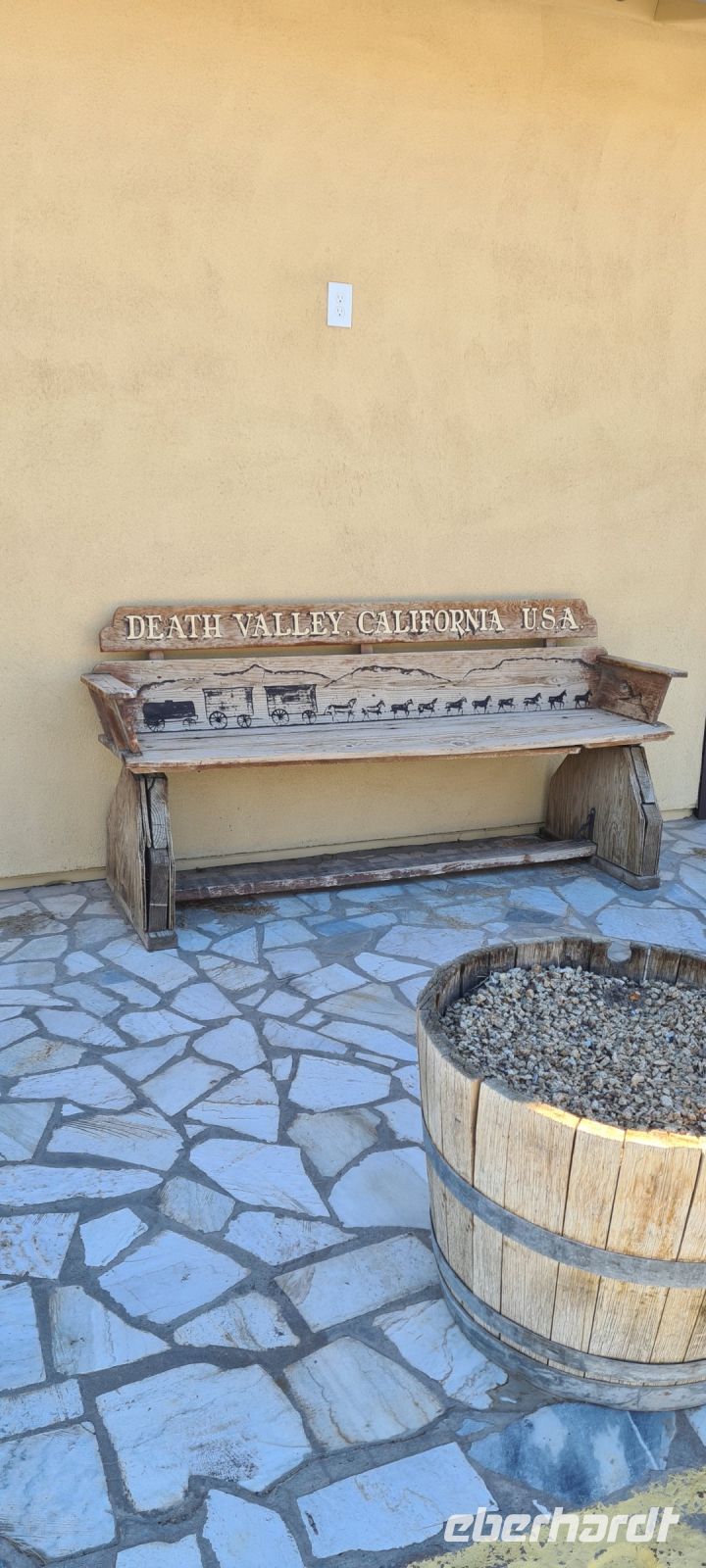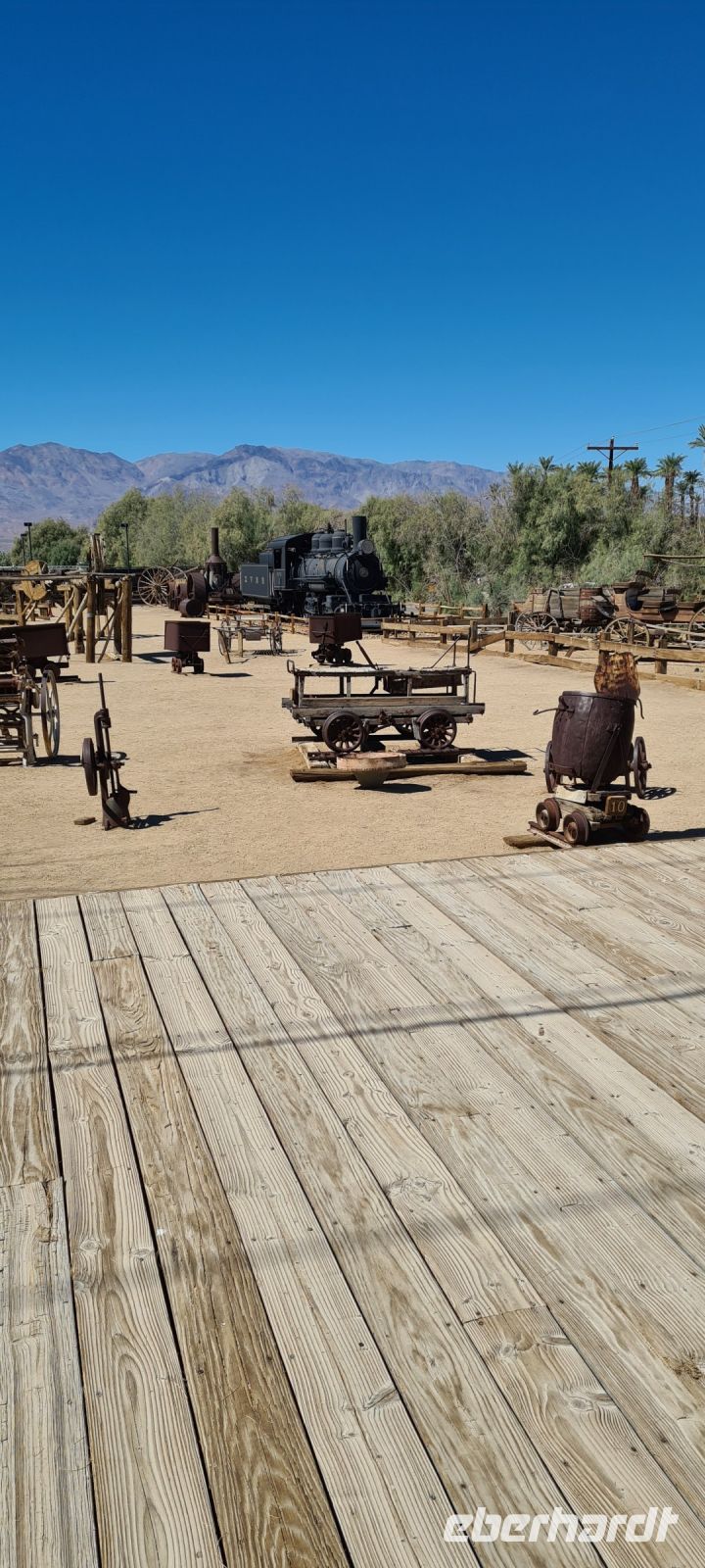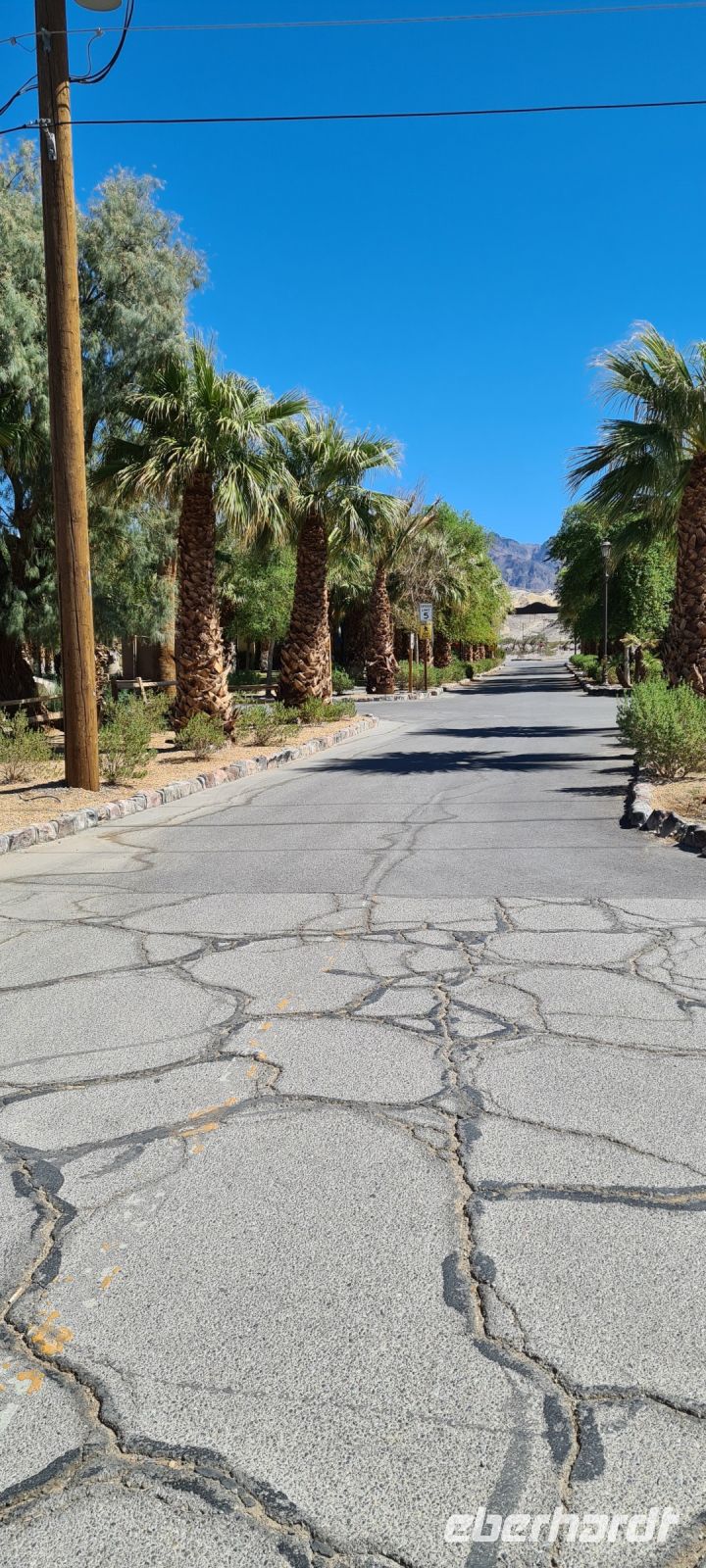 Auf geht’s zum „Furnace Creek“ eine ganz wunderbare Oase mitten in der Wüste. Ein toller Platz gesäumt mit Palmen und Picknick Möglichkeiten. Mit einem Hotel und einer Art Outdoor- Museum.