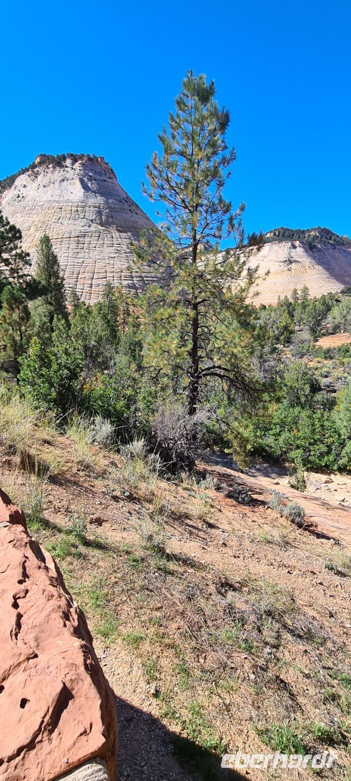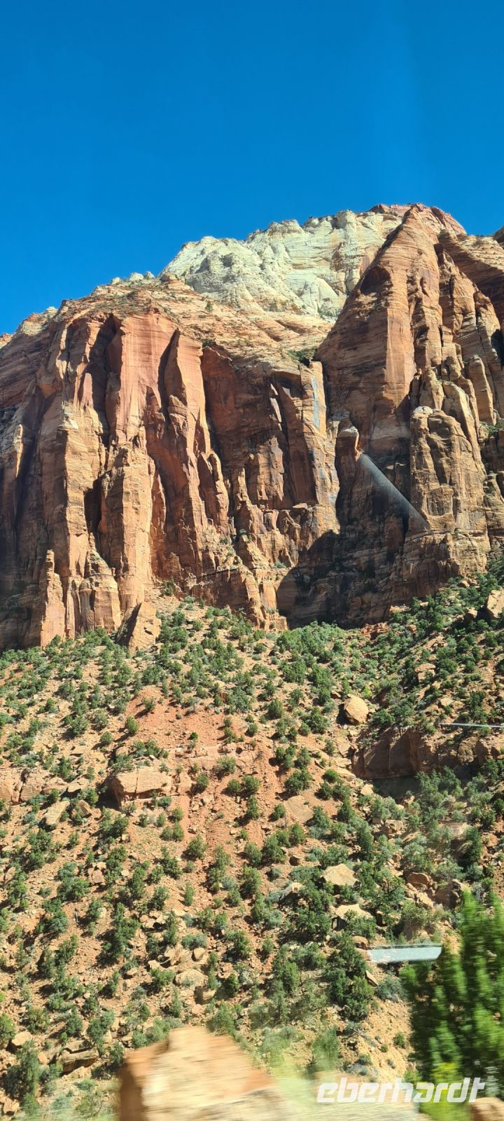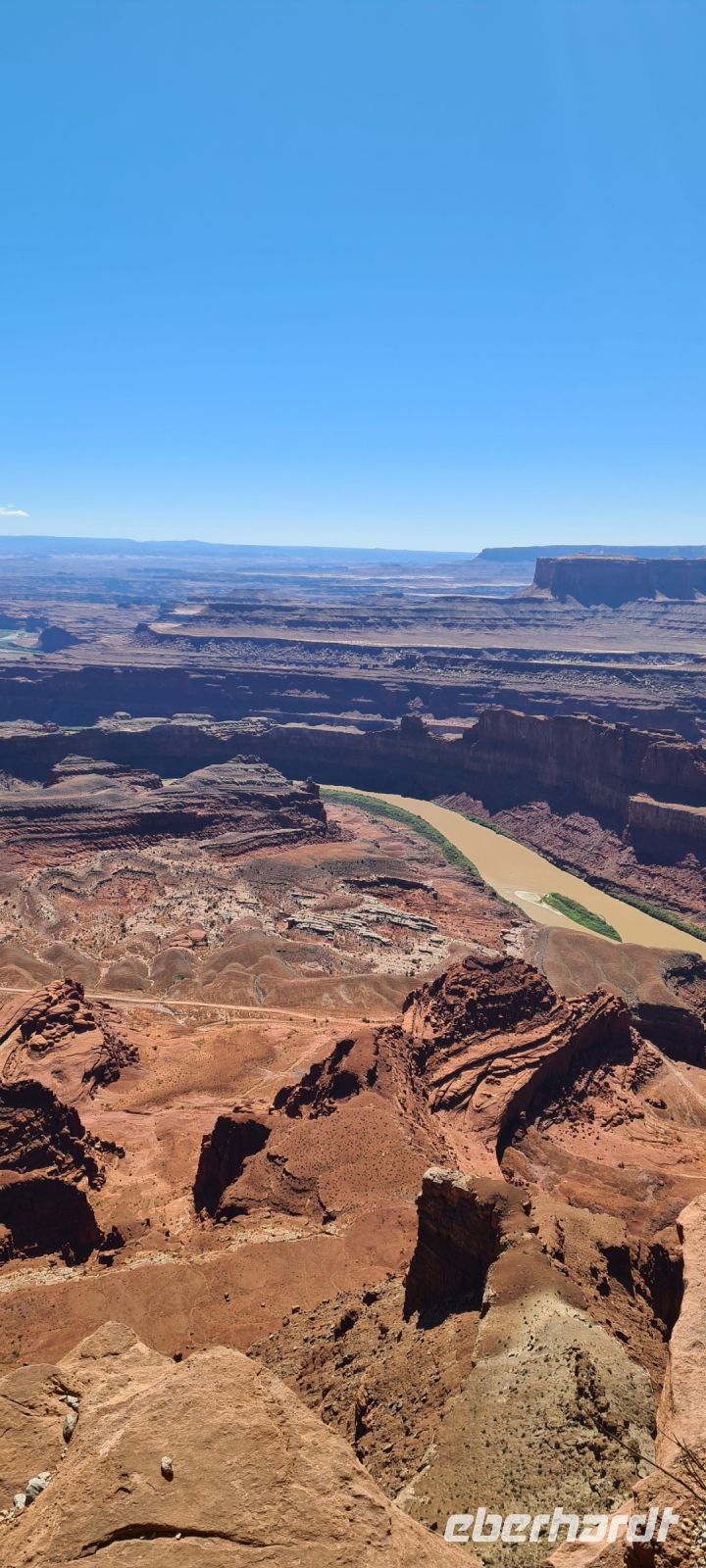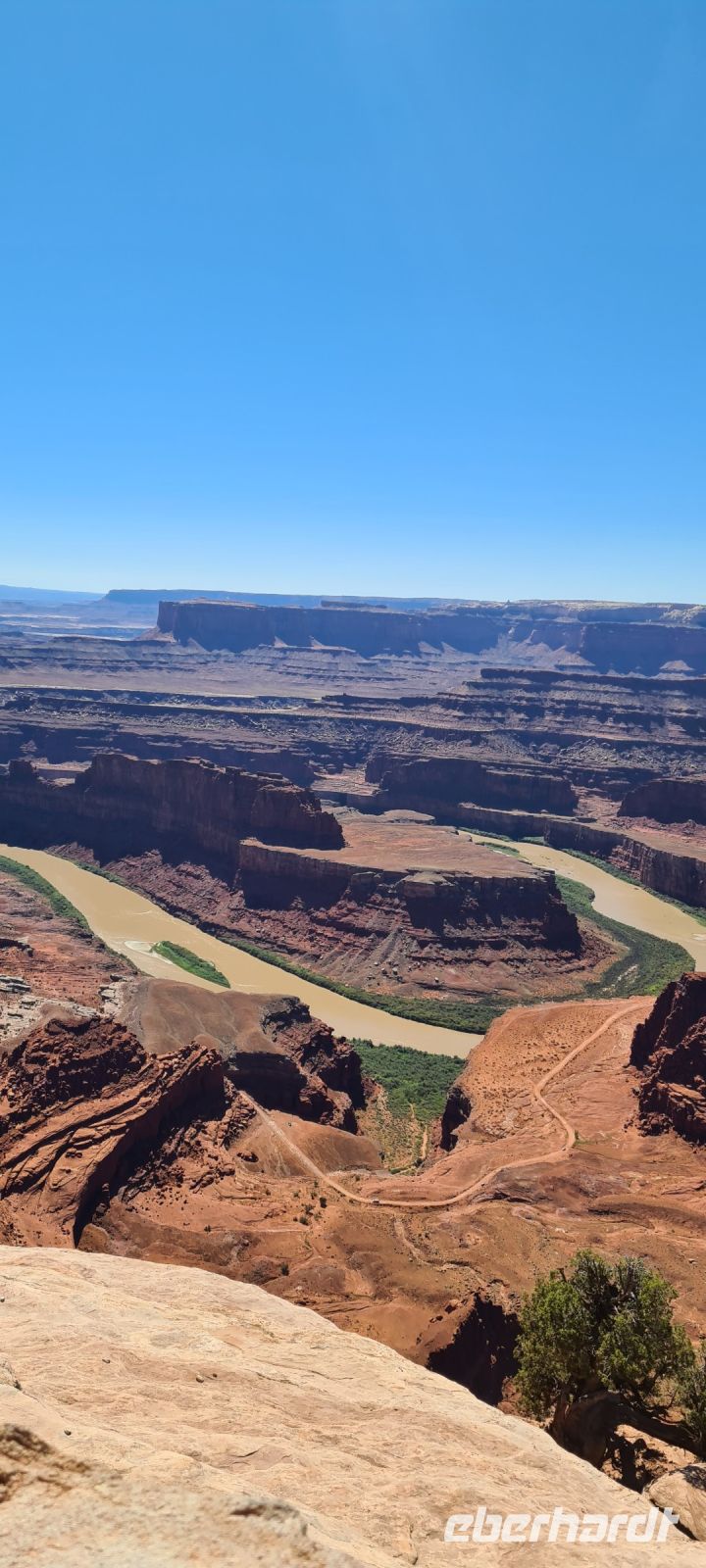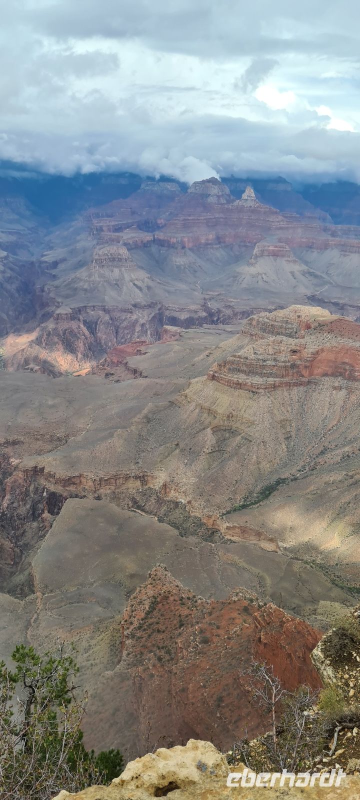 Immer wieder machen wir Pause, immer wieder filmen und fotografieren wir. Wir kriegen einfach nicht genug. Diese Schlucht die sich über rund 450 km zieht und dort wo wir spazieren gehen fast 1,4 km in die Tiefe stürzt. Wir erahnen den Colorado River.