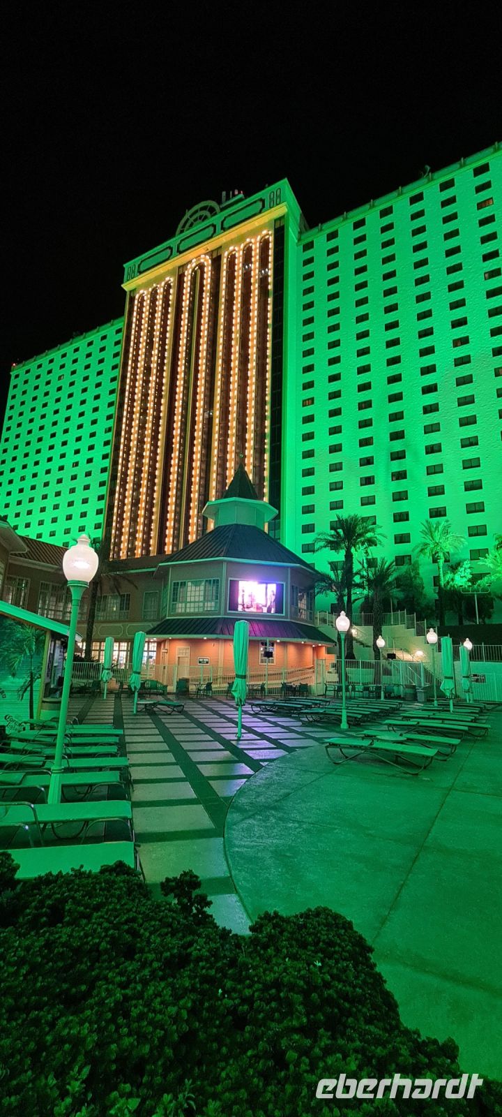 Nach dem Dinner geht’s zurück in unser sattgrün angestrahltes „Tropicana“.