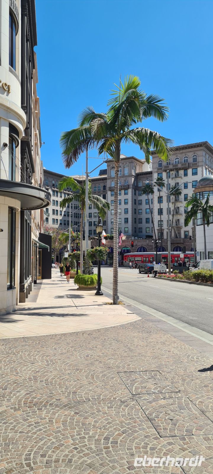 Es wird Zeit zum lunchen, also fahren wir weiter zum „Farmers Market“ wo es die halbe Welt zu essen gibt und so für jeden etwas dabei ist. Frisch gestärkt freuen wir uns auf „Beverly Hills“. Wer kennt sie nicht die Postleitzahl 90210! Wir schlendern entlang des „Rodeo Drive“. Bilder aus dem Film „Pretty Woman“ hängen uns im Kopf – zumindest in den Köpfen der weiblichen Gäste. Die Auslagen in den Schaufenstern sind schon ohne Preisschilder, die Fahrzeuge eine oder auch zwei Nummern grösser.