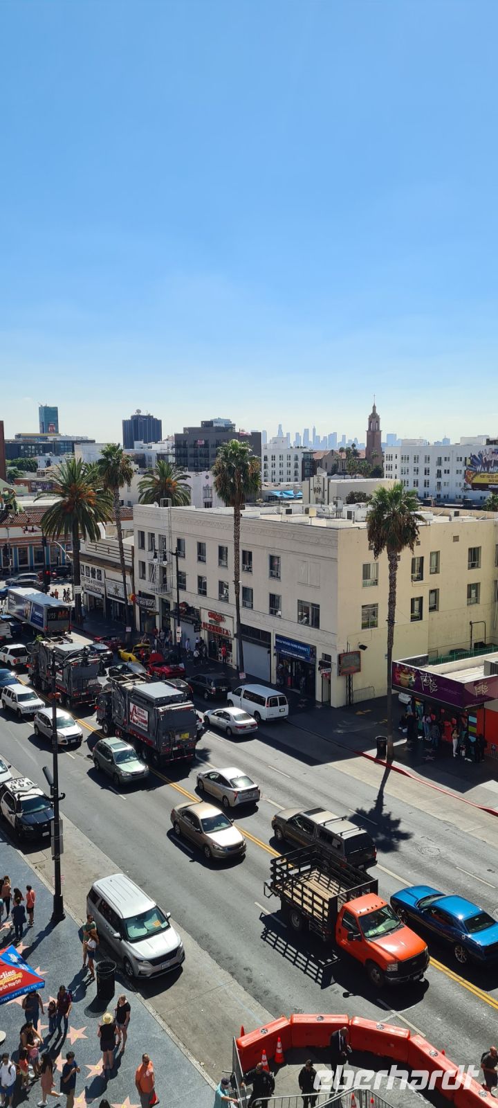 Hier wo die Oscar‘s, die Emmy‘s und Grammy‘s verliehen werden. Chris führt uns queer durchs Theater, bis wir zu einem großartigen Aussichtspunkt gelangen wo wir endlich das für uns so bekannt Hollywood Zeichen in den „Hollywood Hills“ entdecken. Für viele geht hier schon ein Raum in Erfüllung.