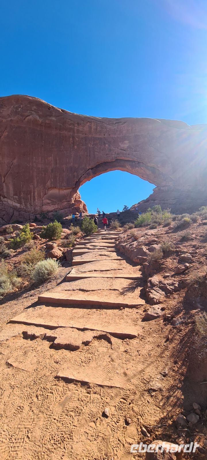 Der, der besonders durch seine mehr als 2000 Natursandsteinbögen bekannt ist. An einem so schönen und sonnigen Tag wie heute ist es kaum vorstellbar, dass hier Naturkräfte seit mehr als 100 Millionen Jahre durch Wasser, Eis und extreme Temperaturen dafür gesorgt haben, dass es heute genauso aussieht. Aber die Natur steht nicht still. Hin und wieder stürzt irgendwo ein Bogen ein. Irgendwo formt sich etwas neu. Alles ist Veränderung.