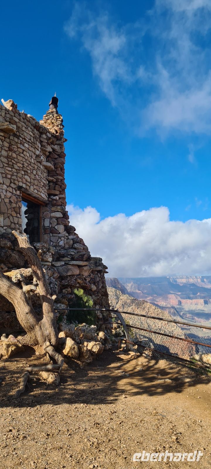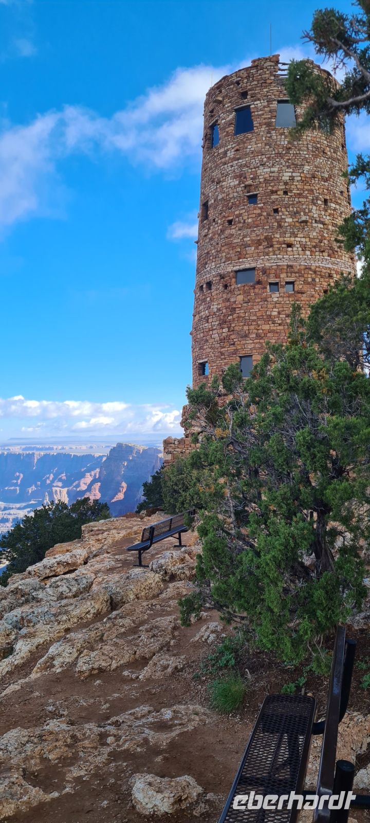 Als allererstes heute früh checken wir den Himmel. Ein Blick nach oben und dann der Blick zu Chris. Aber er schüttelt schon den Kopf. Also gut. Dann fliegen wir nicht. Aber dafür geht’s zum östlichen Teil des Southrims . Dort wo der „Indian Watchtower“ steht.