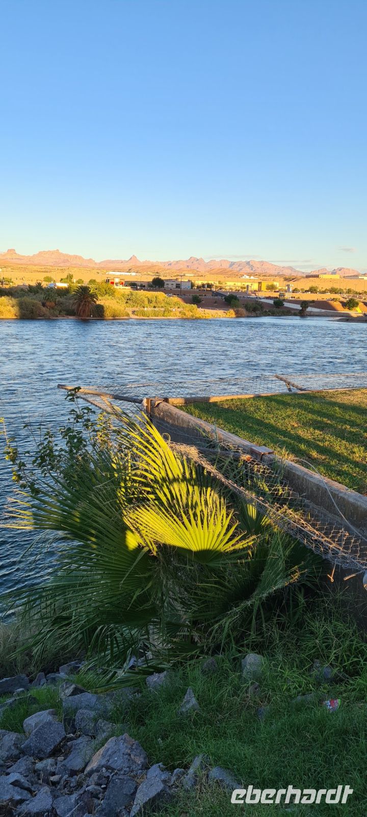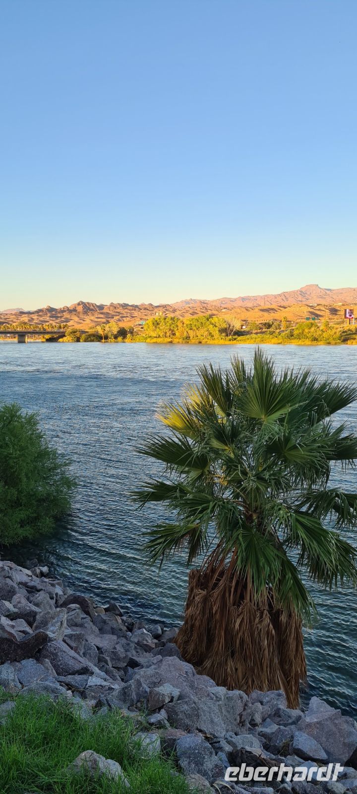 Zu unserem Abendessen im Hotel Riverside fahren wir ein Stück die Straße runter. Der Colorado River glitzert. Wir können uns kaum losreisen.