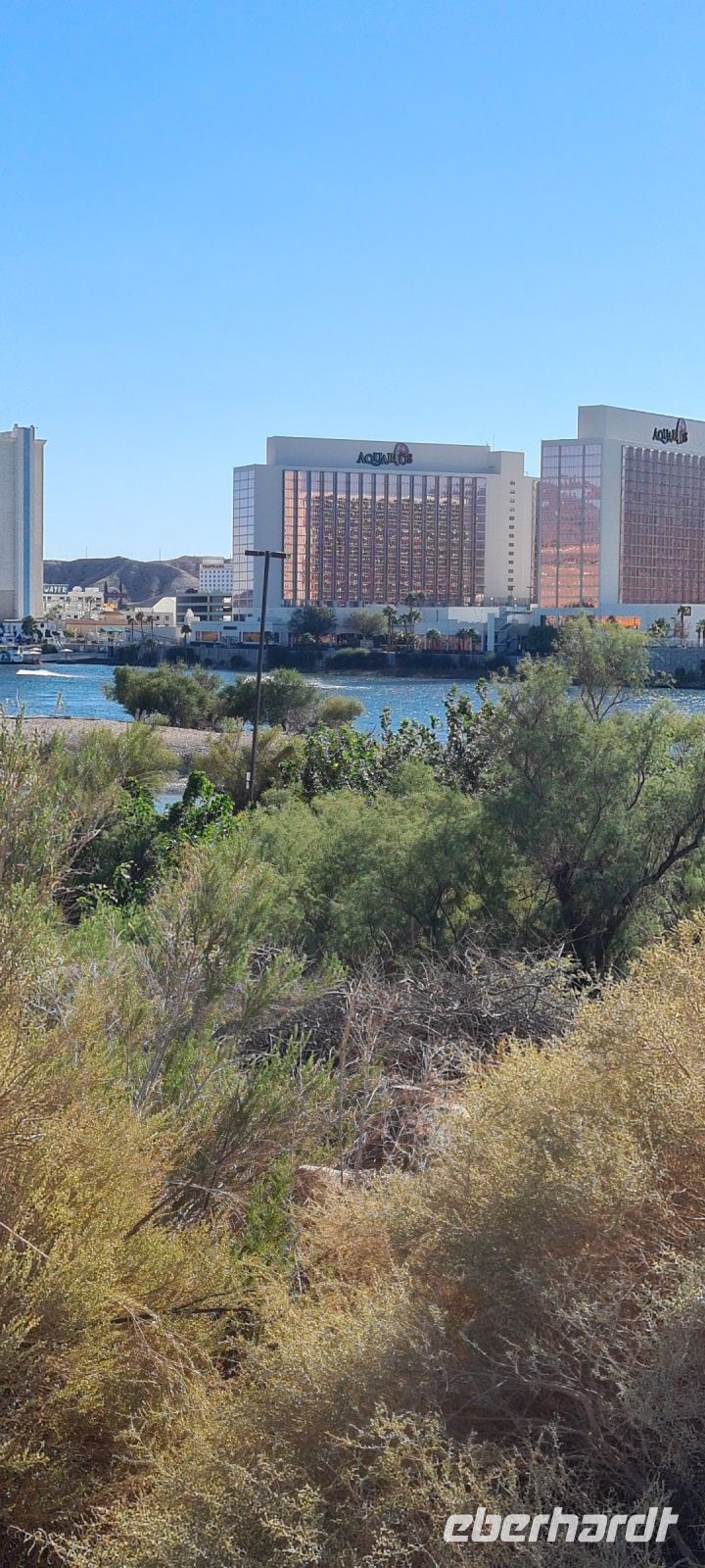 Aber das ist noch nicht alles. Wir kommen nach Laughlin - Laughlin die Spielerstadt am Colorado River, nahe dem Dreiländereck Californien – Nevada - Arizona und nur 152 km südlich von Las Vegas. Obwohl nur knapp 8000 Einwohner, besitzt dieses Städtchen nach Las Vegas und Reno die meisten Casinos in Nevada. Beachtlich!