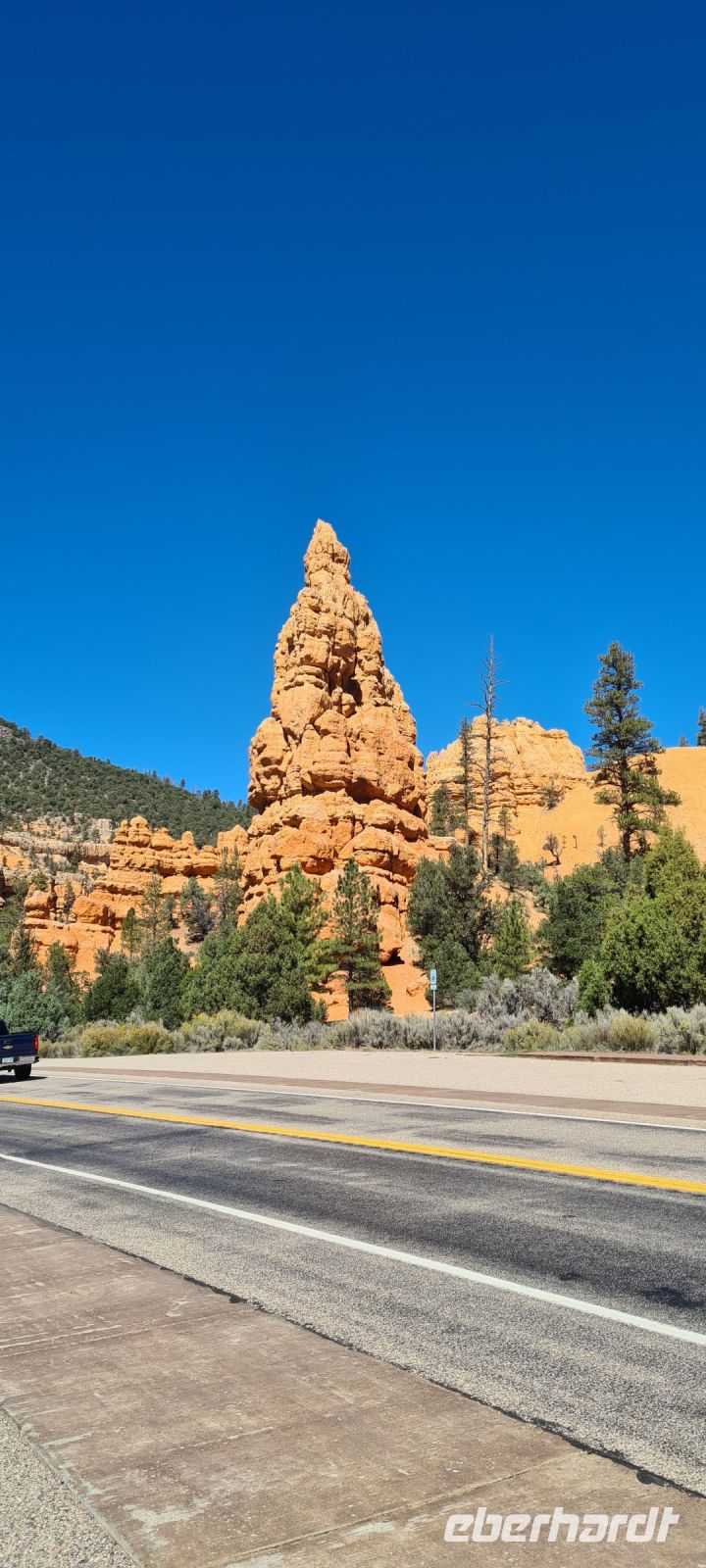 Wir tollen entlang der Straße und da kommt auch noch ein Riesentruck….was für ein Foto!