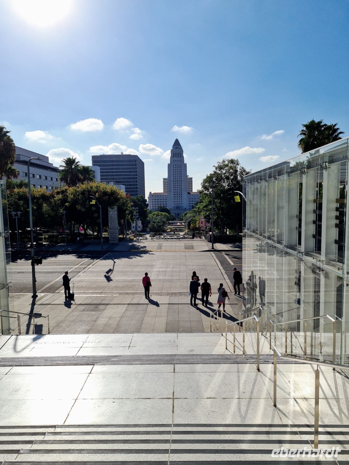 Wir spazieren weiter zur Walt Disney Hall, welche das „Philharmonic Orchestra“ beherbergt. Und natürlich stoppen wir am Rathaus von L.A.