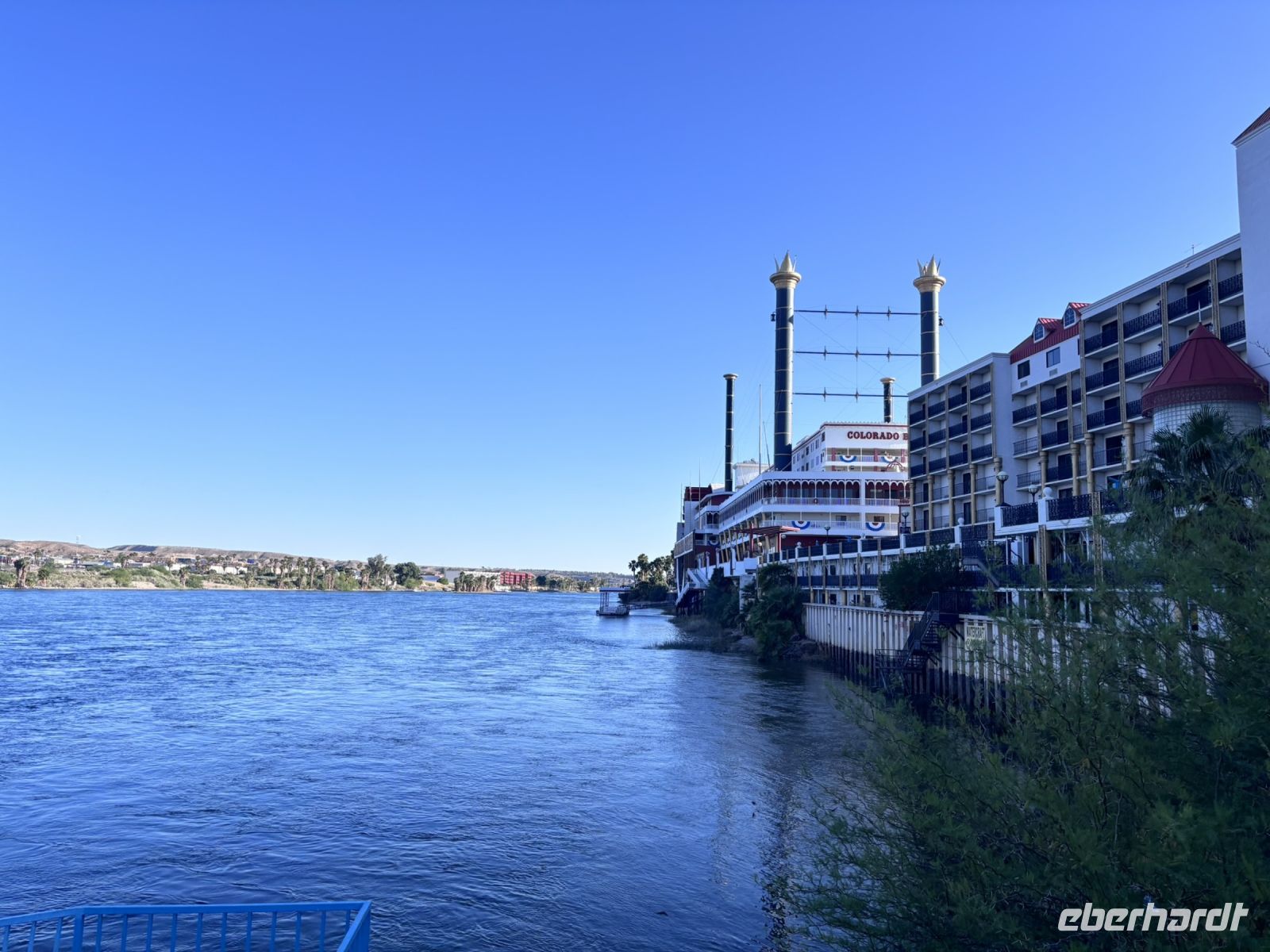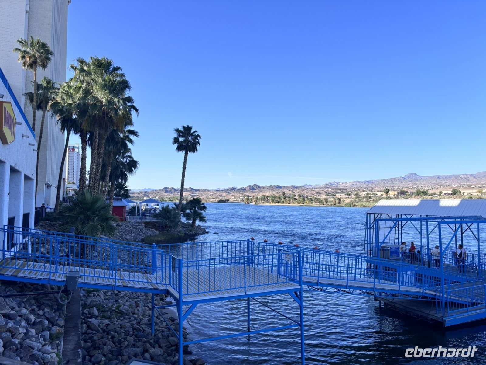 Am späten Nachmittag kamen wir in Laughlin an, einem gemütlichen Städtchen am Colorado River, das besonders für seine Casinos bekannt ist. Nach dem Check-in im Hotel hatten wir etwas Zeit, uns frisch zu machen, bevor wir zu einem gemeinsamen Spaziergang auf dem Riverwalk aufbrachen – bei warmen 32 Grad mit einer hübschen Aussicht auf den Fluss und Palmen.