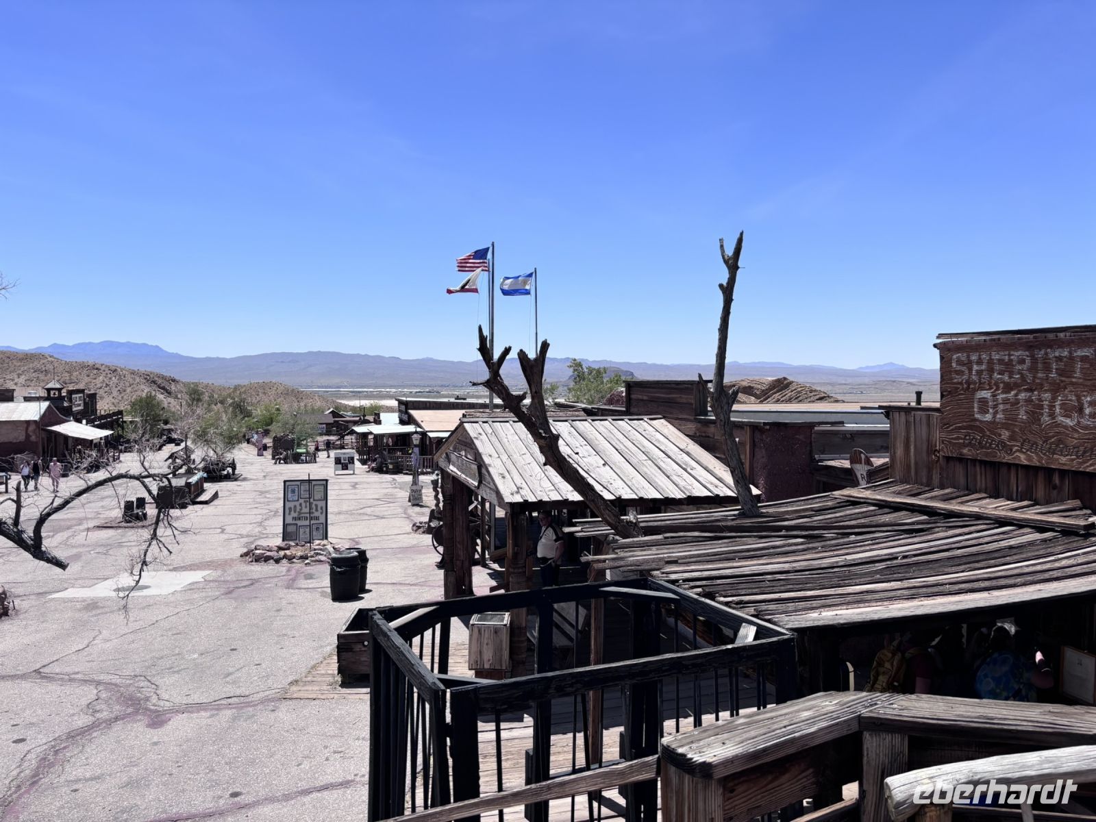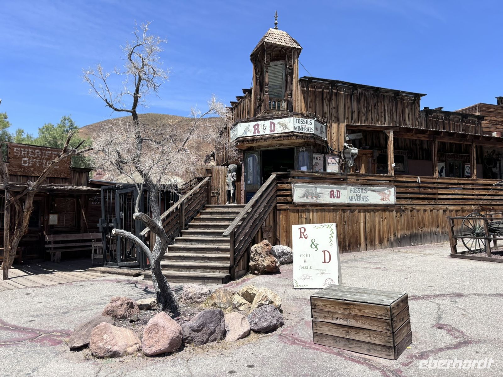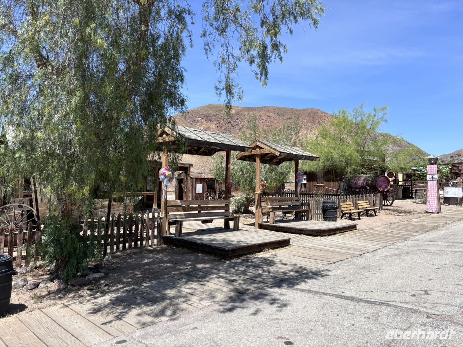 Gegen Mittag erreichten wir Calico. Die Stadt bot einen interessanten Einblick in das Amerika des späten 19. Jahrhunderts mit ihren originalgetreu restaurierten Gebäuden. Mit dem kleinen Zug fuhren wir durch die Stadt führte und erlebten ein bisschen Cowboyflair.