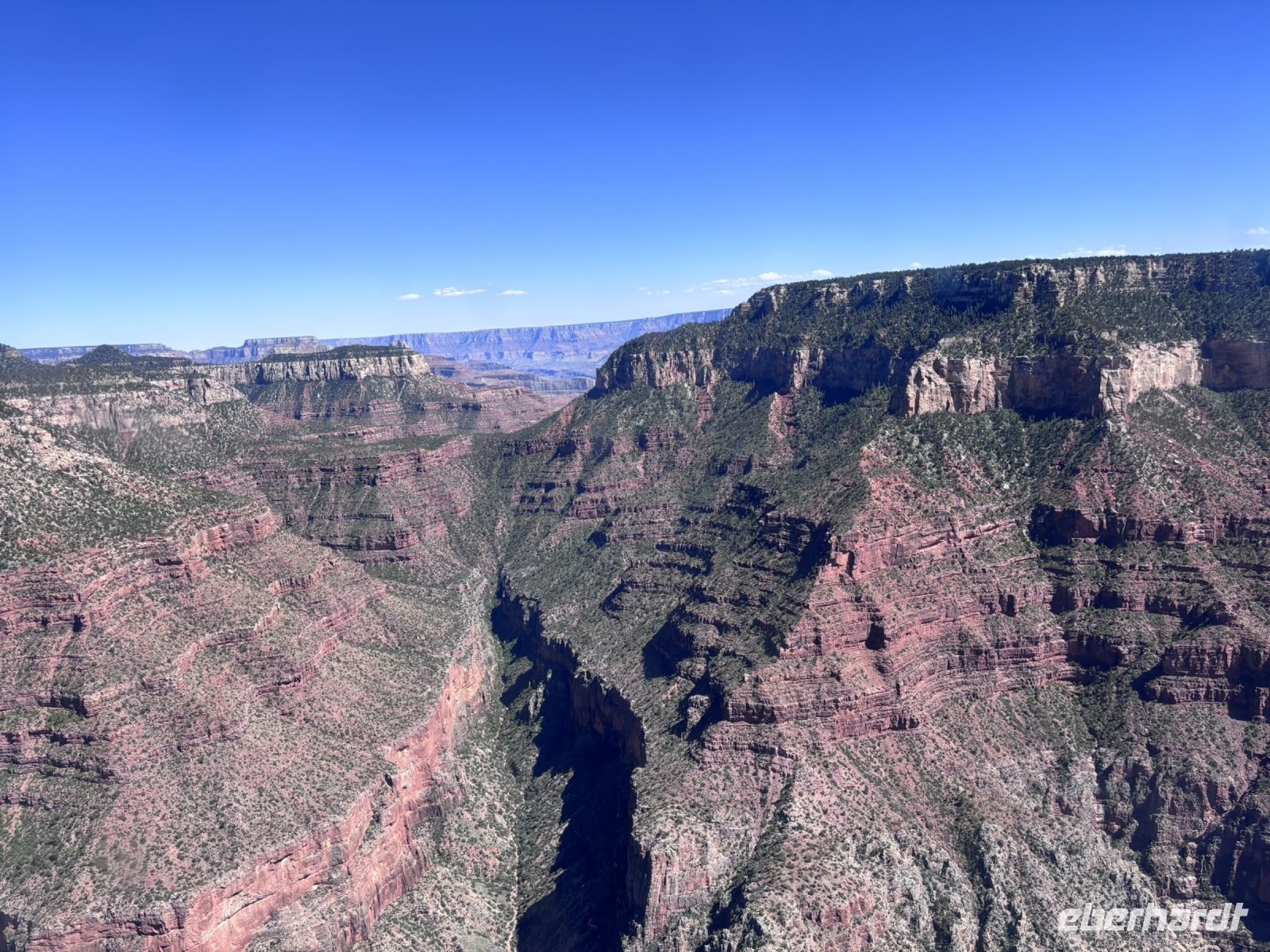 Einen Teil der Reisegruppe lieferten wir an der Angel Lodge ab, einem der bekanntesten Aussichtspunkte am Grand Canyon. Mit elf anderen Gästen fuhren wir weiter zum lokalen Flugplatz für den besonderen Helikopterrundflug über den Grand Canyon. Es waren spektakuläre Aussichten auf die Felsformationen und die weitläufige Wildnis des Canyons, die aus der Luft noch beeindruckender erschienen.