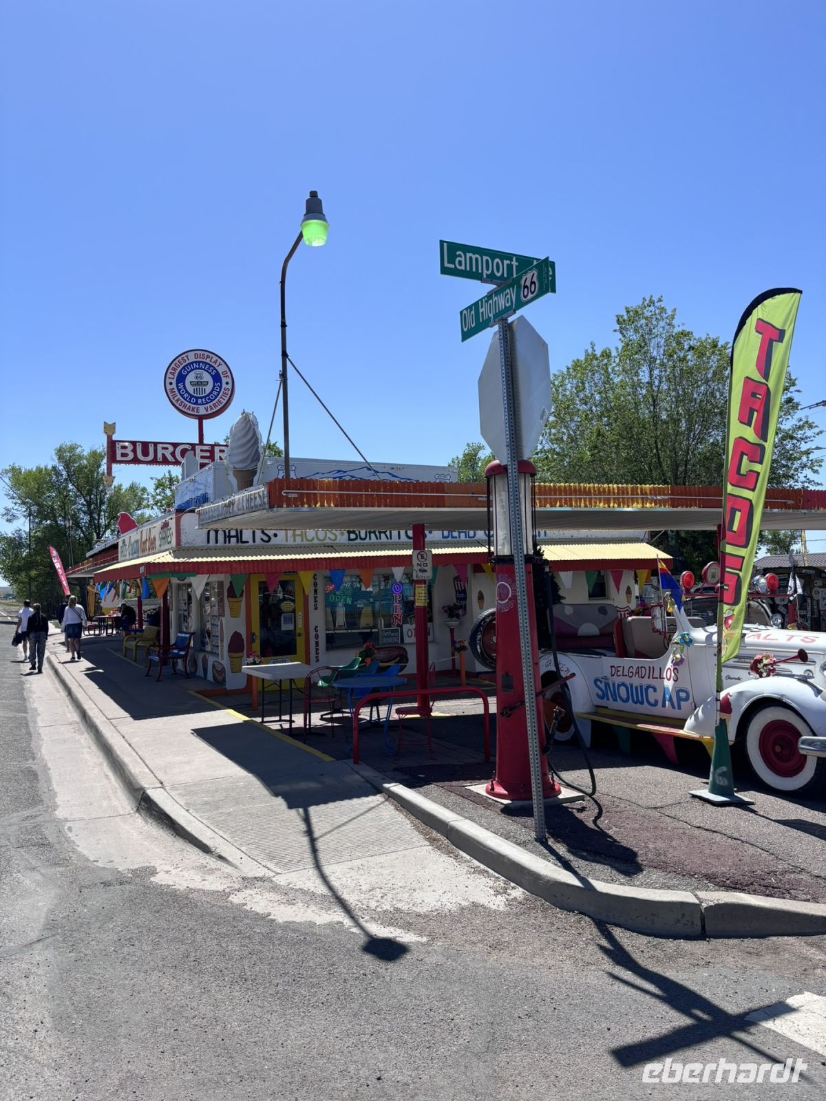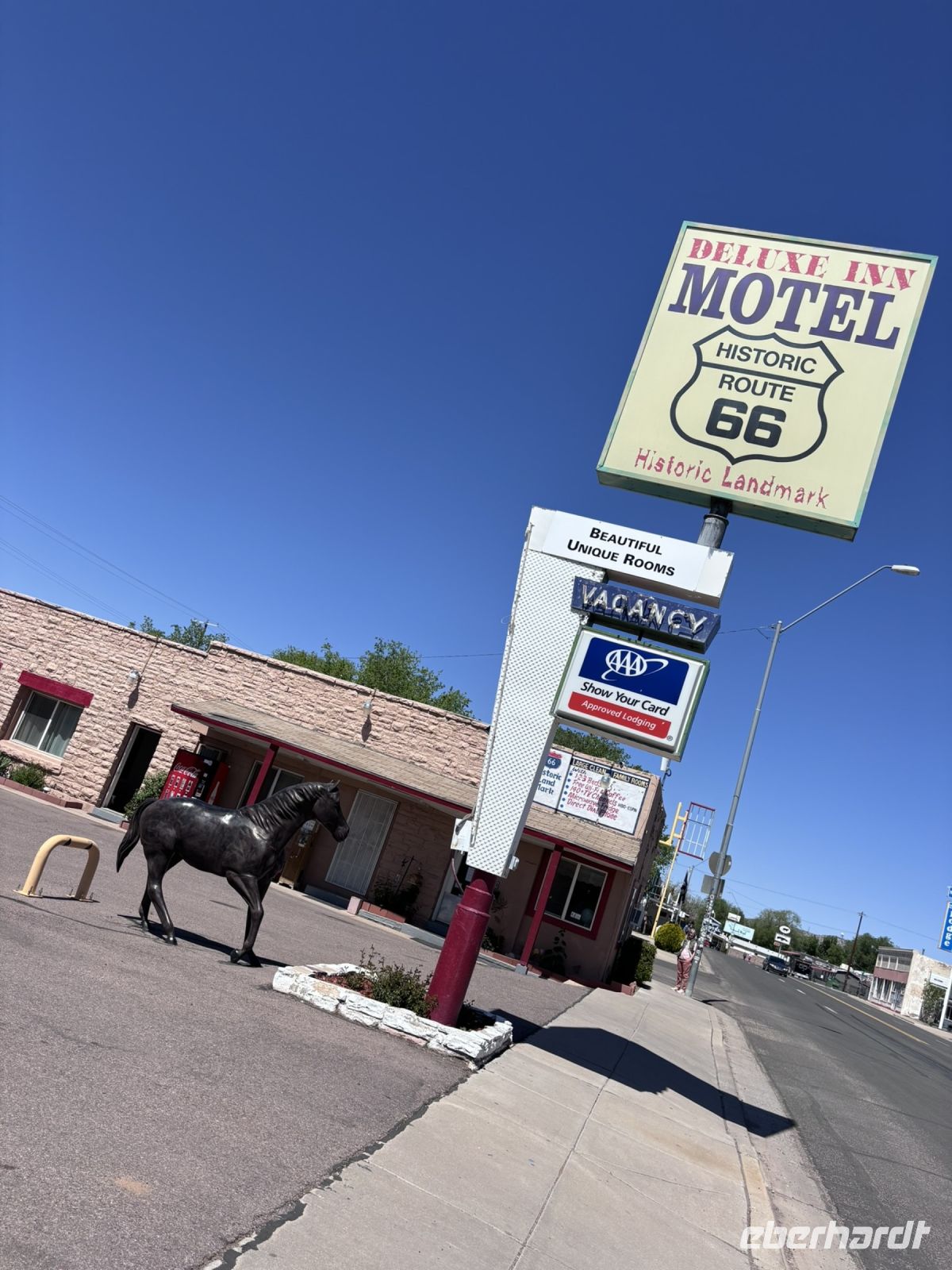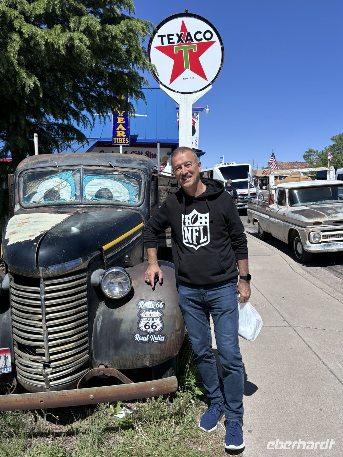 Unser erster Halt war in Seligman, eine charmante Kleinstadt an der berühmten Route 66, oft auch als „Mother of all Routes“ bezeichnet. Hier legten wir einen Fotostopp ein, um die nostalgische Atmosphäre des Ortes festzuhalten. Wir bekamen einen kleinen Einblick in die amerikanischen Roadtrips mit Retro-Diners, originellen Geschäften und klassischen Motels.