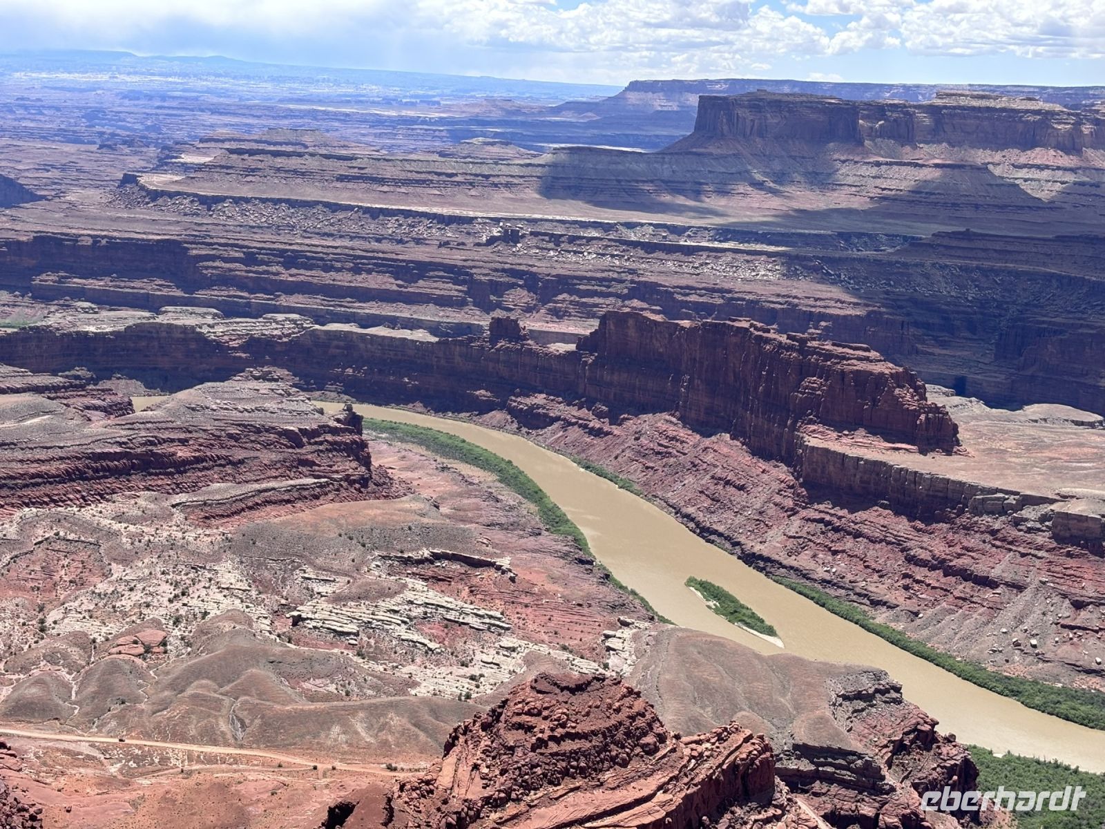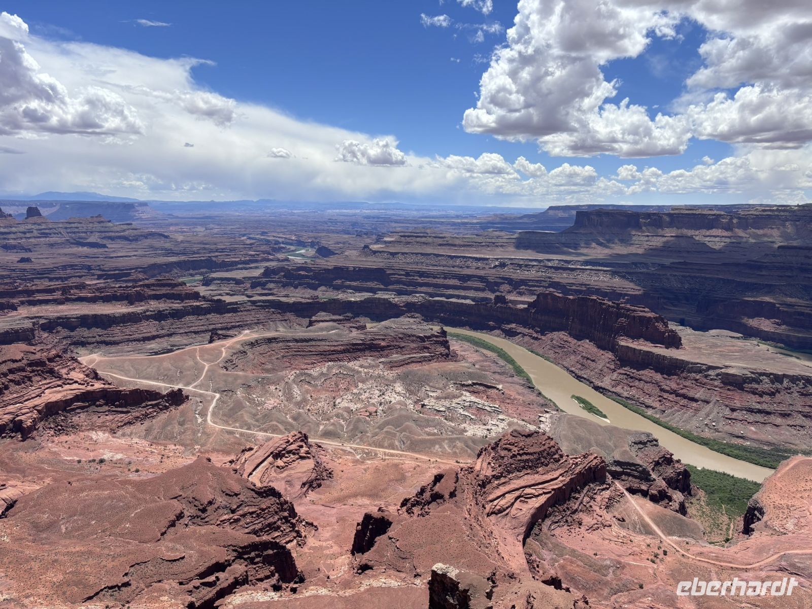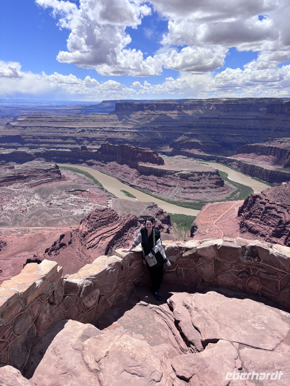 Nach dem Mittagessen setzten wir unsere Tour fort und fuhren zum Dead Horse Point. Der Ausblick von dort war sensationell. Der Colorado River schlängelte sich durch die rote Felsenlandschaft, und die Größe und Weite des Canyons war beeindruckend. Wir verbrachten eine Weile damit, die Aussicht zu genießen und viele Fotos zu machen.