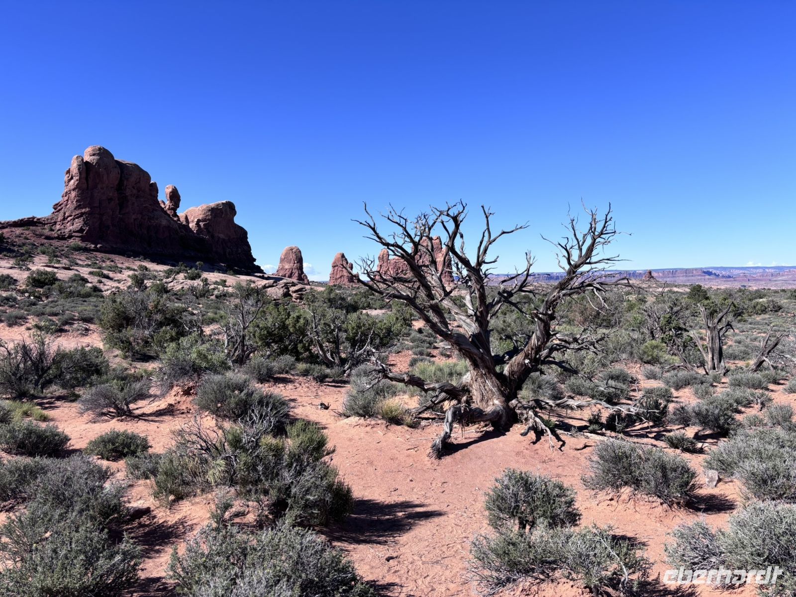 Unser erster Halt im Park war ein Fotostopp bei den bekannten Balanced Rock und den Courthouse Towers. Nach einer kurzen Pause fuhren wir weiter zum Delicate Arch Viewpoint, wo wir erneut anhielten.