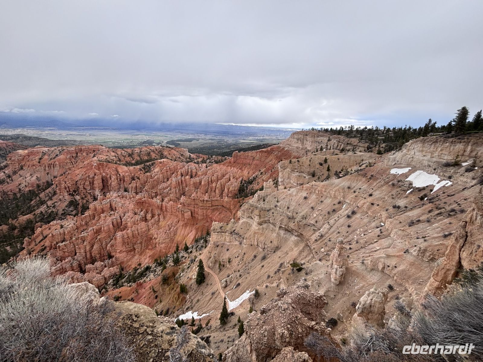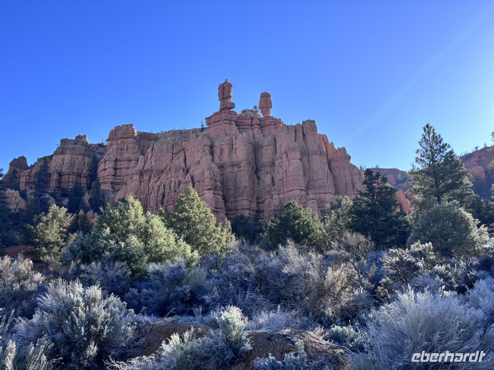 Heute war ein Tag voller faszinierender Landschaften und unerwarteter Wetterwechsel. Früh am Morgen machten wir uns auf den Weg durch den Dixie National Forest, wo die Temperaturen etwas niedriger waren als bisher gewohnt. Je weiter wir fuhren, desto kälter wurden die Temperaturen.