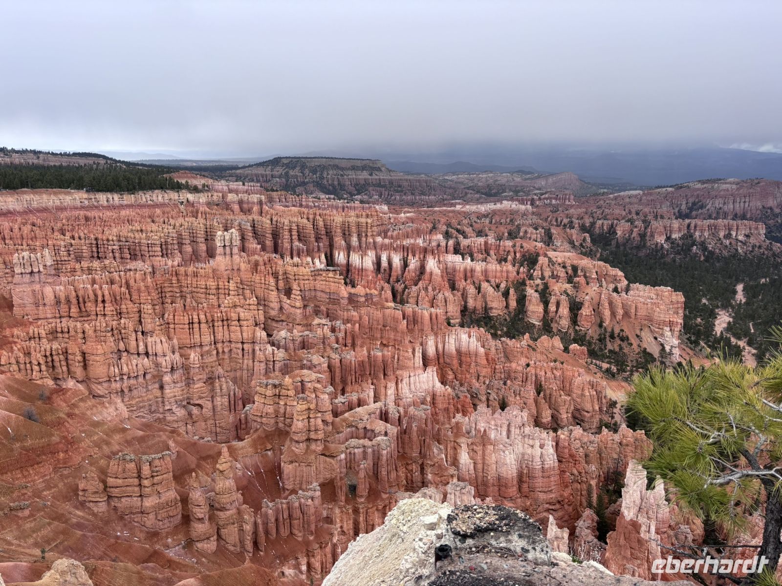 Am nächsten Fotostopp konnten diejenigen die Lust hatten eine kleine Wanderung zum nächsten Aussichtspunkt unternehmen. Der Weg führte uns durch die schönen Felsformationen und bot immer wieder neue Ausblicke. Langsam kam die Sonne raus und die Farben des Bryce änderten sich erneut.