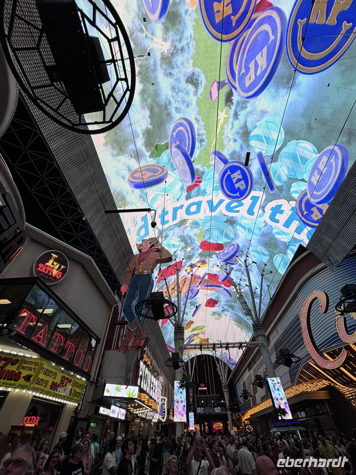 Nach dem Abendessen begann unsere Stadtrundfahrt. Unser erster Halt war das berühmte Golden Nugget, gefolgt von der beeindruckenden Lichtershow in der Fremont Street. Es war ein Spektakel aus Farben und Musik, das die Straße in eine riesige Freiluft-Disco verwandelte. Danach fuhren wir zum Treasure Island Hotel. Ein Spaziergang durch das Venetian Resort folgte, wo wir die kunstvoll nachgebaute venezianische Architektur und die Kanäle bestaunten. Der krönende Abschluss war der Besuch der Bellagio Fontänen. Die Wasser- und Lichtshow war hübsch. Zum Abschluss gab es noch ein paar Selfies vor dem berühmten Las Vegas Schild und dann ging es an die einarmigen Banditen und Roulettetische im Hotelcasino.