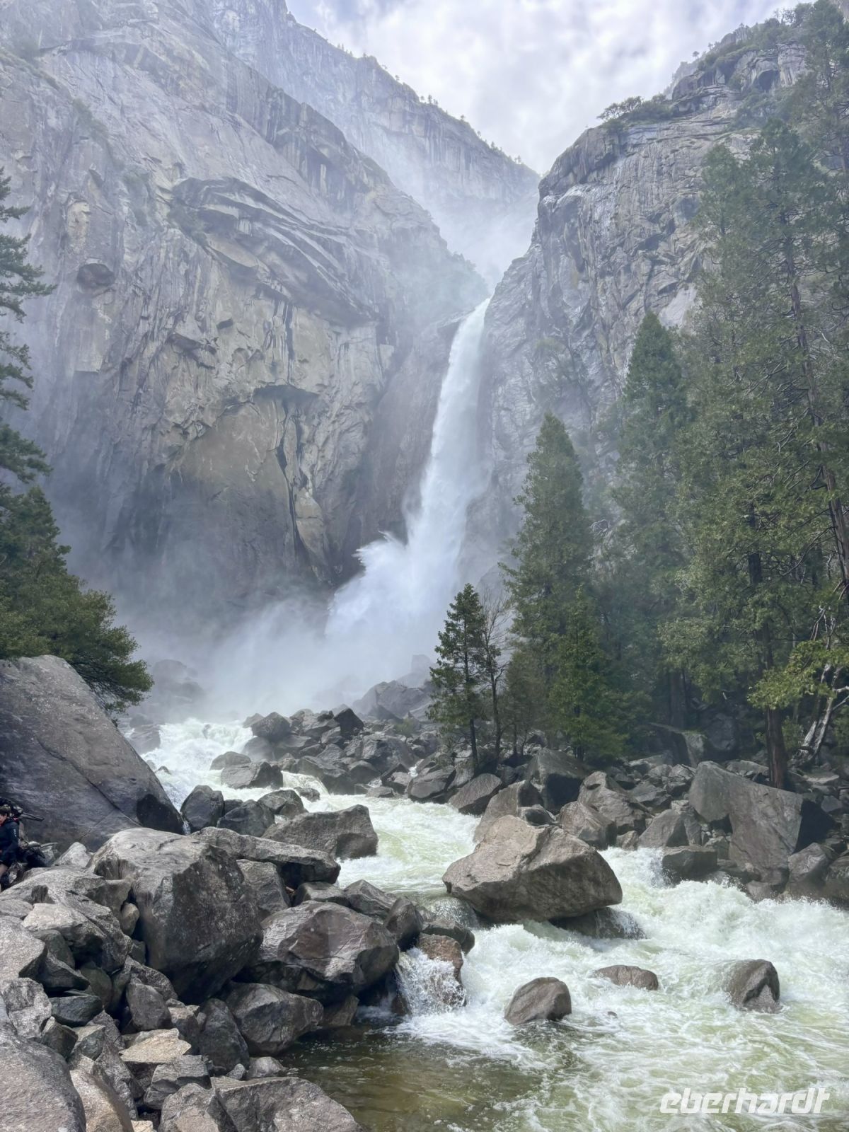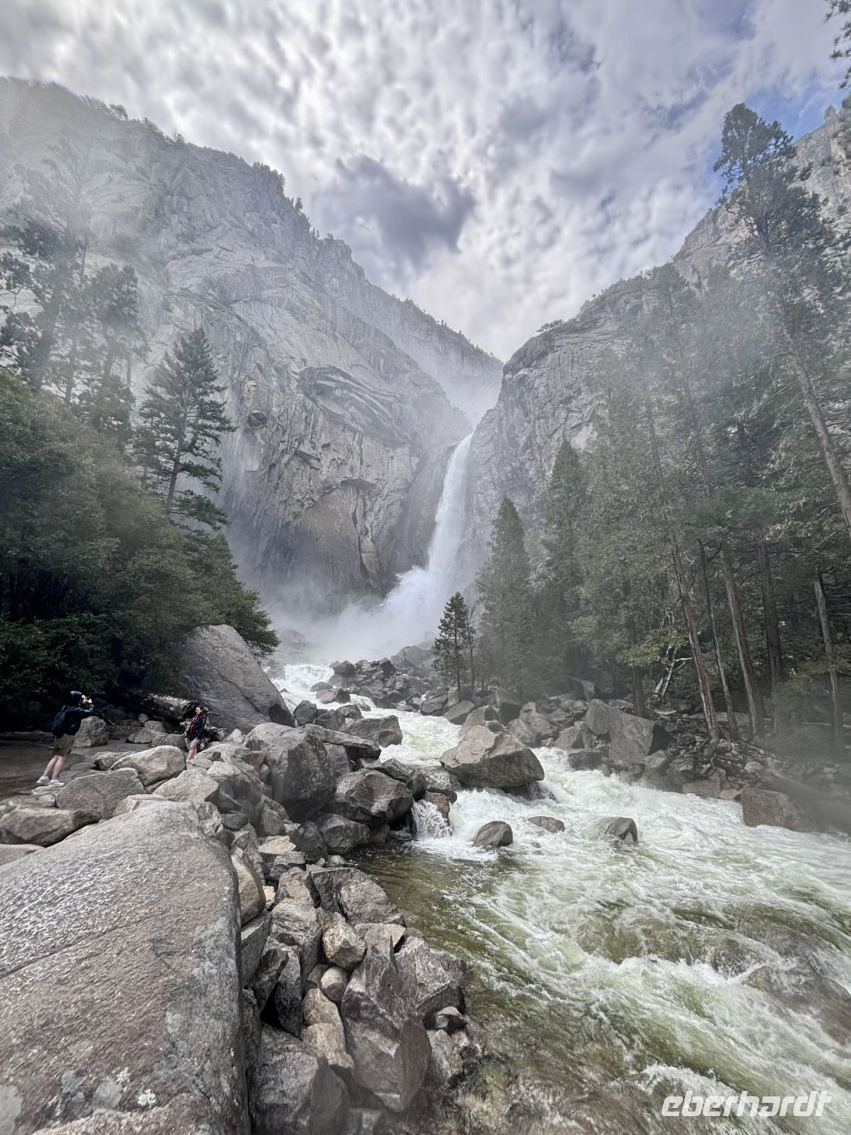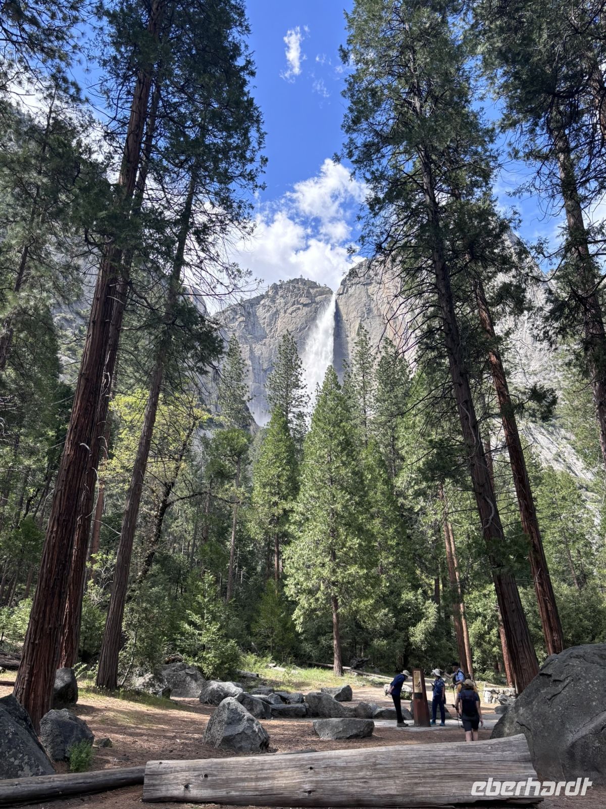 Anschließend unternahmen wir einen Spaziergang zu den berühmten Yosemite Falls. Der Weg dorthin bot immer wieder beeindruckende Ausblicke auf die Wasserfälle und die umliegenden Berge. Die Yosemite Falls selbst waren atemberaubend und wir verbrachten eine Weile damit, die kraftvollen Wassermassen zu bewundern.
