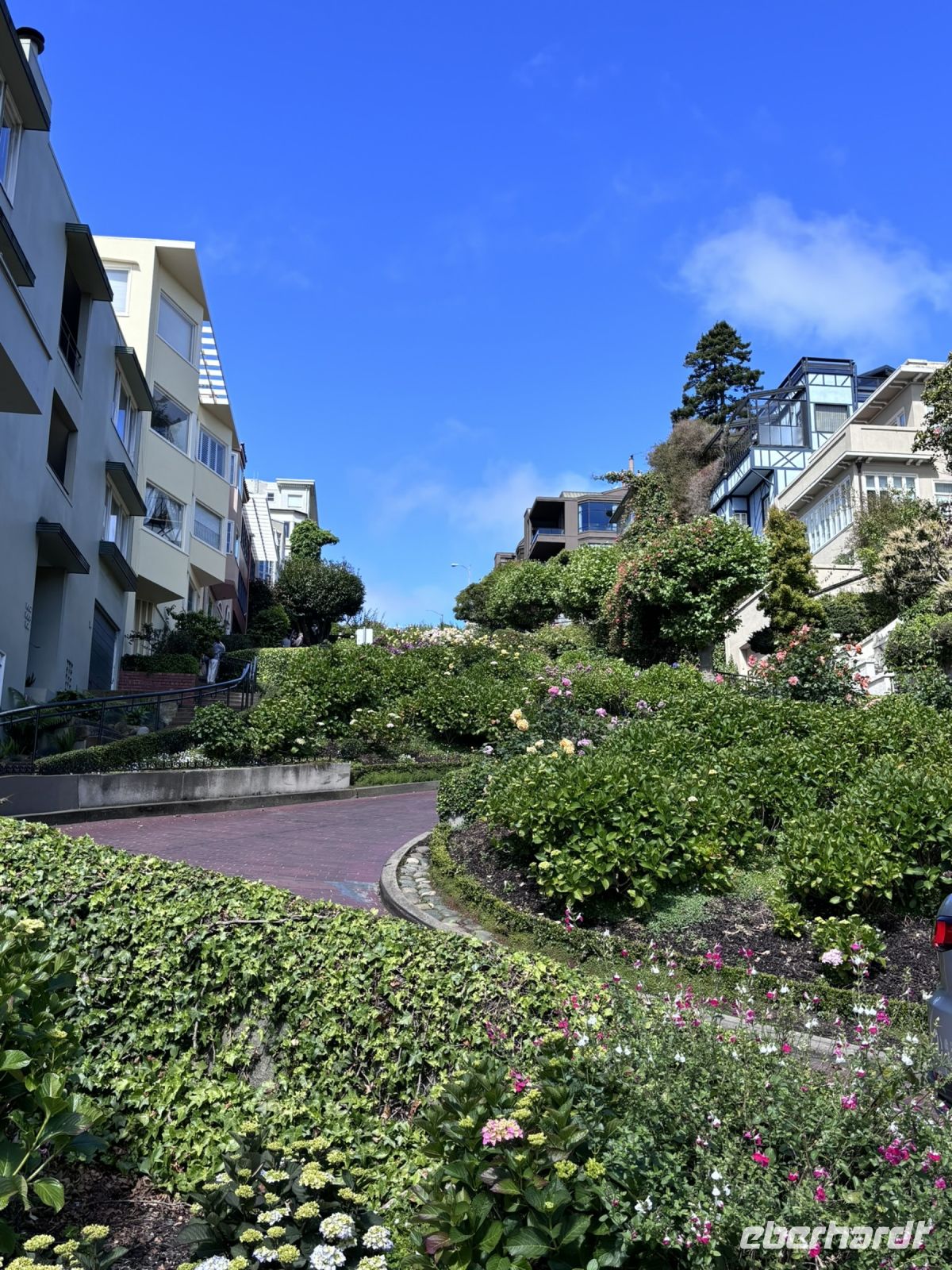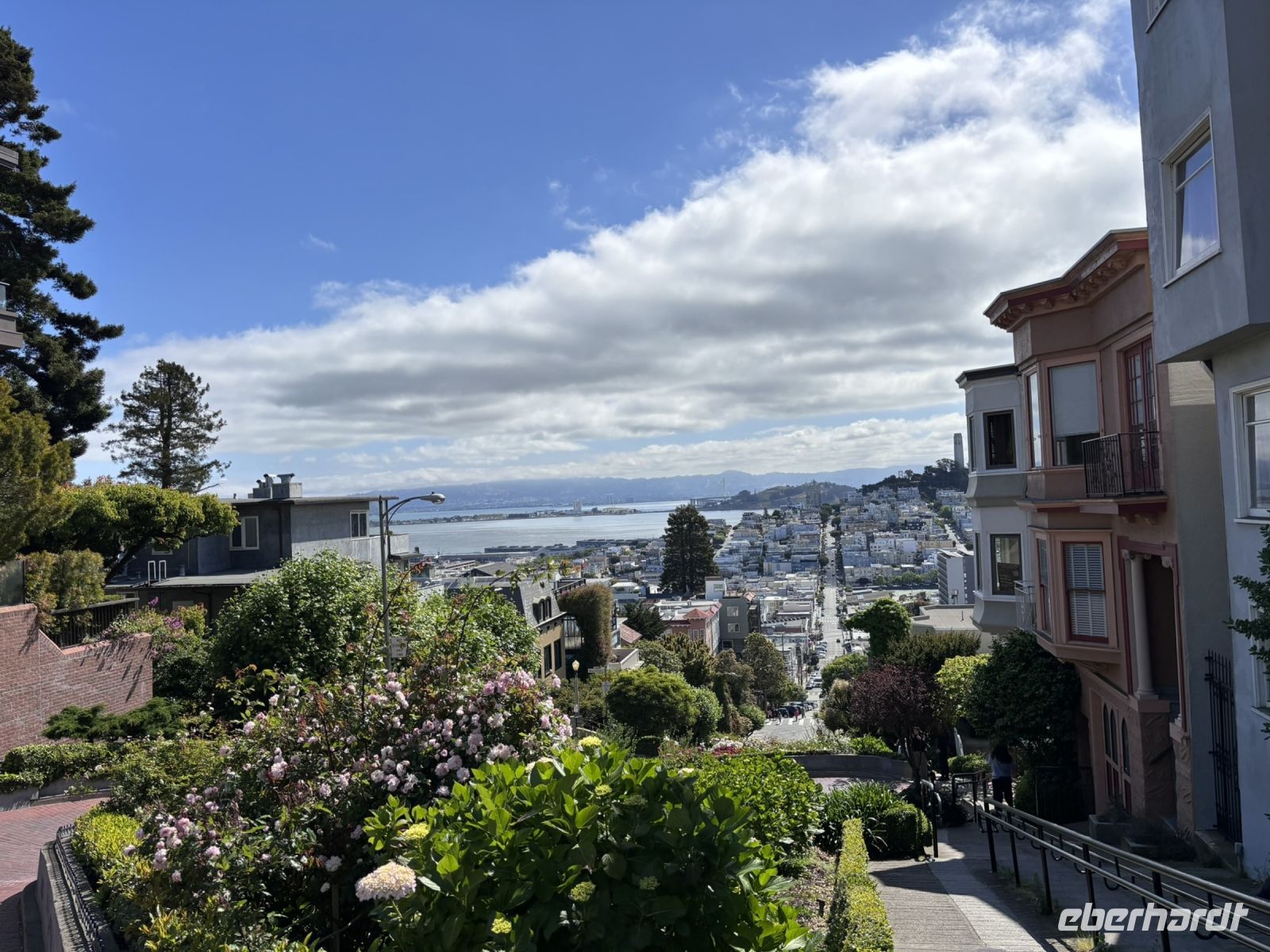 Unsere Fahrt mit dem Cable Car führte uns zur berühmten Lombard Street, die "kurvenreichste Straße der Welt". Wir liefen die steilen Serpentinen hinunter, um den Bus für unsere Stadtrundfahrt wieder zu erreichen.