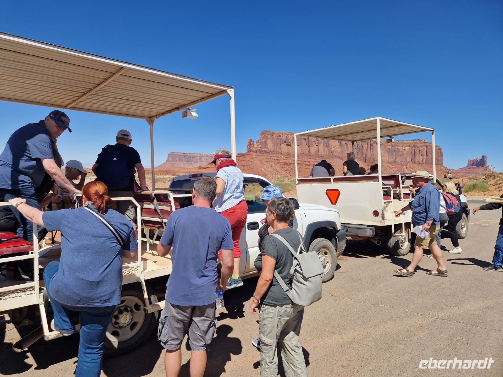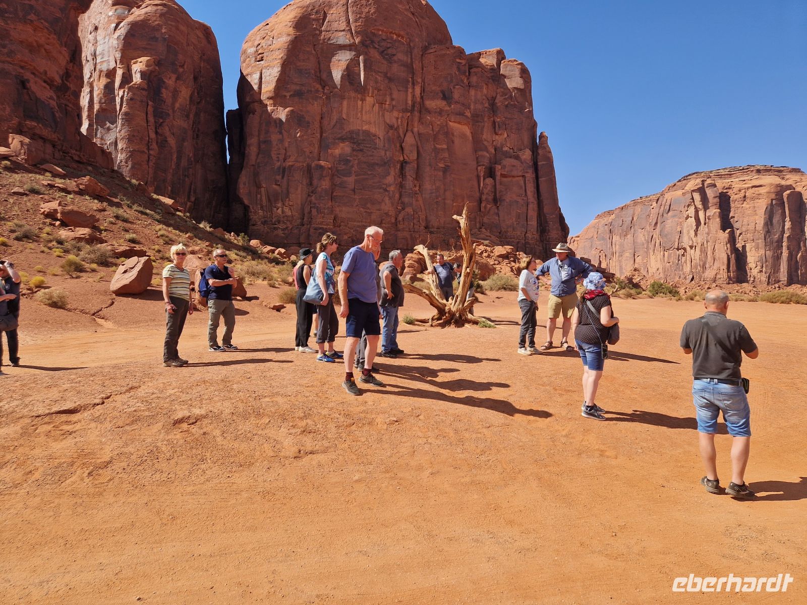 Es war atemberaubend. Die verschiedenen Monumente, welche auch alle einen Namen haben, begeisterten uns. Es war einfach unwirklich dort zu sein und diese Schönheit betrachten zu dürfen. Vorbei an verschiedenen Mesas, Monuments und Buttes erreichten wir unseren Mittagsstopp. Mitten im Monument Valley genossen wir in einzigartiger Atmosphäre unser Mittagessen. Alle waren begeistert.