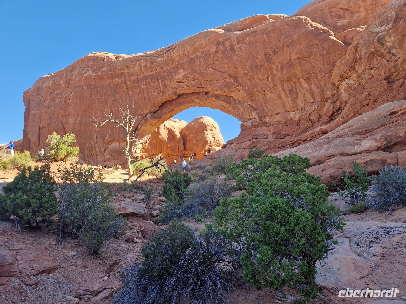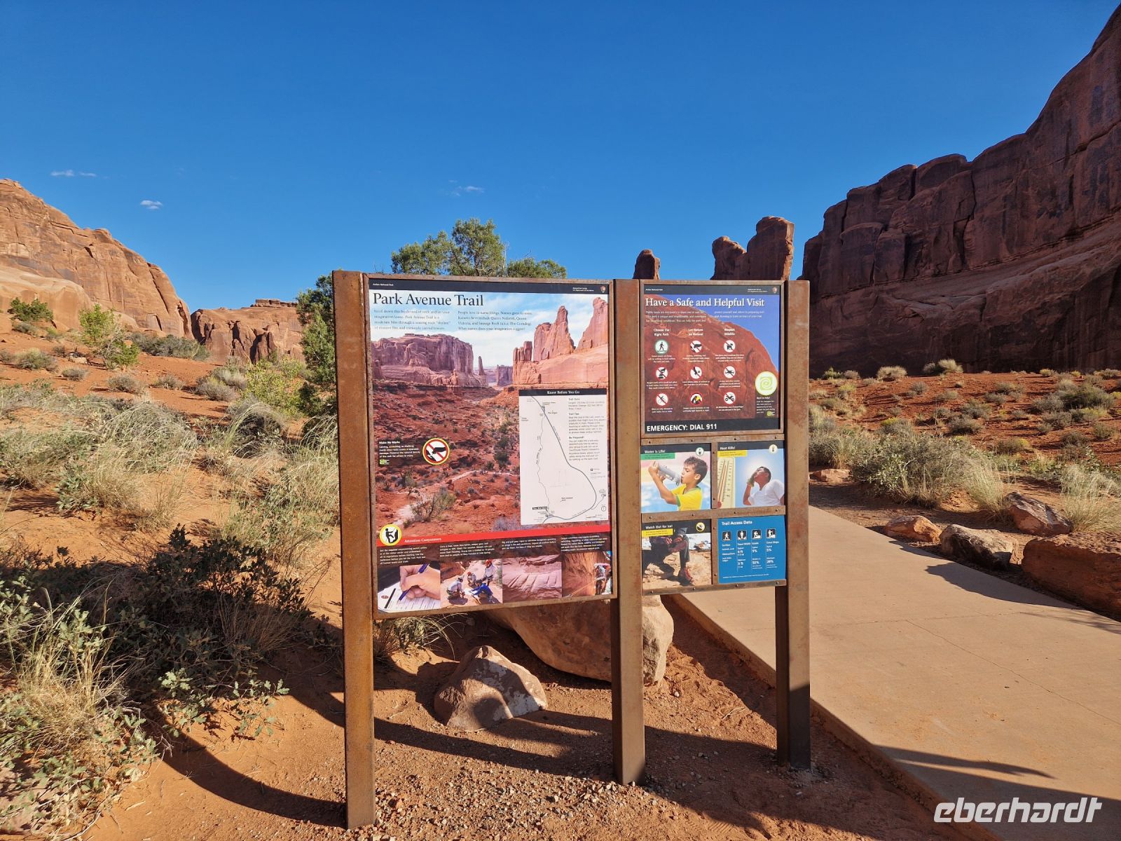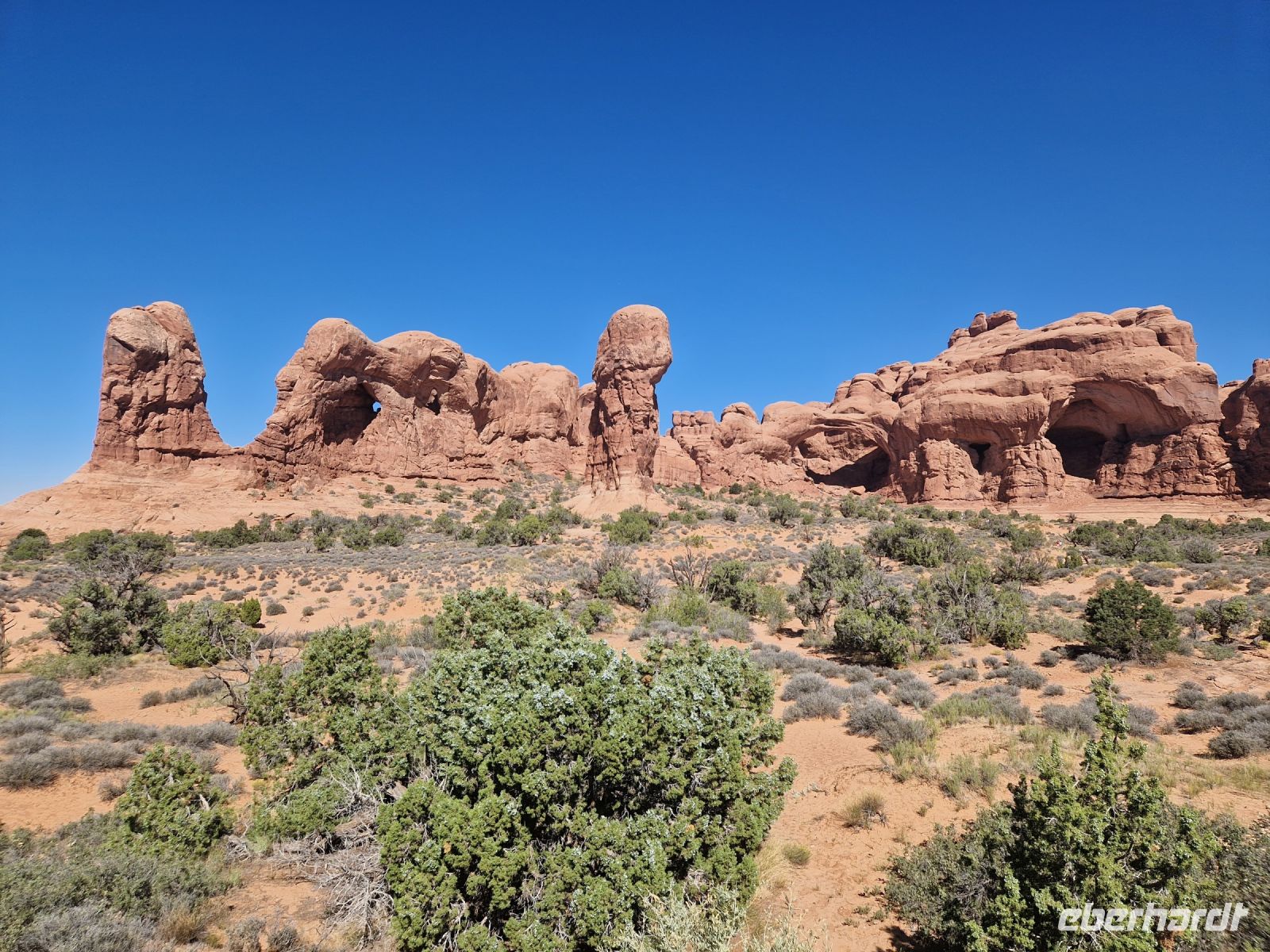 Nach kurzer Fahrtzeit erreichten wir bereits den Arches Nationalpark. Das Wetter war perfekt und ermöglichte uns traumhafte Bilder. Das Blau des Himmels, das rotbraune Gestein und die grünen Gräser und Büsche ergaben ein einzigartiges Farbspiel. Verschiedene Stopps lagen auf unserer Route wie die Park Avenue, der Balanced Rock und natürlich auch North und South Window. Es war unvorstellbar schön genau dort zu sein und diese Naturwunder genießen zu dürfen.