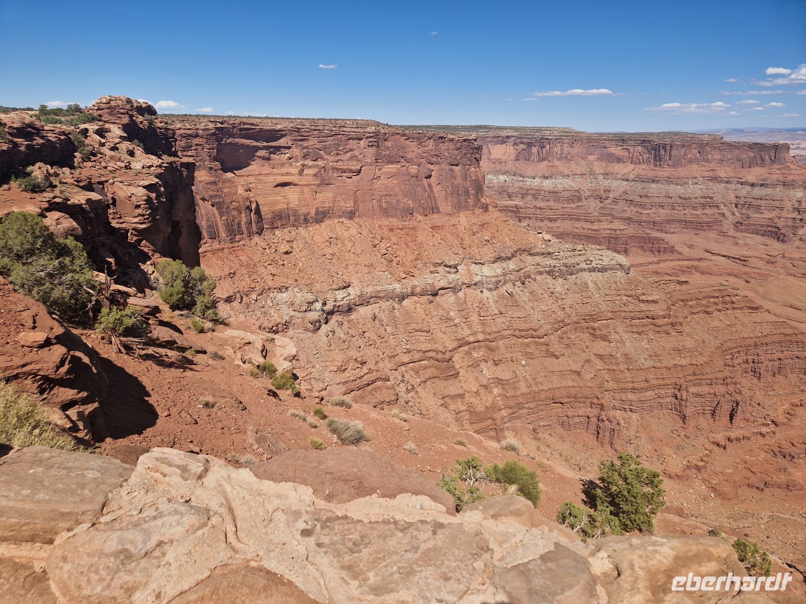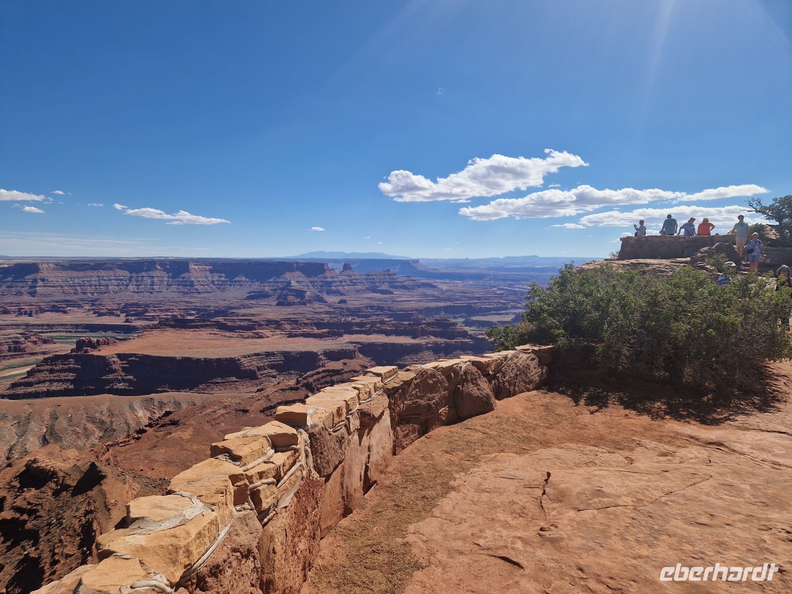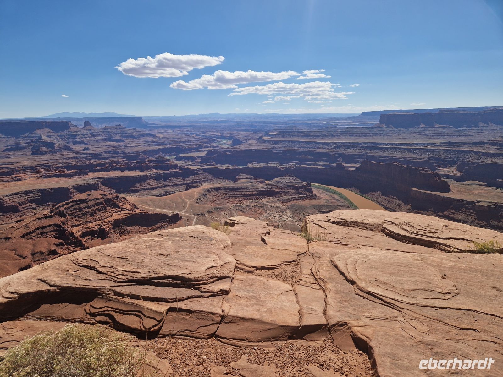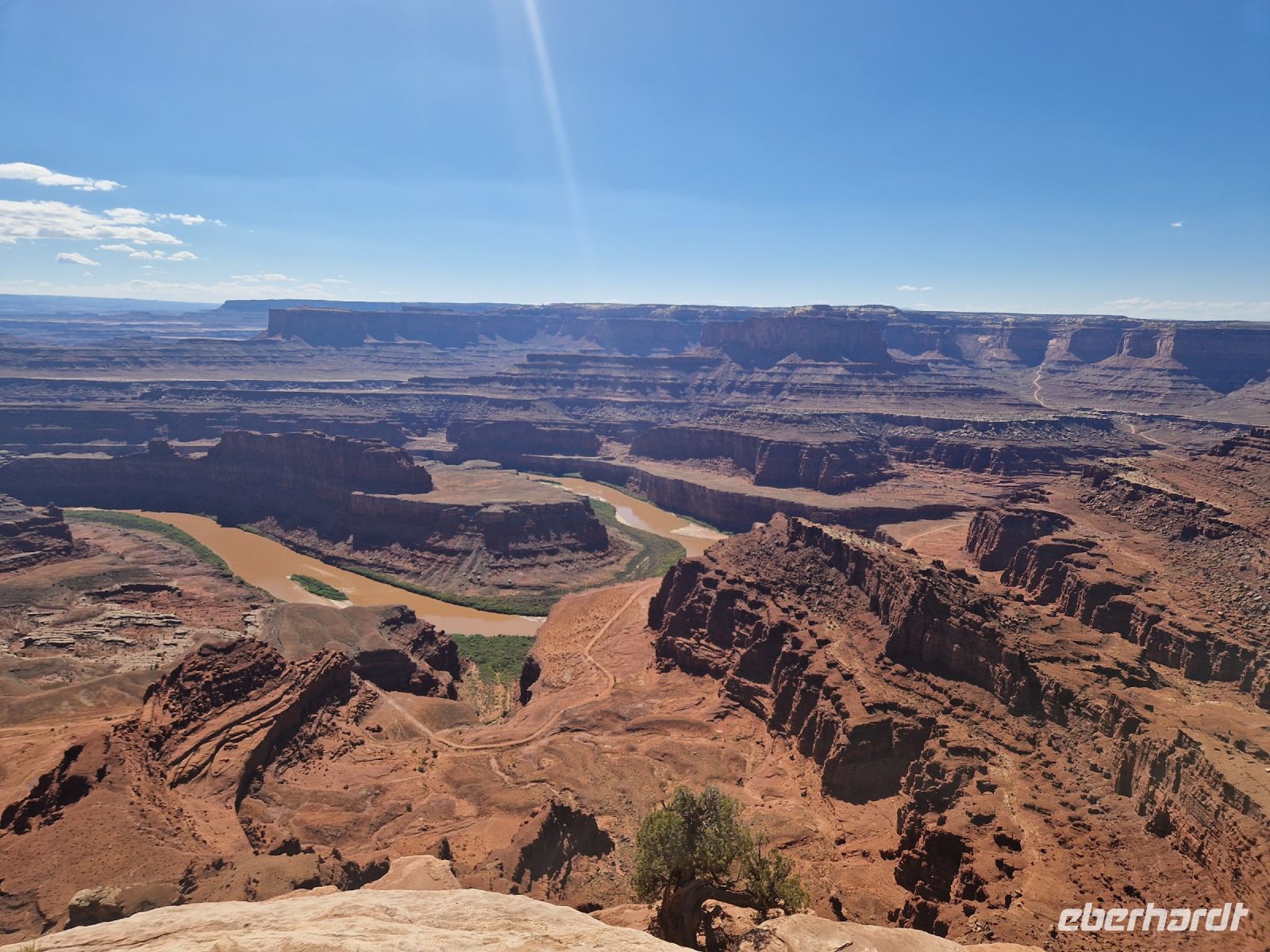 Unser Tag führte uns nun weiter zum Dead Horse Point. Die Landzunge mit sehr steilen Abgründen links und rechts ermöglichten uns atemberaubende Blicke. Bei so einer Aussicht auf den Canyonlands Park und den Arches Nationalpark kann man nur sprachlos sein.