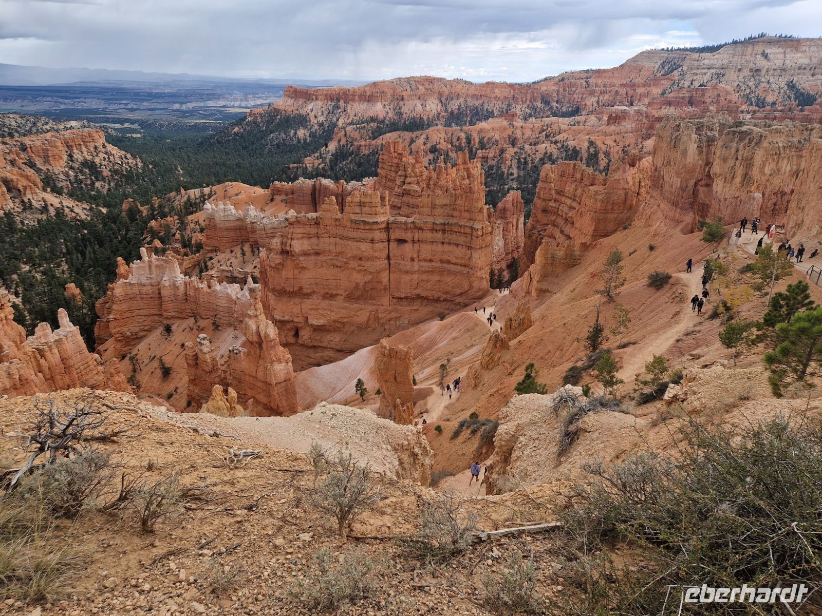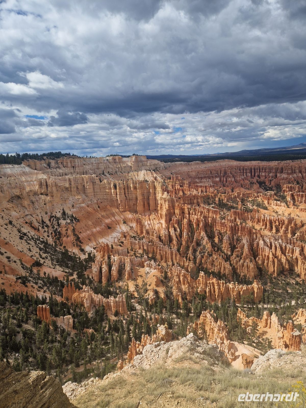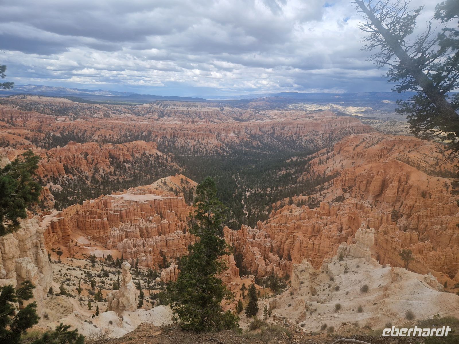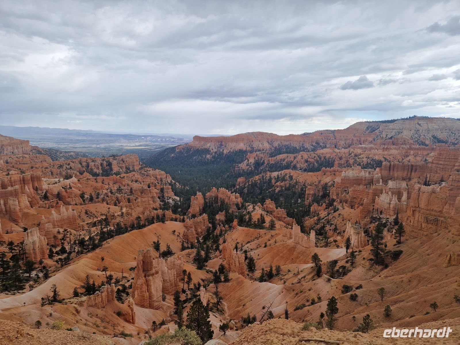 Heute hatten wir eine längere Fahrt vor uns. Vorbei am Drachenfelsen, am Wohnhaus von Butch Cassidy und am Red Canyon erreichten wir nach vier Stunden Fahrt ein Highlight der Reise - den Bryce Canyon. Dieser war mit über 2.700 m Höhe der höchste Punkt der Tour. Chris versprach uns nicht zu viel. Der Canyon war eine absolute Schönheit und diesen Anblick wird man wohl nie vergessen. Weiter ging es für uns zum Sunset Point, einem Punkt an der Kante des Canyons. Von hier spazierten wir bis zum Sunrise Point. Der Spaziergang erfolgte durch den aufkommenden Regen etwas flotter, aber es änderte nichts an der Pracht des Anblicks dieses Naturwunders.