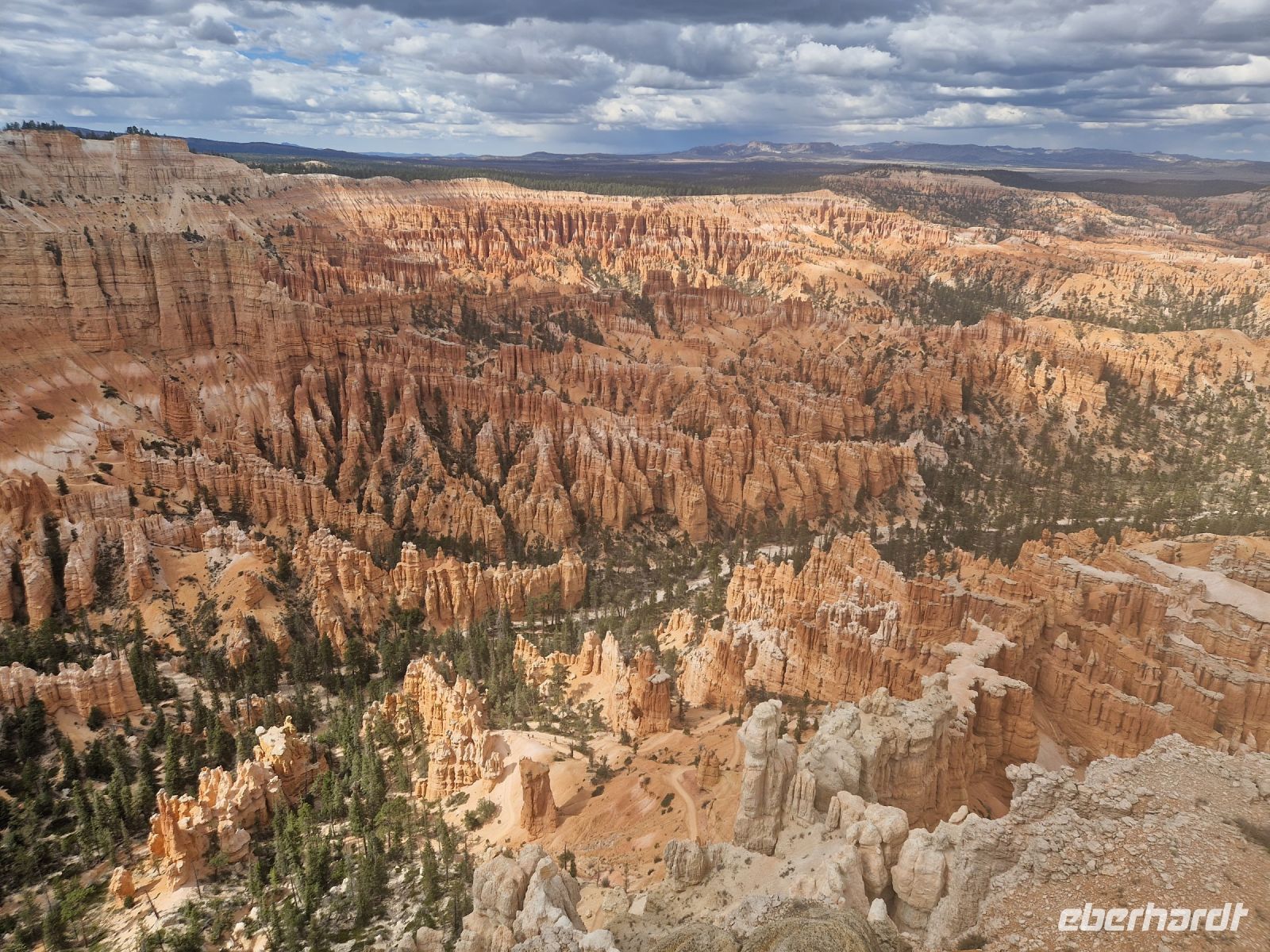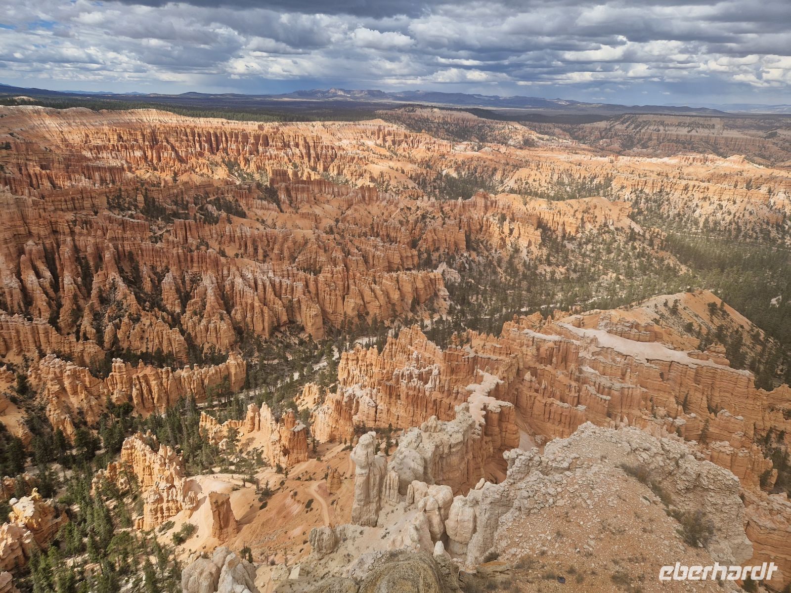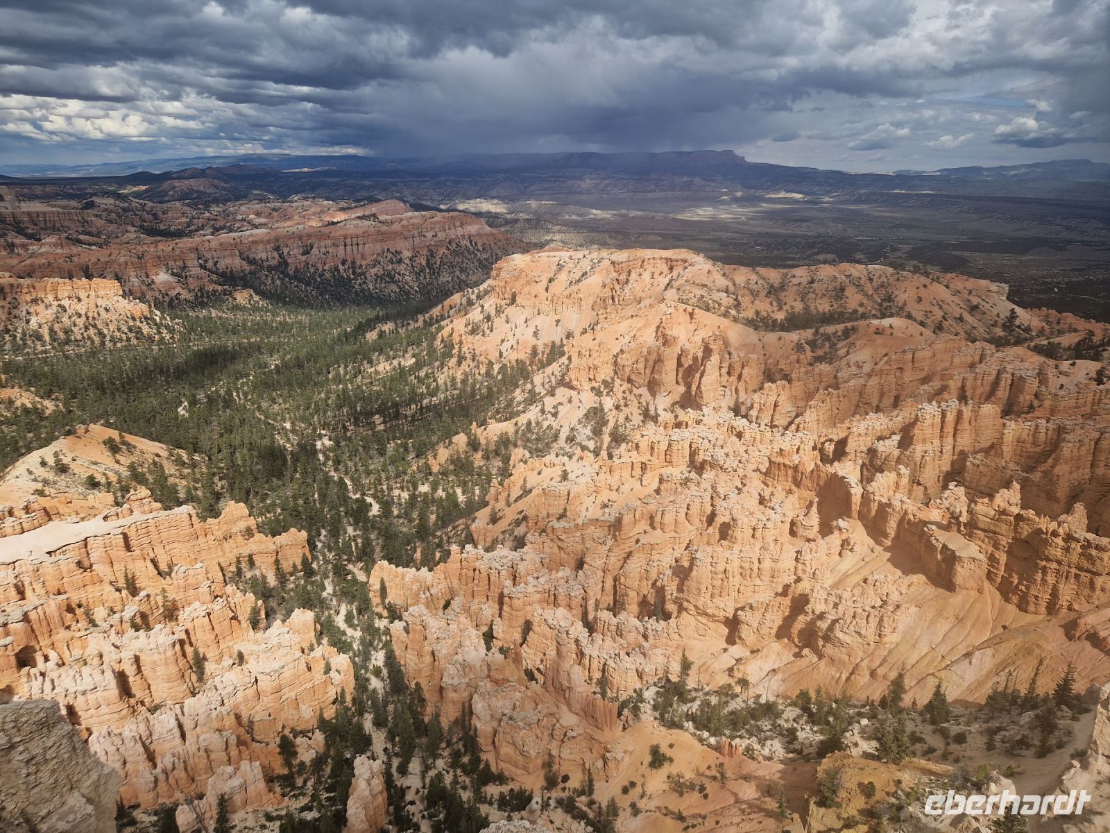 Heute hatten wir eine längere Fahrt vor uns. Vorbei am Drachenfelsen, am Wohnhaus von Butch Cassidy und am Red Canyon erreichten wir nach vier Stunden Fahrt ein Highlight der Reise - den Bryce Canyon. Dieser war mit über 2.700 m Höhe der höchste Punkt der Tour. Chris versprach uns nicht zu viel. Der Canyon war eine absolute Schönheit und diesen Anblick wird man wohl nie vergessen. Weiter ging es für uns zum Sunset Point, einem Punkt an der Kante des Canyons. Von hier spazierten wir bis zum Sunrise Point. Der Spaziergang erfolgte durch den aufkommenden Regen etwas flotter, aber es änderte nichts an der Pracht des Anblicks dieses Naturwunders.