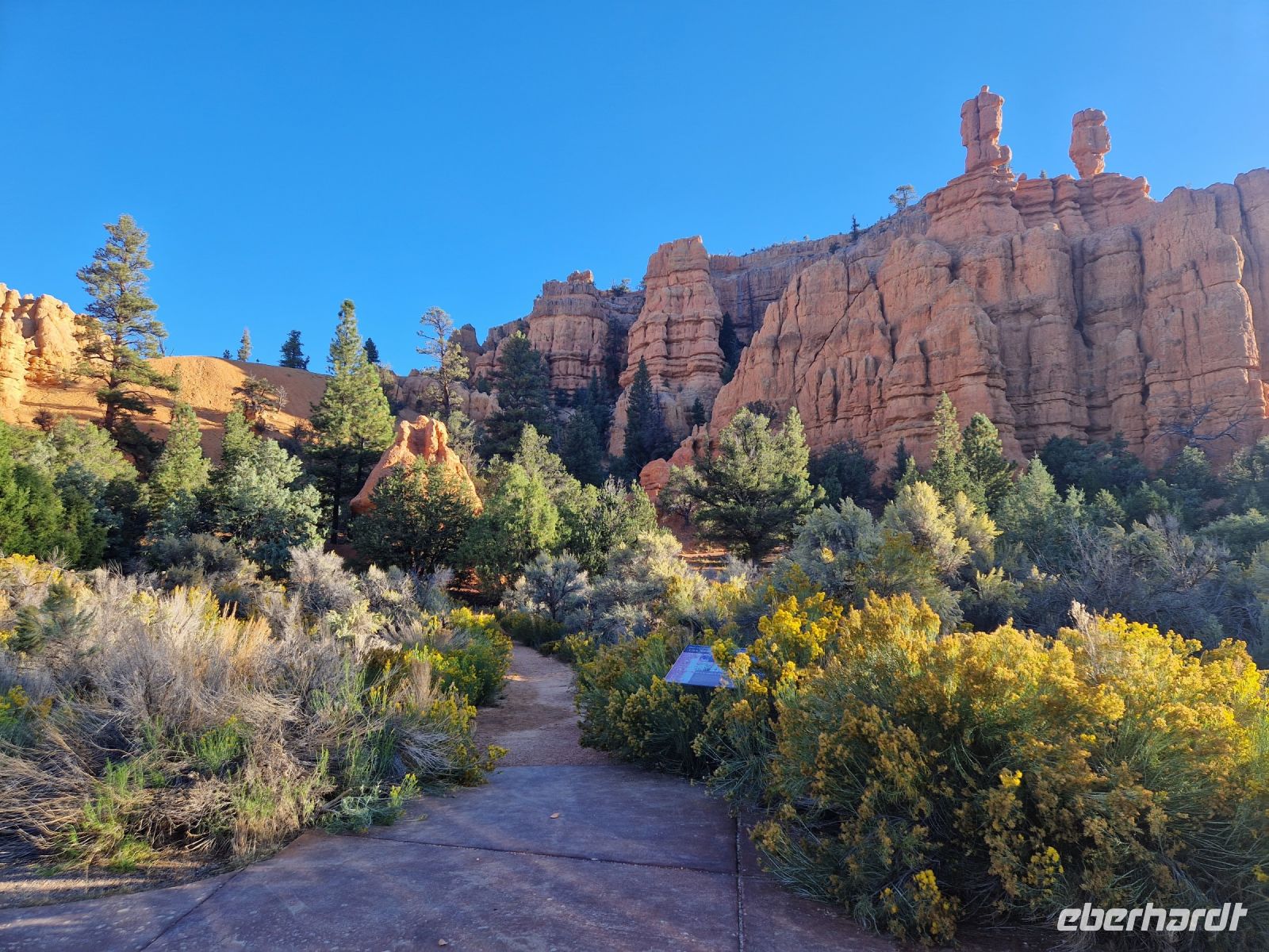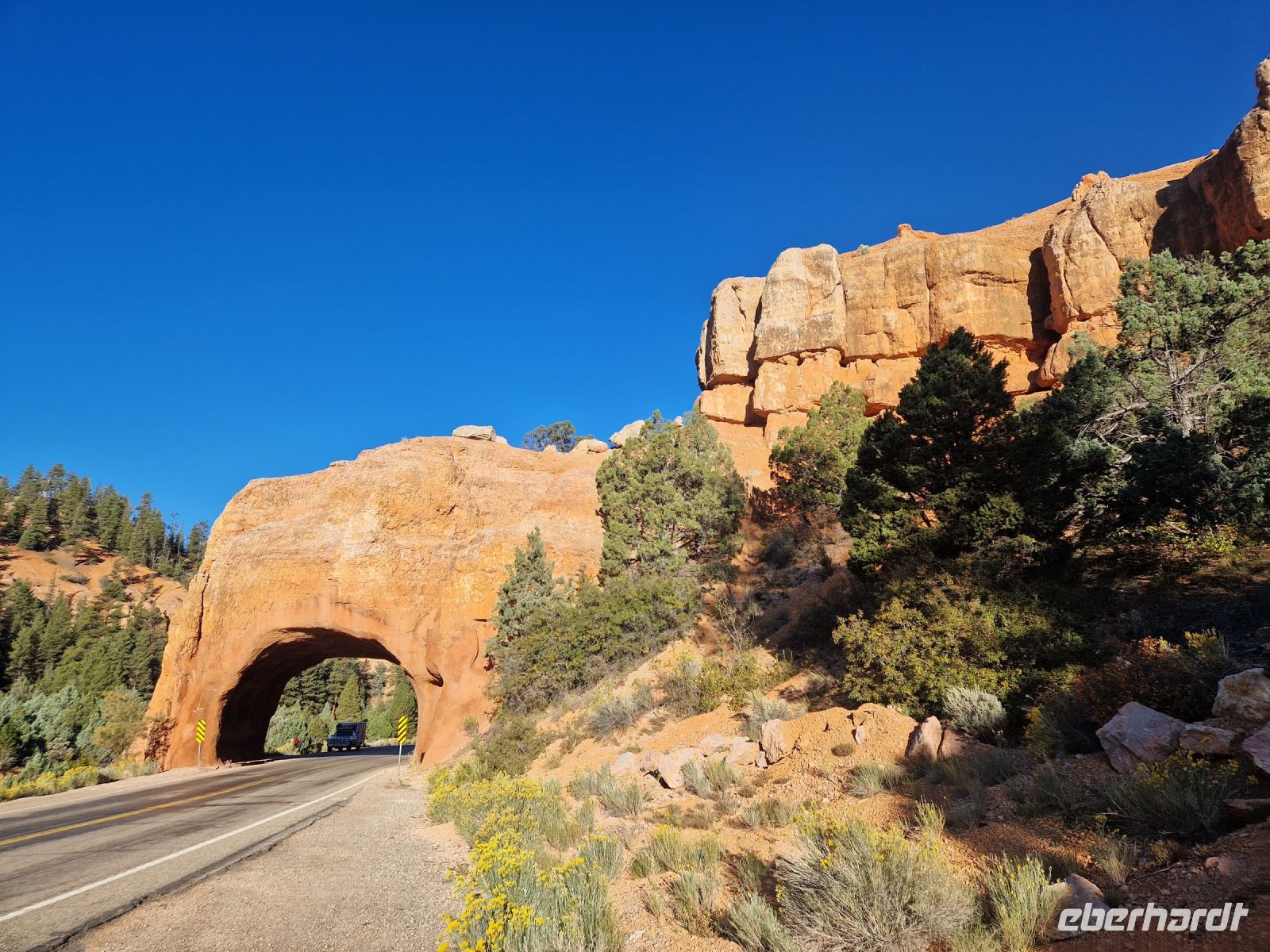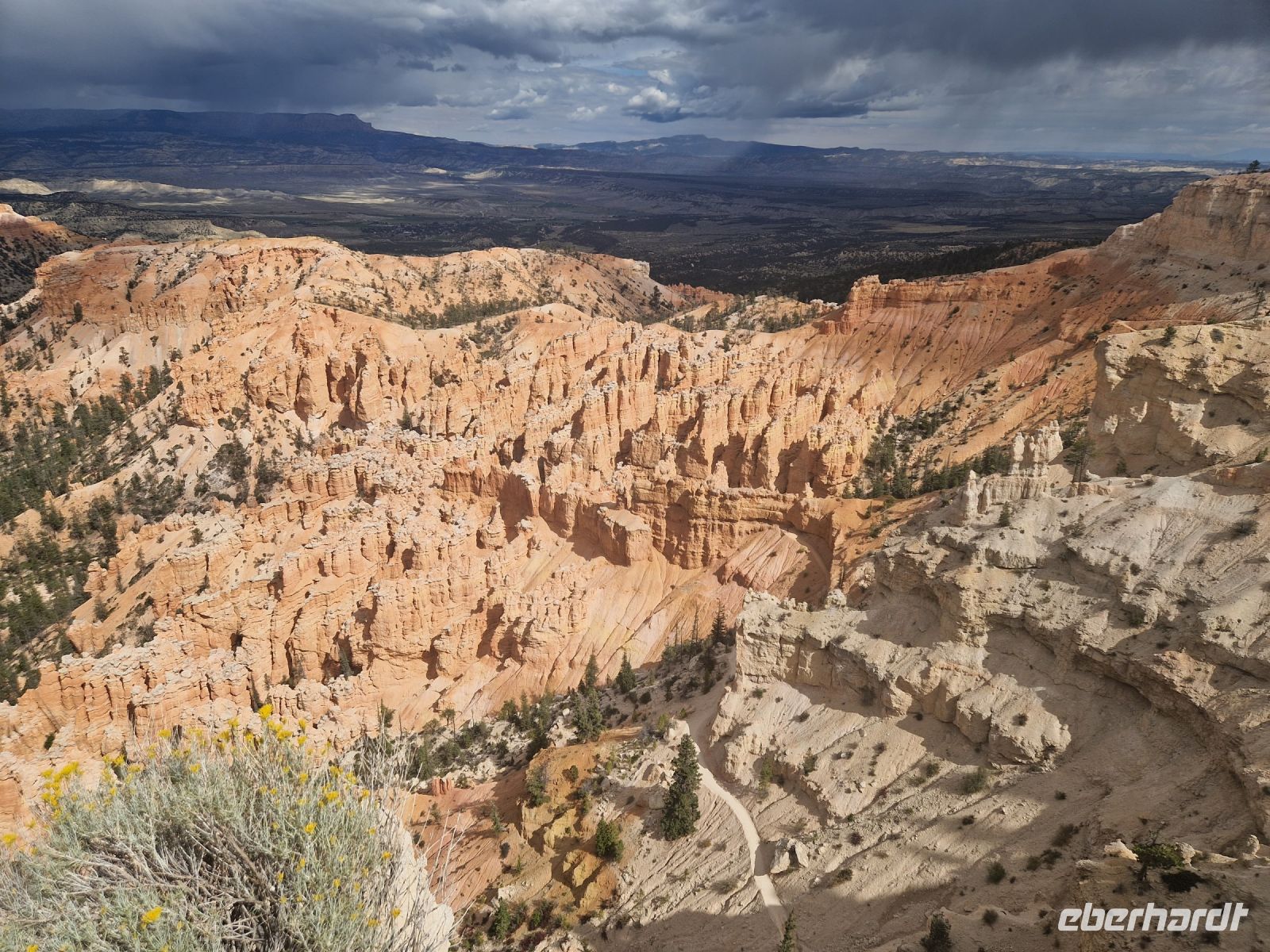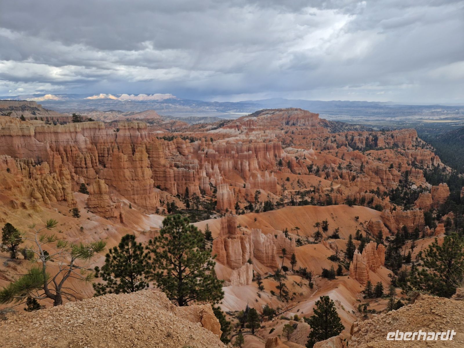 Heute hatten wir eine längere Fahrt vor uns. Vorbei am Drachenfelsen, am Wohnhaus von Butch Cassidy und am Red Canyon erreichten wir nach vier Stunden Fahrt ein Highlight der Reise - den Bryce Canyon. Dieser war mit über 2.700 m Höhe der höchste Punkt der Tour. Chris versprach uns nicht zu viel. Der Canyon war eine absolute Schönheit und diesen Anblick wird man wohl nie vergessen. Weiter ging es für uns zum Sunset Point, einem Punkt an der Kante des Canyons. Von hier spazierten wir bis zum Sunrise Point. Der Spaziergang erfolgte durch den aufkommenden Regen etwas flotter, aber es änderte nichts an der Pracht des Anblicks dieses Naturwunders.