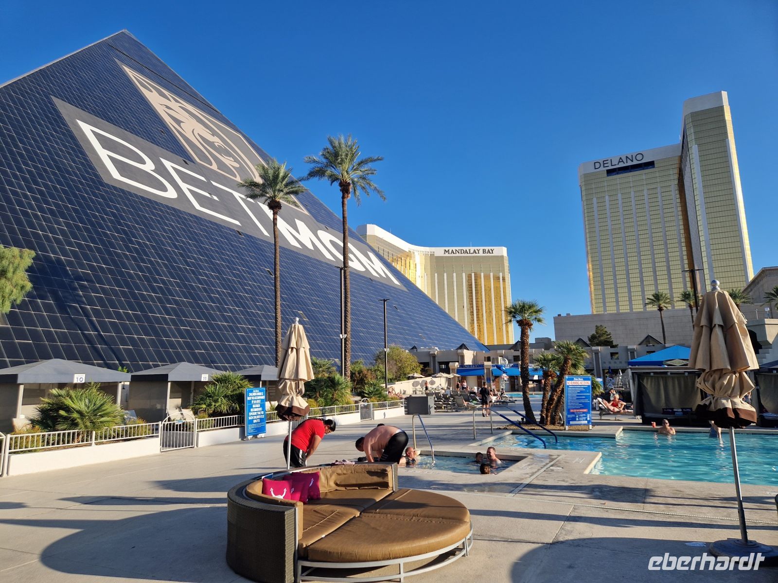 Am Nachmittag erreichten wir Las Vegas. 2 Millionen Einwohner und 110.000 Besucher täglich. Selbst am Tag ist es einfach nur verrückt hier zu sein. Unser Hotel war für die heutige Nacht das Luxor, ein Hotel in der Form einer Pyramide. Das Hotel ist ein einziges Spektakel - Las Vegas Baby!