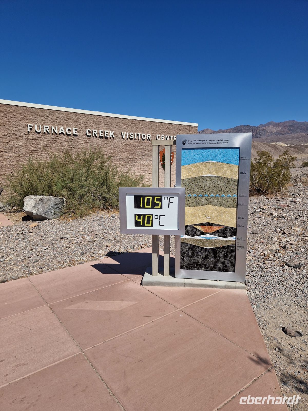 Das Tal der Todes stand heute auf unserem Programm. Der tiefste und heißeste Punkt der USA mit minus achtzig Metern unter dem Meeresspiegel. Unendliche Weiten und pure Hitze mit 40 Grad. Mit verschiedenen Stopps erkundeten wir das Death Valley.