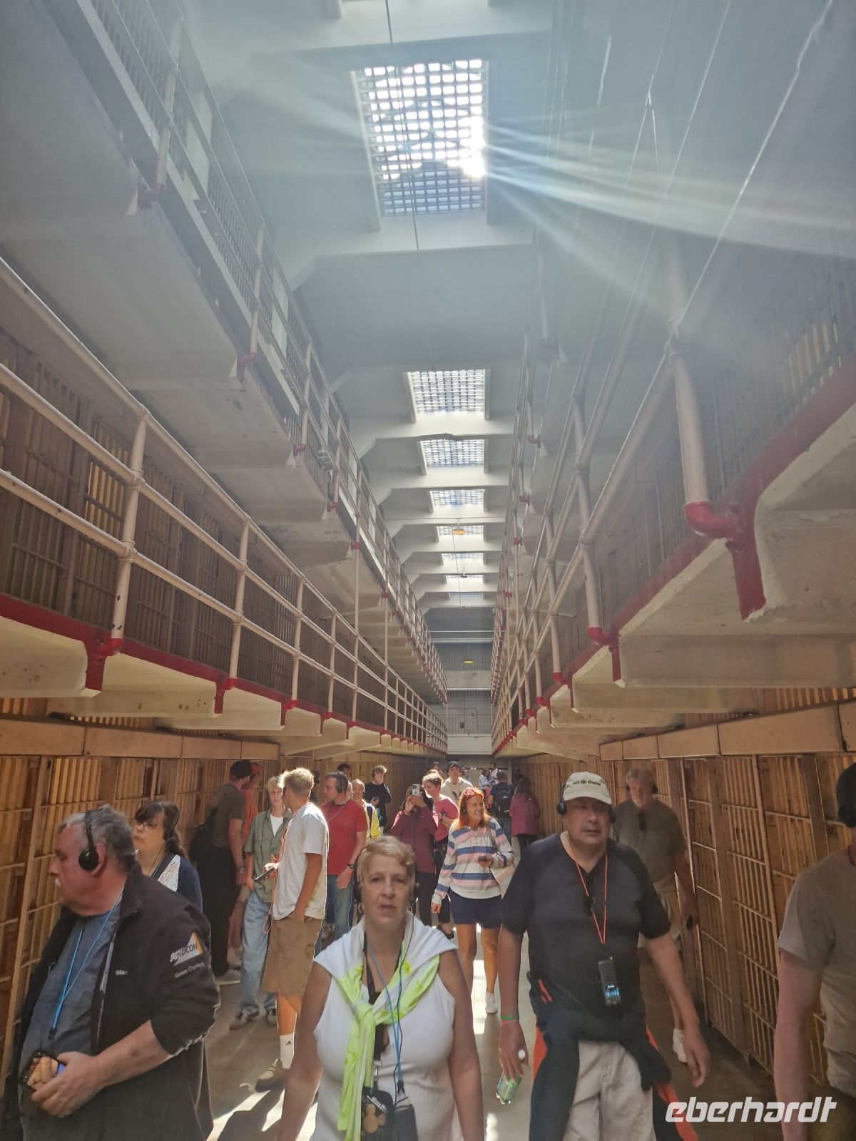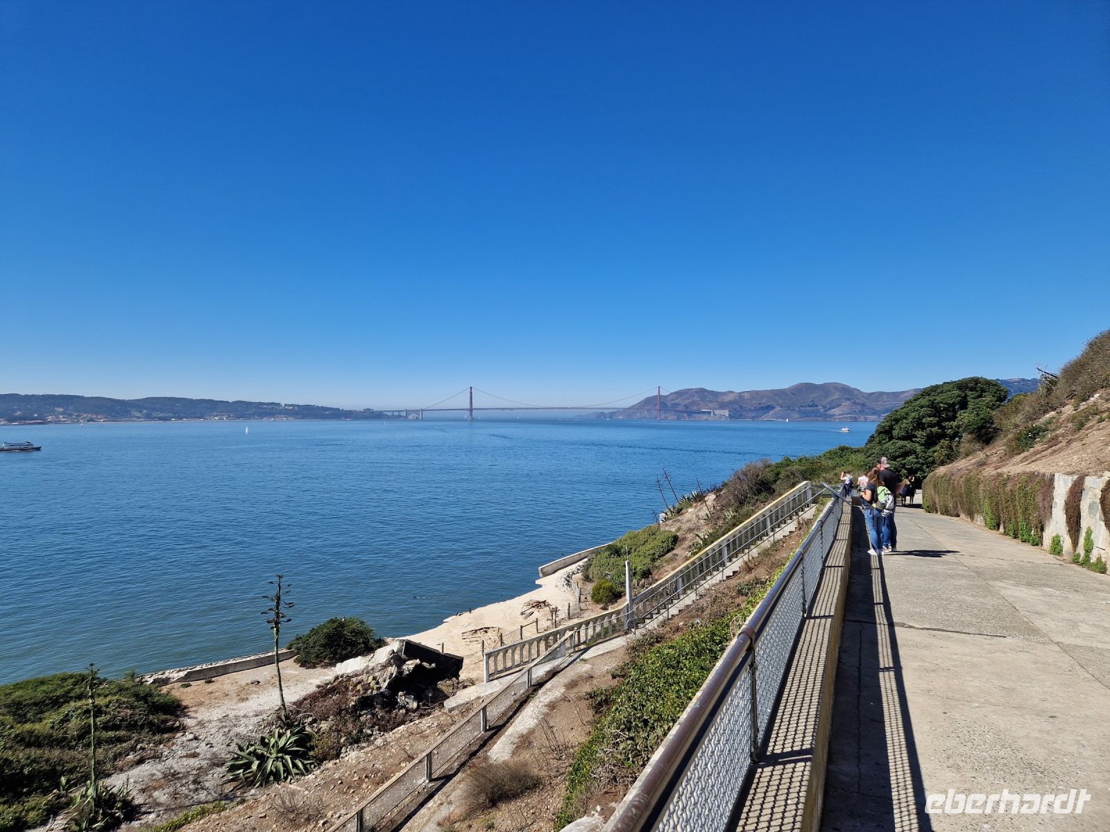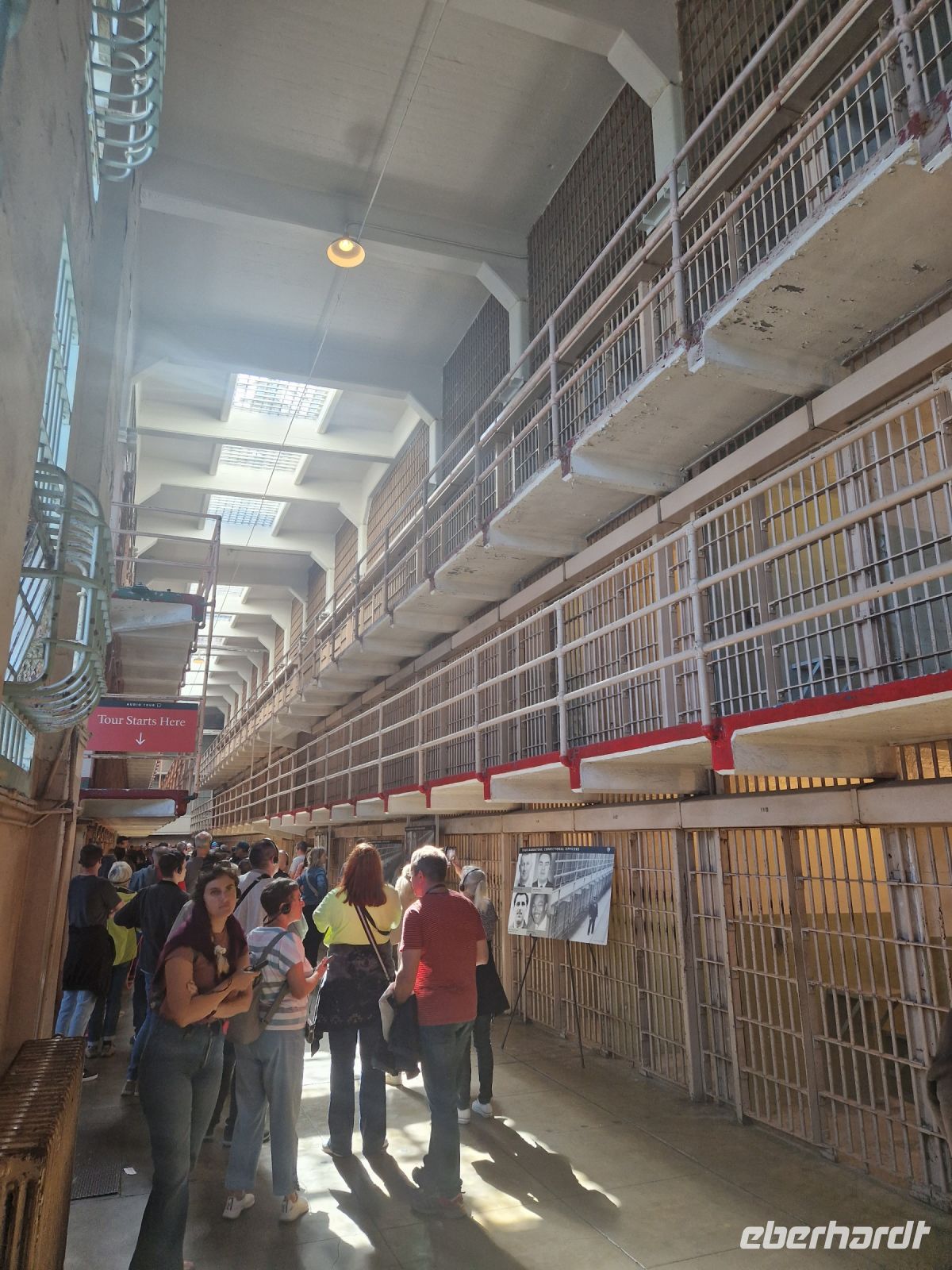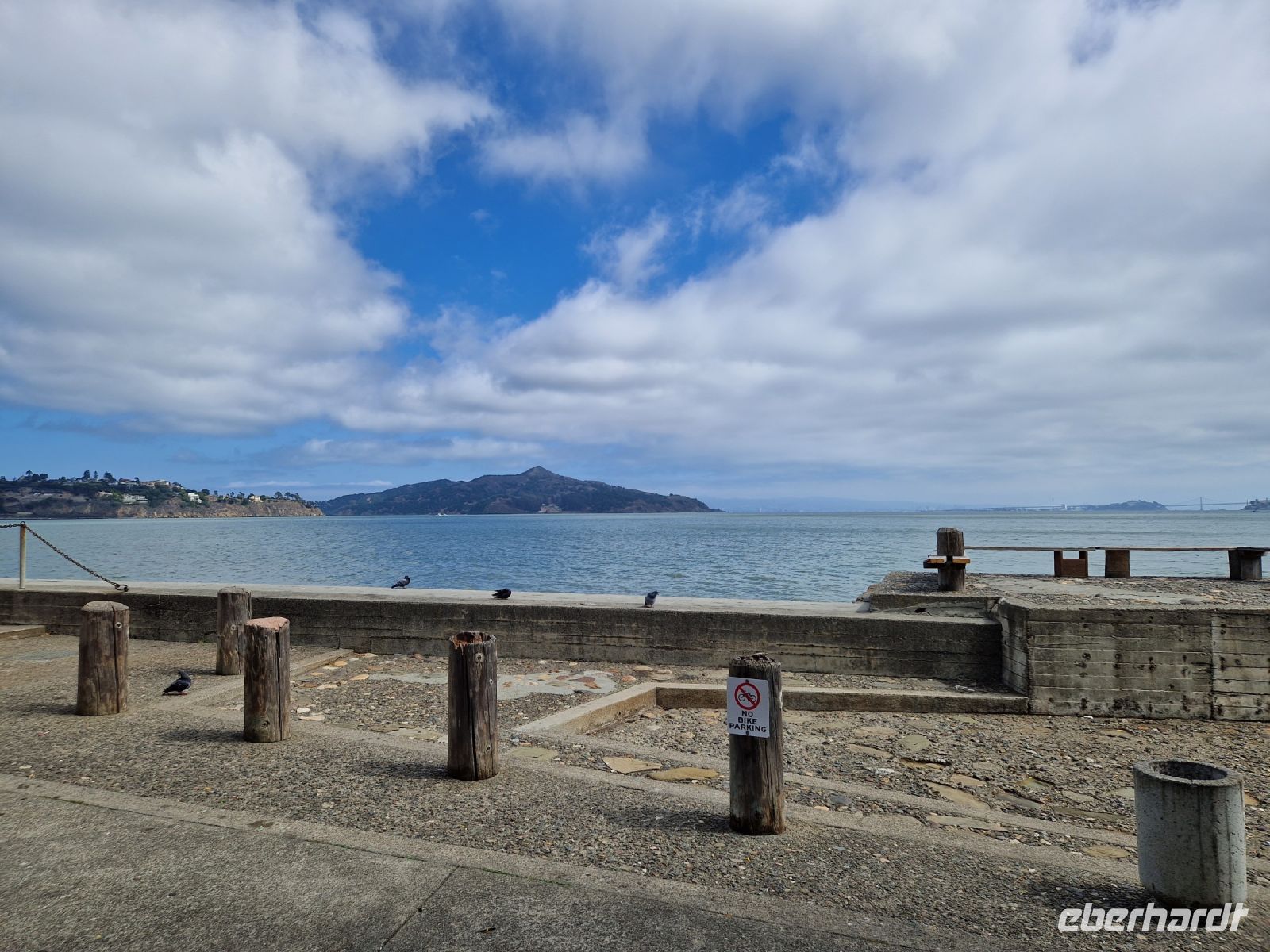 Zu Fuß liefen wir am Pier entlang bis zum Pier 33. Von hier aus ging unser Schiff zur alten Gefängnisinsel Alcatraz. Die Fährfahrt konnten wir in allen Zügen genießen, denn die Aussicht auf die Golden Gate Bridge sowie Alcatraz ermöglichte uns dies. Auf Alcatraz holten wir uns Audio Guides und hörten alles Wichtige über die Gefängnisinsel. Es war sehr interessant und wissenswert gestaltet.