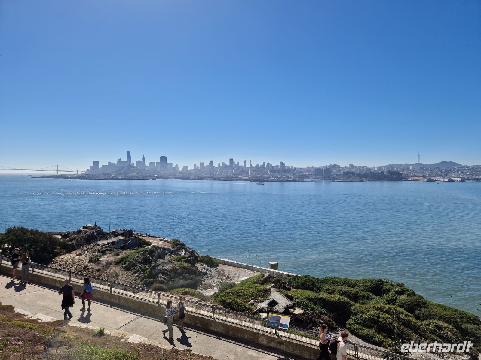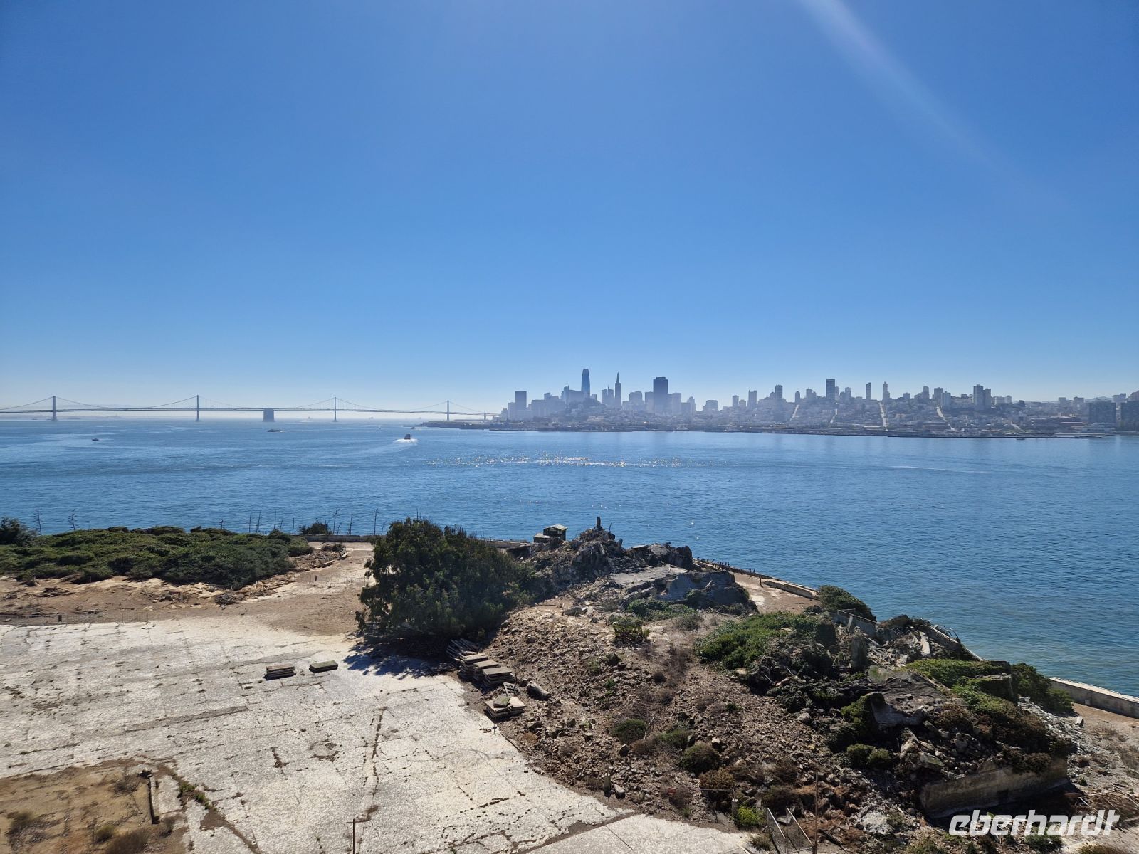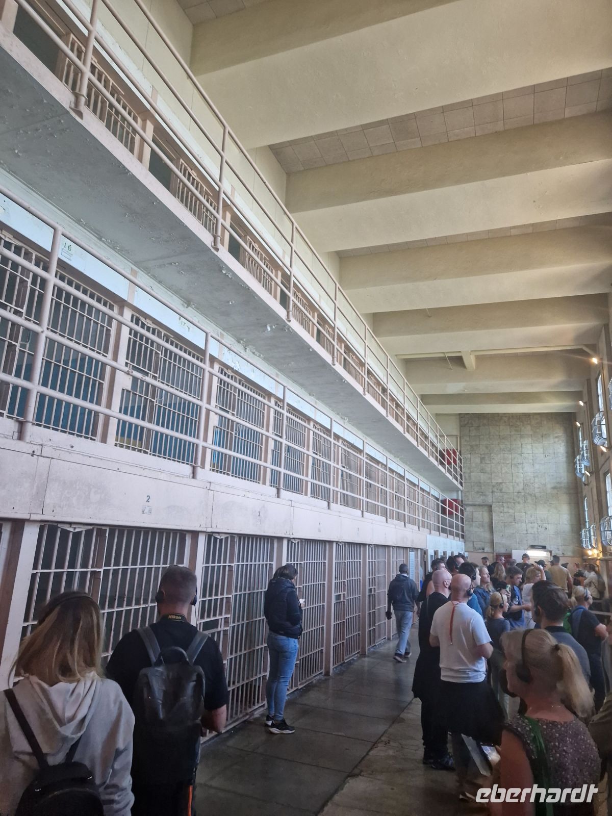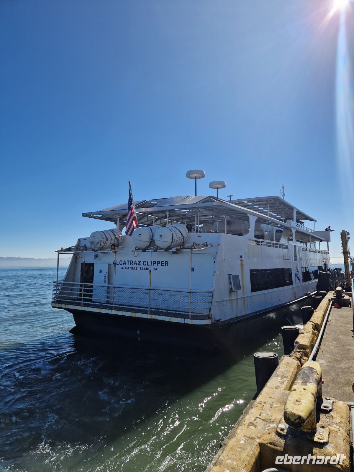 Zu Fuß liefen wir am Pier entlang bis zum Pier 33. Von hier aus ging unser Schiff zur alten Gefängnisinsel Alcatraz. Die Fährfahrt konnten wir in allen Zügen genießen, denn die Aussicht auf die Golden Gate Bridge sowie Alcatraz ermöglichte uns dies. Auf Alcatraz holten wir uns Audio Guides und hörten alles Wichtige über die Gefängnisinsel. Es war sehr interessant und wissenswert gestaltet.
