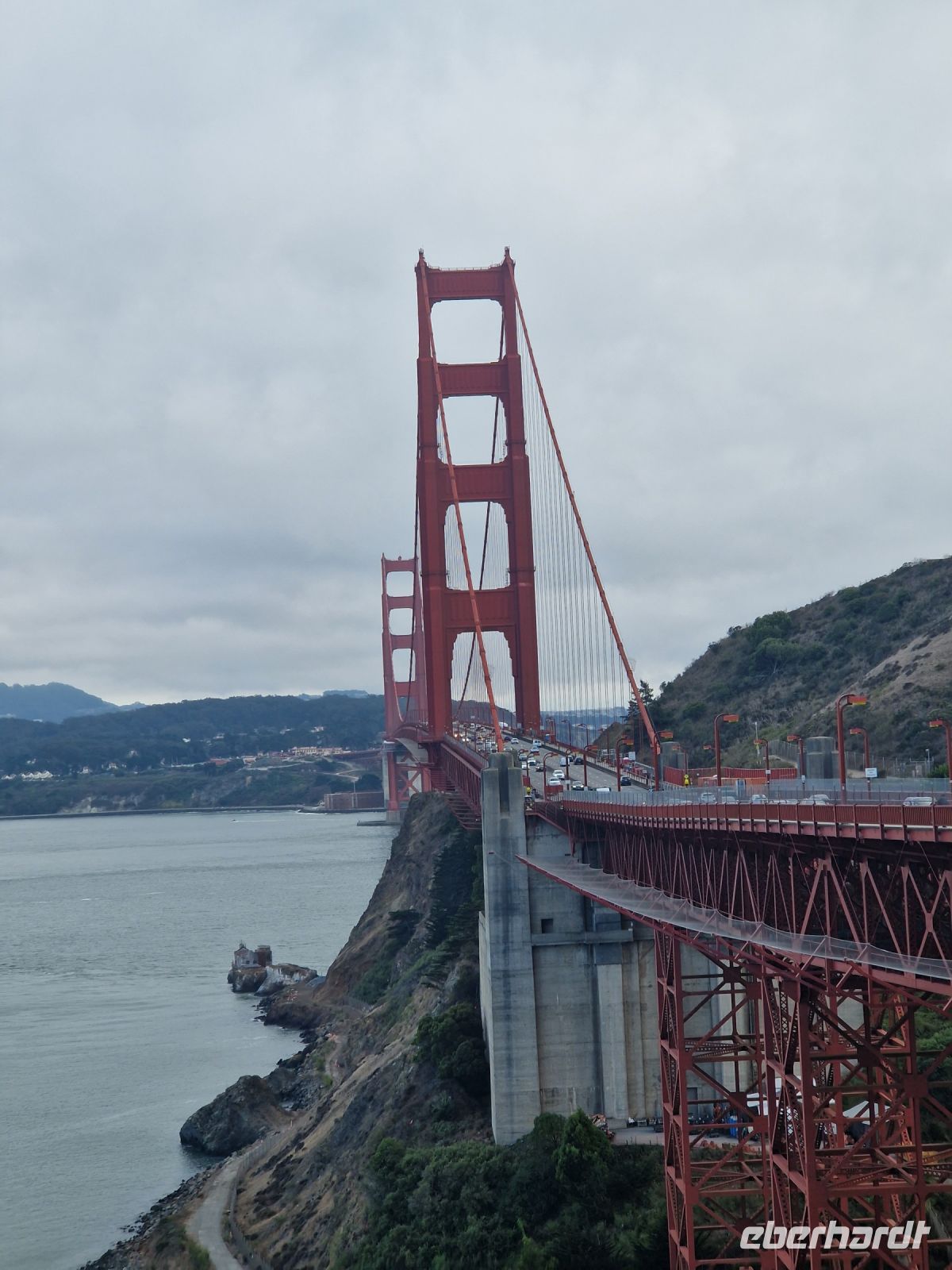 Weiter ging es zur Golden Gate Bridge, das Wahrzeichen San Franciscos. Über die 2.7 km lange Hängebrücke spazierten wir darüber und genossen die Aussicht.