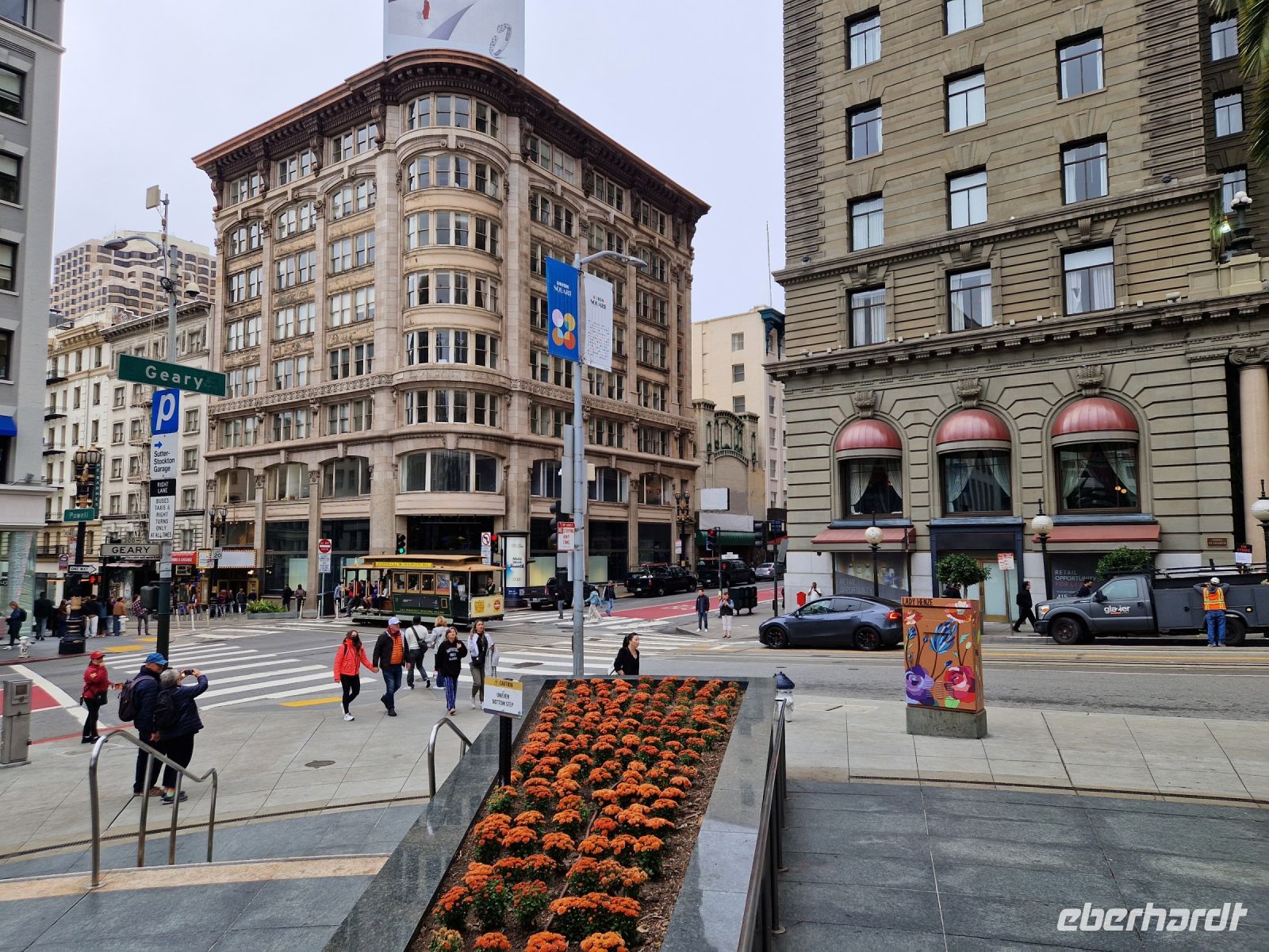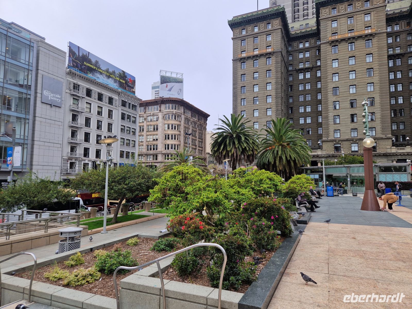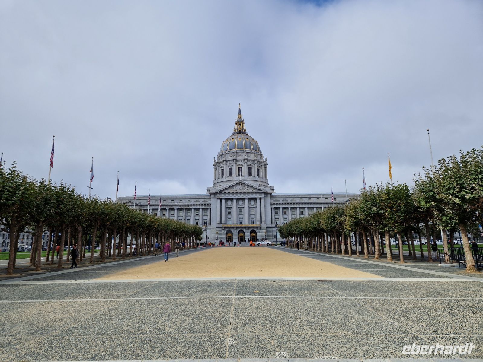 San Francisco wollte heute von uns entdeckt werden. Am Pier entlang, durch den Financial District durch, erreichten wir den Union Square, unseren ersten Fotostopp. Zu dieser Zeit war es noch etwas bewölkt, aber so langsam zog es immer mehr auf. Bereits am Rathaus von San Francisco zeigte sich schon immer mehr blauer Himmel. Wir fuhren durch das japanische Viertel der Stadt und besichtigten die St. Marys Kathedrale.