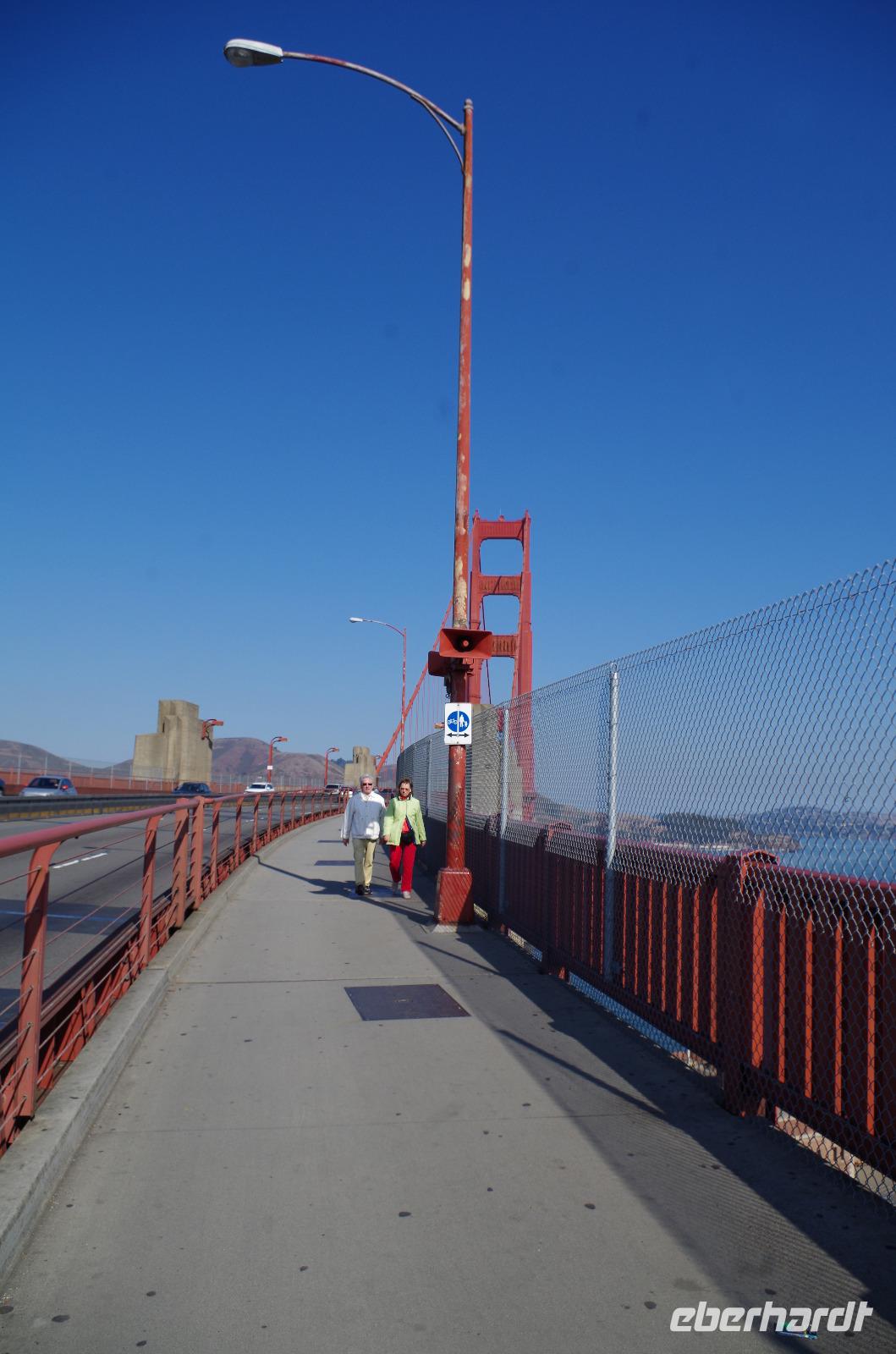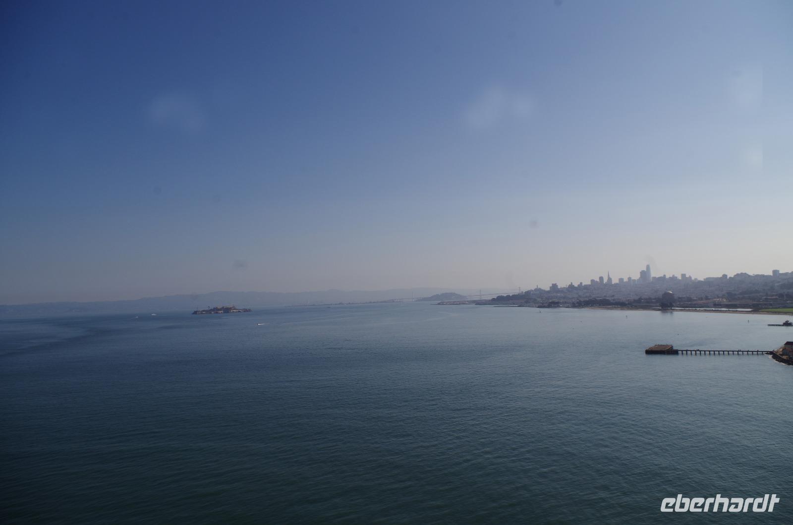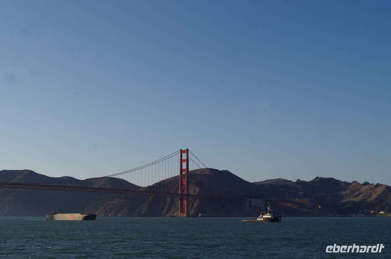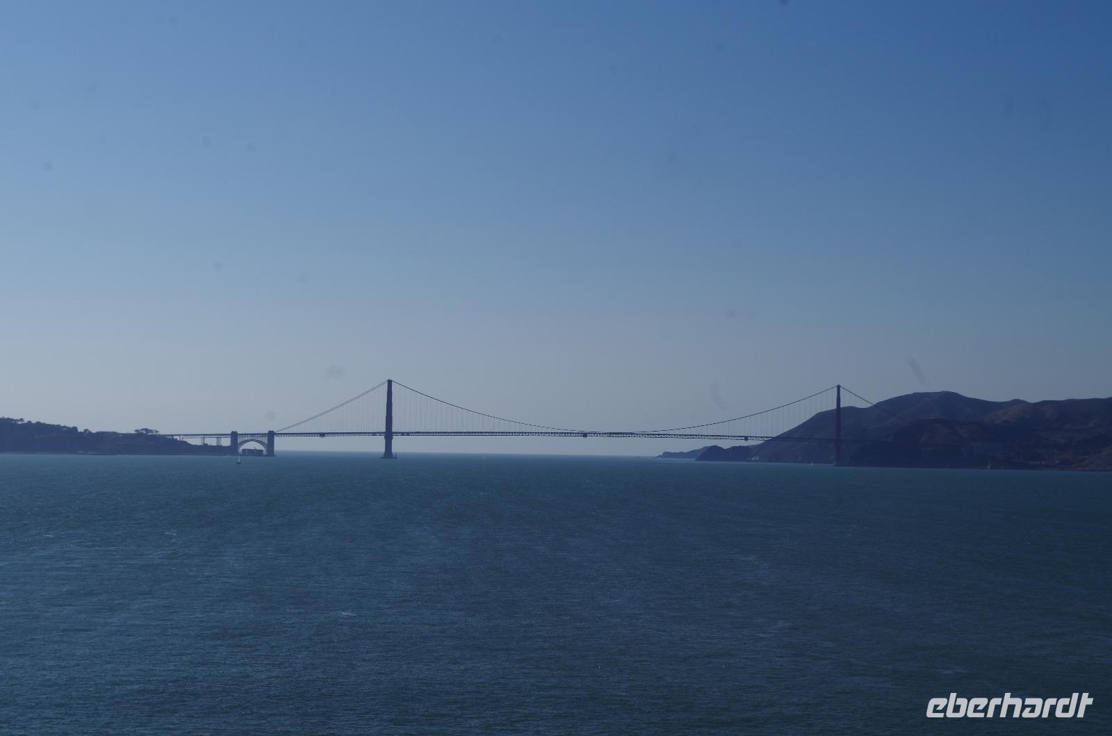 Nach einem doch recht anstrengenden Anreisetag starten wir in einen sonnigen Tag mit einem guten Frühstück. Ungewöhnlich ist sicherlich für uns das Essen mit Plastikbesteck, was aber in vielen Hotels in den USA alltäglich ist. Um 08.30 Uhr werden wir von Catharina und der Panama-Gruppe abgeholt, so dass unsere Stadtrundfahrt zugleich beginnen kann. Wir fahren Richtung North Beach am italienischen Viertel und der Kirche "Saints Peter and Paul Church" vorbei. Unser erster Foto-Stopp ist am Rathaus "City Hall". Bevor wir die 1970 fertiggestellte "Kathedrale Mariä Himmelfahrt", oder auch "Cathedral of Saint Mary of the Assumption", besichtigen, legen wir eine Harmoniepause im japanischen Viertel ein. Anschließend fahren wir weiter zum Postcard Row und am Crissy Field vorbei zu einem sehr beliebten Fotomotiv in San Francisco, der unter Leitung von Joseph Strauss entworfenen berühmten Golden Gate Bridge. Hier entsteht auch unser erstes Gruppenfoto, von welchem noch viele weitere Fotos folgen werden ;-) Diese rund 2.789 Meter lange Hängebrücke (Gesamtlänge einschließlich der Auffahrtsrampen) stellt die Verbindung zwischen Martin County und der Stadt an der nördlichsten Spitze der Halbinsel dar. Der Bau hat 1933 begonnen und ist rund vier später fertiggestellt wurden. Die Kosten haben rund 35 Millionen Dollar betragen. Die Brücke trägt die ungewöhnliche Farbe "international orange", was zwar komisch klingt, die Farbe der Brücke passt aber wunderbar ins Landschaftsbild. Interessant ist vielleicht auch, dass die Mautgebühr von aktuell 7 US-Dollar nur in südlicher Richtung zur Stadt eingefordert wird. Die Brücke ist rund 27,4 Meter breit, die Pfeiler sind 227 Meter hoch, die Entfernung zum Meeresspiegel beträgt 67 Meter, der Kabeldurchmesser beträgt 92 Zentimeter und die Kabellänge circa 2.332 Meter. Dann fahren wir zum Fisherman's Wharf und zum Fährhafen zur Gefängnisinsel Alcatraz am Pier 33. Die Überfahrt beginnt um 13.30 Uhr und dauert nur wenige Minuten. Für einen Besuch von Alcatraz sind rund zwei Stunden einzuplanen. Wir erhalten Audioguides mit deutschen Erklärungen und Erzählungen, welche das damalige Leben der Häftlinge sehr authentisch und interessant wiedergegeben. Im Jahre 1934 ist der Umbau des ehemaligen Militärstützpunkts zum Militärgefängnis und später zur Bundesstrafanstalt erfolgt. Geschlossen wurde sie 1963 aufgrund steigender Unterhaltungs- und Betriebskosten. Zu den bekanntesten Häftlingen zählen die berüchtigten Insassen Al "Scarface" Capone, Alvin "Creepy" Karpis, Robert Stroud - der "Vogelmann von Alcatraz" oder "Doc" Barker. Weitere Daten und Fakten sind: Es hat 14 Ausbrüche gegeben, das Zellengebäude ist nie voll belegt gewesen, die Häftlinge sind durchschnittlich 8 bis 10 Jahre auf Alcatraz eingeschlossen gewesen und es hat keine Hinrichtungen auf Alcatraz gegeben. Interessant ist sicher auch, dass es sowohl keine weiblichen Gefängnisaufseher als auch weibliche Insassen auf Alcatraz gegeben hat. Die Reisebegleitung Sabine der Panama-Gruppe kommt sogar ins Gespräch mit einem ehemaligen Häftling, welcher genau an diesem Tag sein geschriebenes Buch vorstellt. Jährlich statten mehrere Millionen Menschen der zur Golden Gate Recreational Area gehörenden Gefängnisinsel einen Besuch ab. Gegen 15.00 Uhr fahren wir wieder zurück zum Fisherman's Wharf und verabschieden uns von der Panama-Gruppe. Sie werden morgen mit dem Bus nach Los Angeles fahren, während wir einen weiteren Tag in San Francisco genießen dürfen. Aber heute steht uns noch ein besonderes Highlight bevor! Wir fahren gegen 16.00 Uhr mit der berühmten und vielmals in Filmen vorkommenden Kabelstraßenbahn "Cable Car". Dies ist wirklich ein Erlebnis für sich, auch wenn die Fahrt mit der Cable Car California Line nur wenige Minuten dauert. Nach der Fahrt fahren wir zum Hotel zurück und verabschieden uns freundlich von unserer örtlichen Reiseleiterin Catharina. Sie wird die Panama-Gruppe nach Los Angeles begleiten. Um 18.00 Uhr treffen wir uns zum gemeinsamen Spaziergang am Fisherman's Wharf entlang zum Pier 39, wo wir die vielen wirklich faul in der Abendsonne liegenden Seerobben beobachten und besonders deren lustigen Geräuschen lauschen. Wenig später gönnen wir uns ein leckeres Abendessen im mexikanischen Restaurant "Mangos" am Pier 39. Das Essen ist zwar ganz gut, aber dank einer Gesamtrechnung mit zwei verschiedenen Steuern ohne Prozentangabe und einem bereits einkalkulierten Trinkgelds verzögert sich die Bezahlung fast schon ins Unendliche! Somit ist es zu empfehlen, immer nach getrennten Rechnungen vor der Bestellung zu fragen. Gegen 21.00 Uhr spazieren wir entspannt zum Hotel zurück und verabschieden uns bis zum nächsten Morgen. Ein weiterer spannender Tag wartet auf uns!
