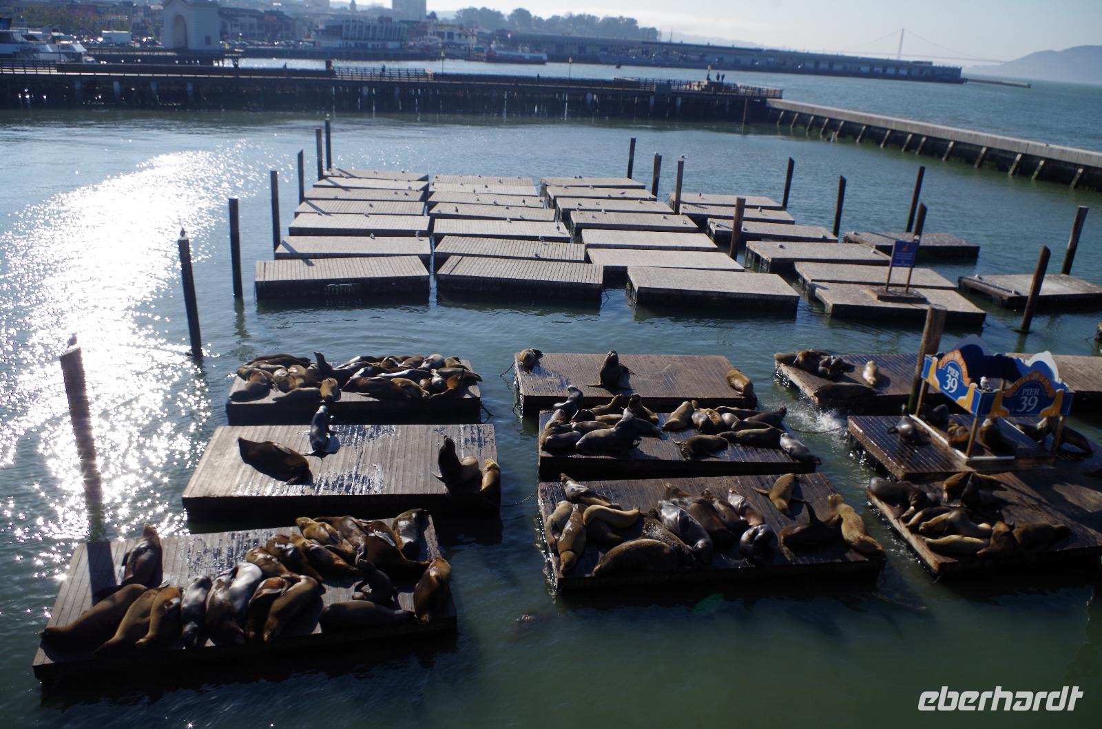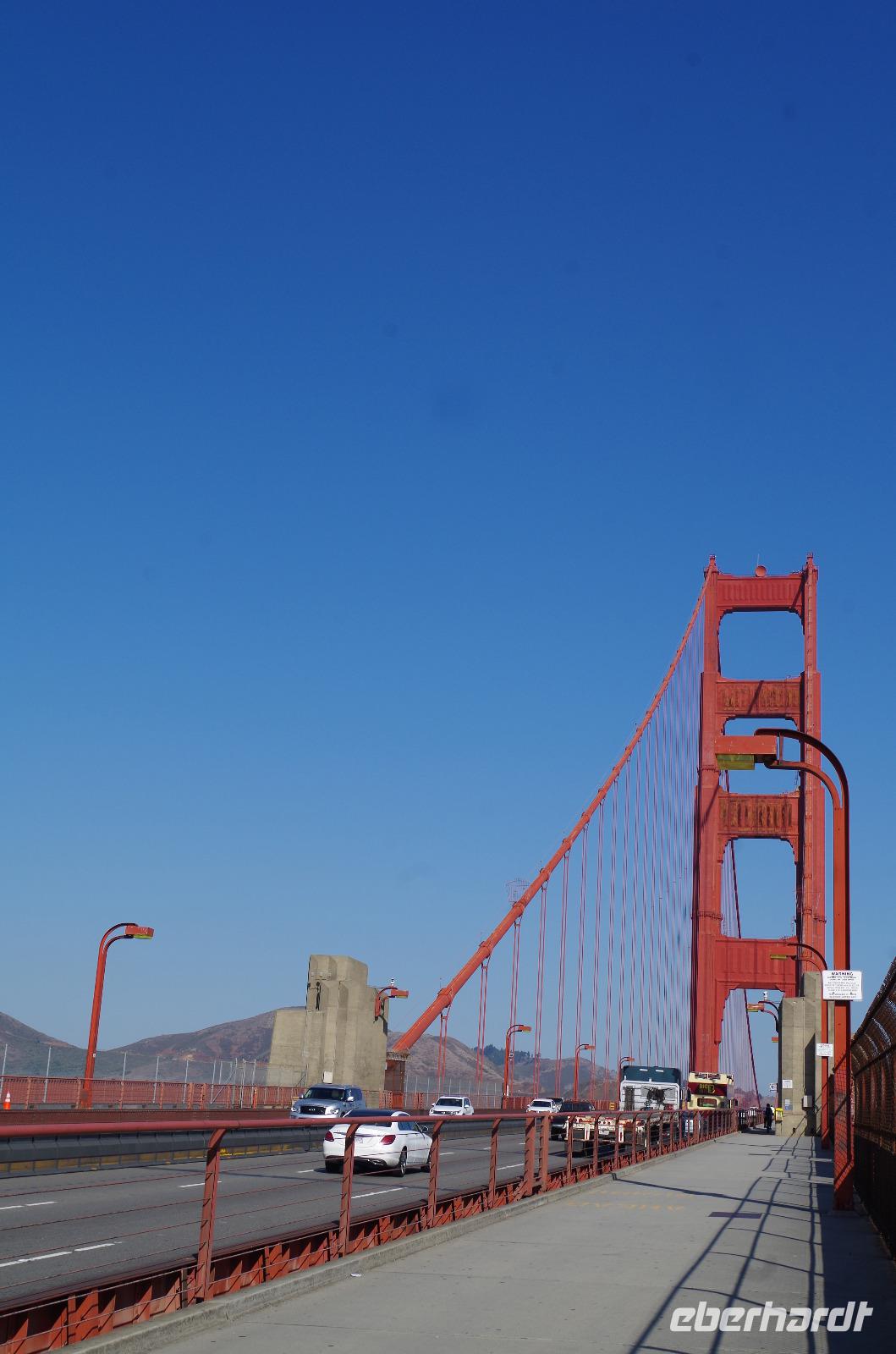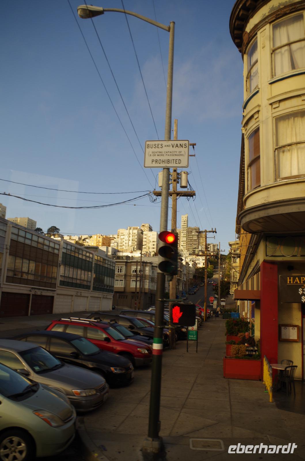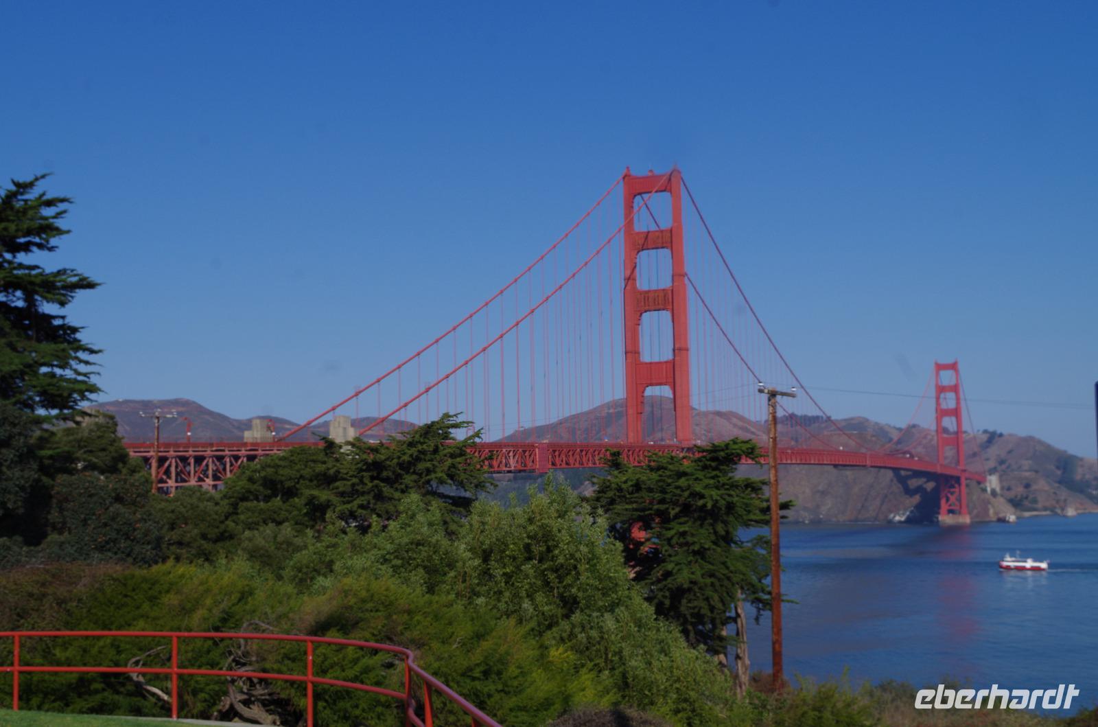 Nach einem doch recht anstrengenden Anreisetag starten wir in einen sonnigen Tag mit einem guten Frühstück. Ungewöhnlich ist sicherlich für uns das Essen mit Plastikbesteck, was aber in vielen Hotels in den USA alltäglich ist. Um 08.30 Uhr werden wir von Catharina und der Panama-Gruppe abgeholt, so dass unsere Stadtrundfahrt zugleich beginnen kann. Wir fahren Richtung North Beach am italienischen Viertel und der Kirche "Saints Peter and Paul Church" vorbei. Unser erster Foto-Stopp ist am Rathaus "City Hall". Bevor wir die 1970 fertiggestellte "Kathedrale Mariä Himmelfahrt", oder auch "Cathedral of Saint Mary of the Assumption", besichtigen, legen wir eine Harmoniepause im japanischen Viertel ein. Anschließend fahren wir weiter zum Postcard Row und am Crissy Field vorbei zu einem sehr beliebten Fotomotiv in San Francisco, der unter Leitung von Joseph Strauss entworfenen berühmten Golden Gate Bridge. Hier entsteht auch unser erstes Gruppenfoto, von welchem noch viele weitere Fotos folgen werden ;-) Diese rund 2.789 Meter lange Hängebrücke (Gesamtlänge einschließlich der Auffahrtsrampen) stellt die Verbindung zwischen Martin County und der Stadt an der nördlichsten Spitze der Halbinsel dar. Der Bau hat 1933 begonnen und ist rund vier später fertiggestellt wurden. Die Kosten haben rund 35 Millionen Dollar betragen. Die Brücke trägt die ungewöhnliche Farbe "international orange", was zwar komisch klingt, die Farbe der Brücke passt aber wunderbar ins Landschaftsbild. Interessant ist vielleicht auch, dass die Mautgebühr von aktuell 7 US-Dollar nur in südlicher Richtung zur Stadt eingefordert wird. Die Brücke ist rund 27,4 Meter breit, die Pfeiler sind 227 Meter hoch, die Entfernung zum Meeresspiegel beträgt 67 Meter, der Kabeldurchmesser beträgt 92 Zentimeter und die Kabellänge circa 2.332 Meter. Dann fahren wir zum Fisherman's Wharf und zum Fährhafen zur Gefängnisinsel Alcatraz am Pier 33. Die Überfahrt beginnt um 13.30 Uhr und dauert nur wenige Minuten. Für einen Besuch von Alcatraz sind rund zwei Stunden einzuplanen. Wir erhalten Audioguides mit deutschen Erklärungen und Erzählungen, welche das damalige Leben der Häftlinge sehr authentisch und interessant wiedergegeben. Im Jahre 1934 ist der Umbau des ehemaligen Militärstützpunkts zum Militärgefängnis und später zur Bundesstrafanstalt erfolgt. Geschlossen wurde sie 1963 aufgrund steigender Unterhaltungs- und Betriebskosten. Zu den bekanntesten Häftlingen zählen die berüchtigten Insassen Al "Scarface" Capone, Alvin "Creepy" Karpis, Robert Stroud - der "Vogelmann von Alcatraz" oder "Doc" Barker. Weitere Daten und Fakten sind: Es hat 14 Ausbrüche gegeben, das Zellengebäude ist nie voll belegt gewesen, die Häftlinge sind durchschnittlich 8 bis 10 Jahre auf Alcatraz eingeschlossen gewesen und es hat keine Hinrichtungen auf Alcatraz gegeben. Interessant ist sicher auch, dass es sowohl keine weiblichen Gefängnisaufseher als auch weibliche Insassen auf Alcatraz gegeben hat. Die Reisebegleitung Sabine der Panama-Gruppe kommt sogar ins Gespräch mit einem ehemaligen Häftling, welcher genau an diesem Tag sein geschriebenes Buch vorstellt. Jährlich statten mehrere Millionen Menschen der zur Golden Gate Recreational Area gehörenden Gefängnisinsel einen Besuch ab. Gegen 15.00 Uhr fahren wir wieder zurück zum Fisherman's Wharf und verabschieden uns von der Panama-Gruppe. Sie werden morgen mit dem Bus nach Los Angeles fahren, während wir einen weiteren Tag in San Francisco genießen dürfen. Aber heute steht uns noch ein besonderes Highlight bevor! Wir fahren gegen 16.00 Uhr mit der berühmten und vielmals in Filmen vorkommenden Kabelstraßenbahn "Cable Car". Dies ist wirklich ein Erlebnis für sich, auch wenn die Fahrt mit der Cable Car California Line nur wenige Minuten dauert. Nach der Fahrt fahren wir zum Hotel zurück und verabschieden uns freundlich von unserer örtlichen Reiseleiterin Catharina. Sie wird die Panama-Gruppe nach Los Angeles begleiten. Um 18.00 Uhr treffen wir uns zum gemeinsamen Spaziergang am Fisherman's Wharf entlang zum Pier 39, wo wir die vielen wirklich faul in der Abendsonne liegenden Seerobben beobachten und besonders deren lustigen Geräuschen lauschen. Wenig später gönnen wir uns ein leckeres Abendessen im mexikanischen Restaurant "Mangos" am Pier 39. Das Essen ist zwar ganz gut, aber dank einer Gesamtrechnung mit zwei verschiedenen Steuern ohne Prozentangabe und einem bereits einkalkulierten Trinkgelds verzögert sich die Bezahlung fast schon ins Unendliche! Somit ist es zu empfehlen, immer nach getrennten Rechnungen vor der Bestellung zu fragen. Gegen 21.00 Uhr spazieren wir entspannt zum Hotel zurück und verabschieden uns bis zum nächsten Morgen. Ein weiterer spannender Tag wartet auf uns!